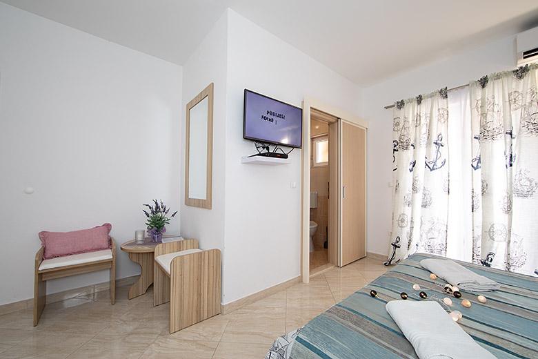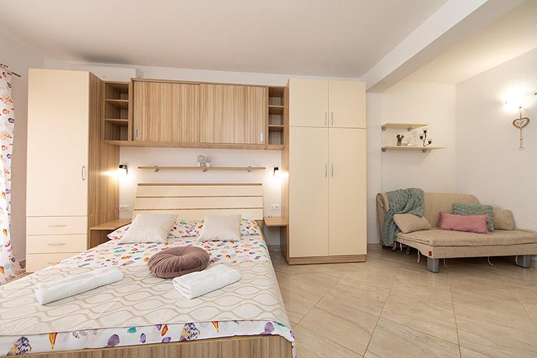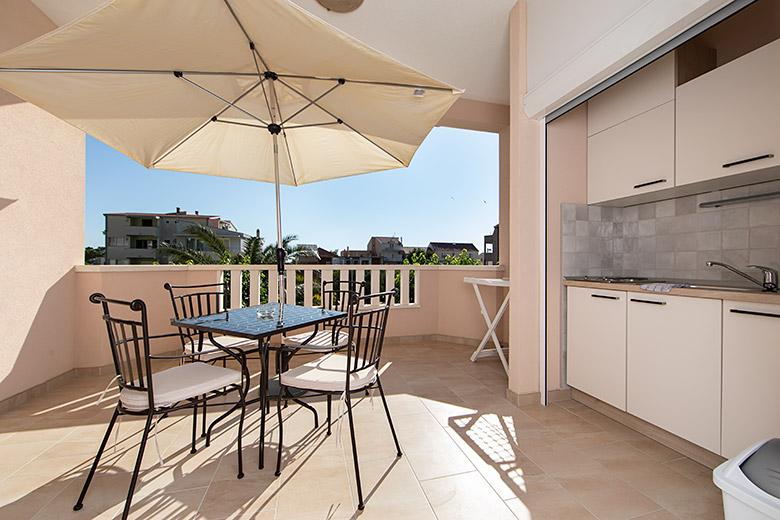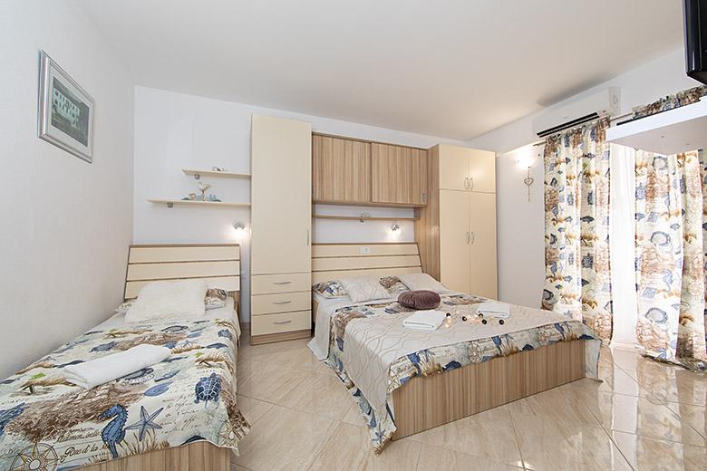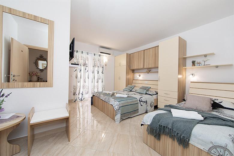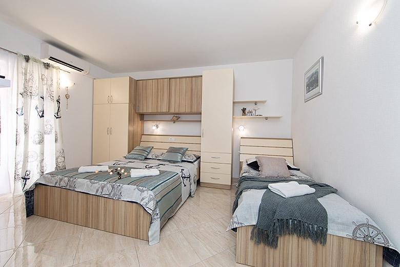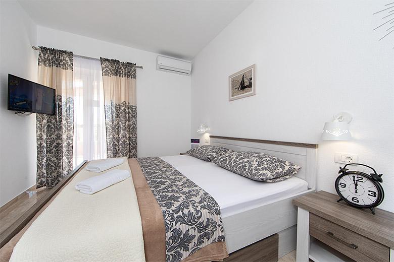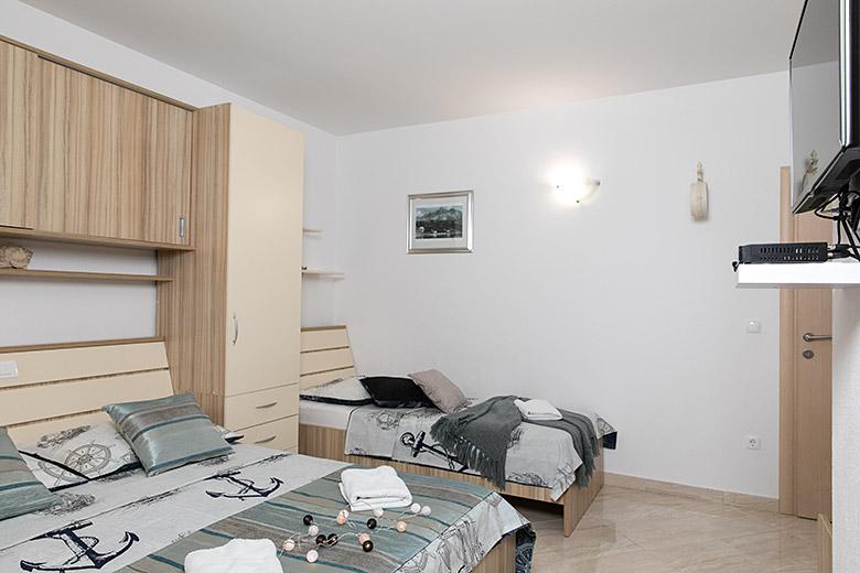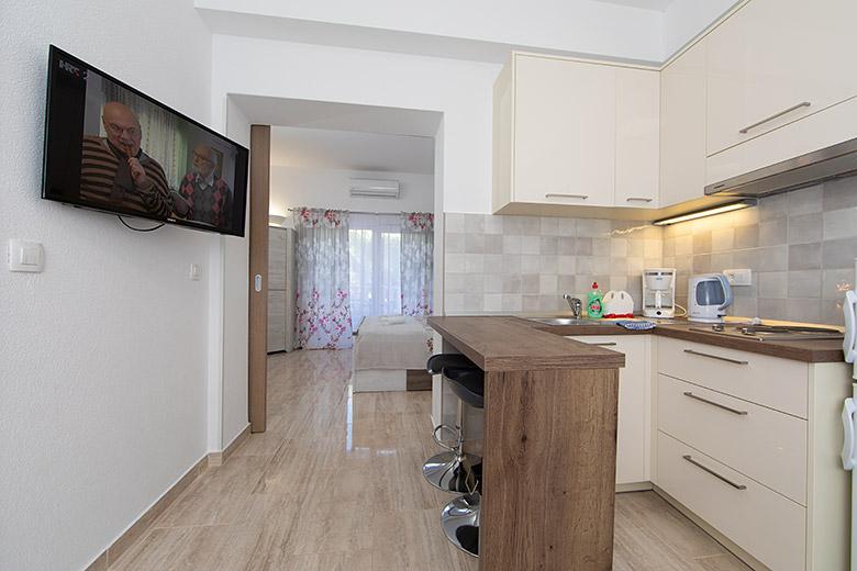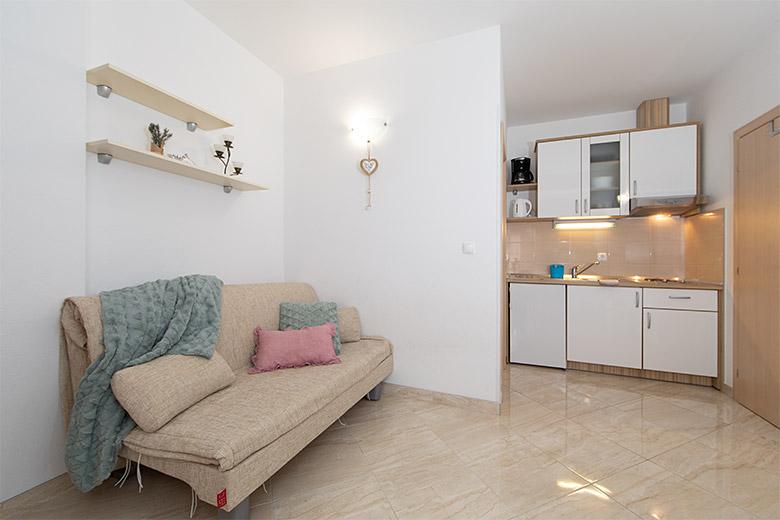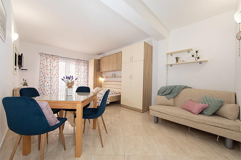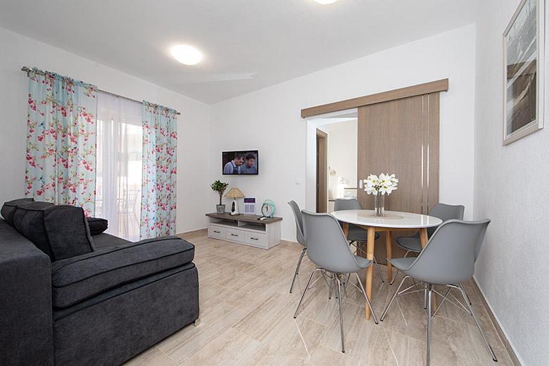 Turistična taksa je vključena v ceno.Lastnica je zelo dostopna in vljudna Apartma je izjemno čist in dišeč, postelje udobne. Velika terasa z majhno kuhinjo, ki vsebuje vse, kar potrebujete za kuhanje V stanovanju je sušilnik perila, fen, kuhalnik vode, kavni aparat, na hodniku pa omara za dodatne potrebščine. (toaletni papir, vrečke za smeti, detergent za pranje perila, likalnik, likalna deska,...) Stanovanje je zelo blizu vsega, pekarne, tržnice, restavracija, center, plaža 50 m.. Pred apartmajem je zagotovljeno brezplačno parkiranje Toplo ga priporočam vsem