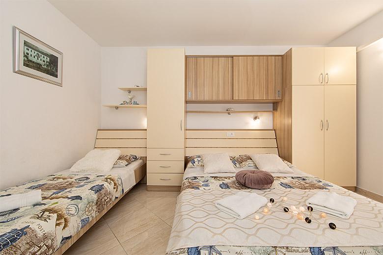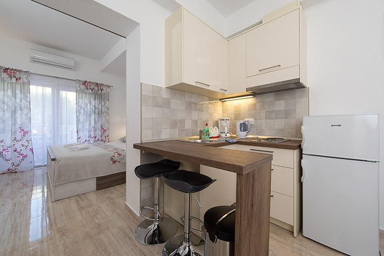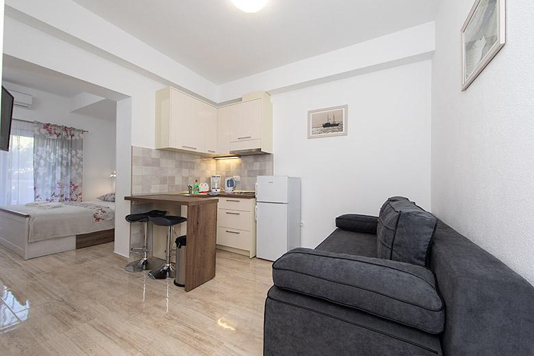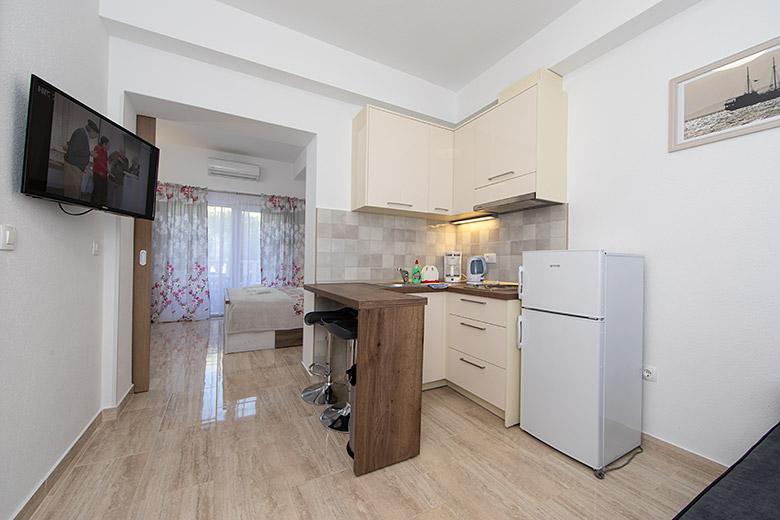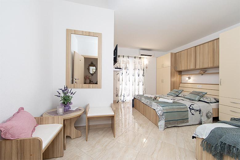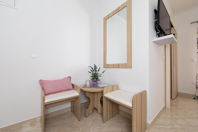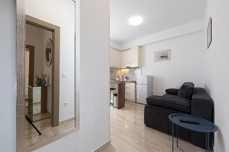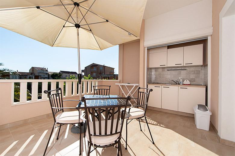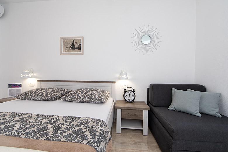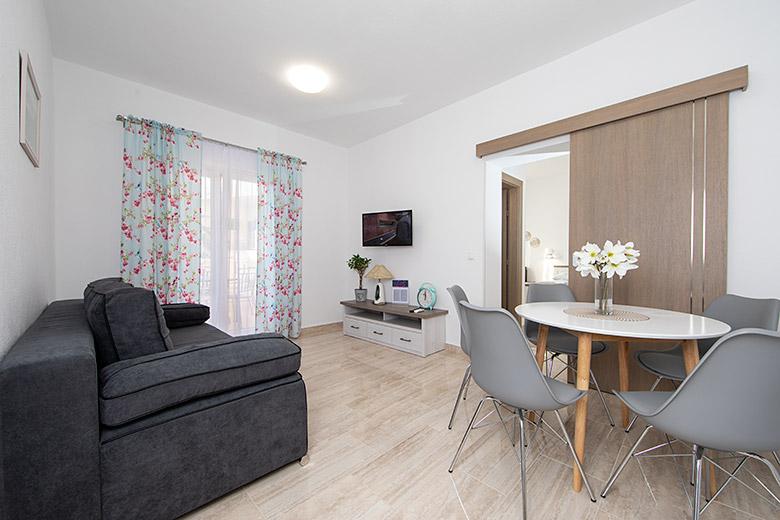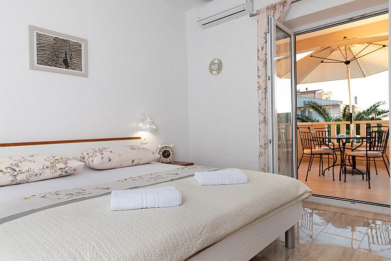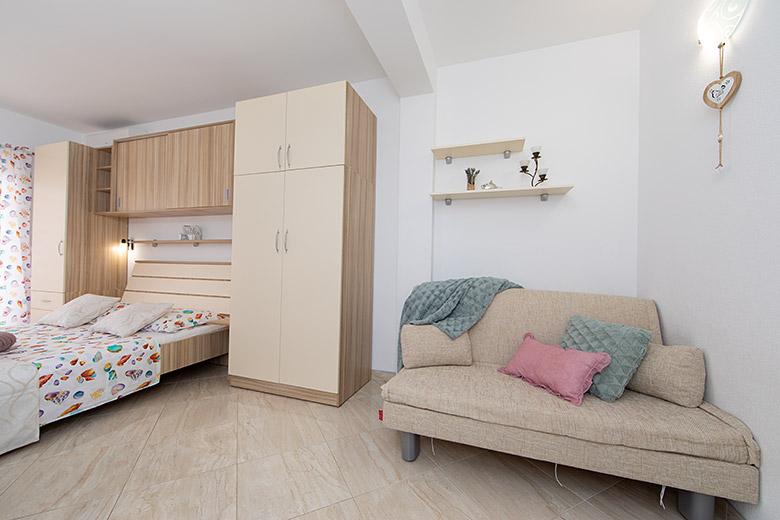Turistična taksa je vključena v ceno.Lastnica je zelo dostopna in vljudna Apartma je izjemno čist in dišeč, postelje udobne. Velika terasa z majhno kuhinjo, ki vsebuje vse, kar potrebujete za kuhanje V stanovanju je sušilnik perila, fen, kuhalnik vode, kavni aparat, na hodniku pa omara za dodatne potrebščine. (toaletni papir, vrečke za smeti, detergent za pranje perila, likalnik, likalna deska,...) Stanovanje je zelo blizu vsega, pekarne, tržnice, restavracija, center, plaža 50 m.. Pred apartmajem je zagotovljeno brezplačno parkiranje Toplo ga priporočam vsem