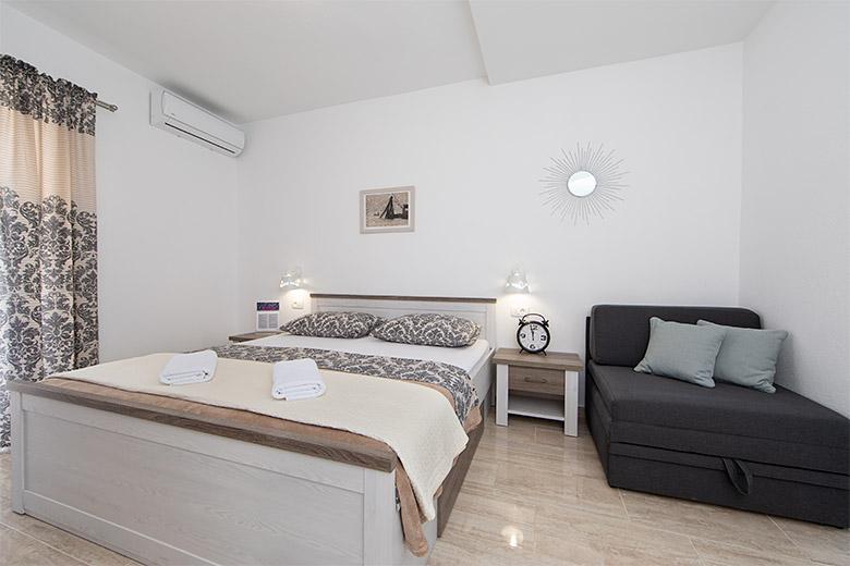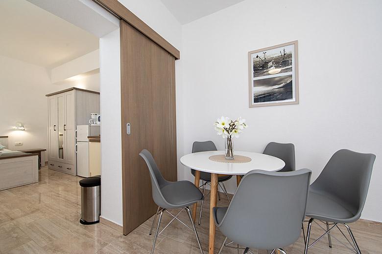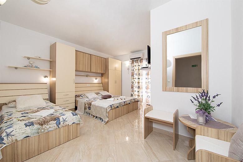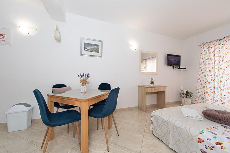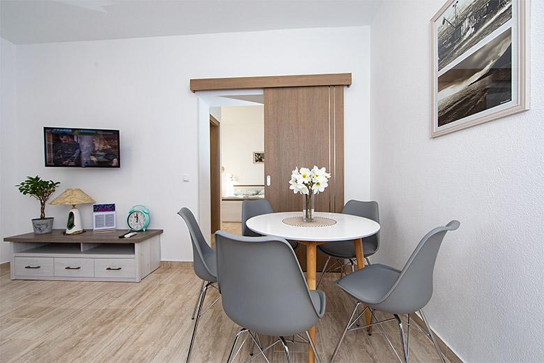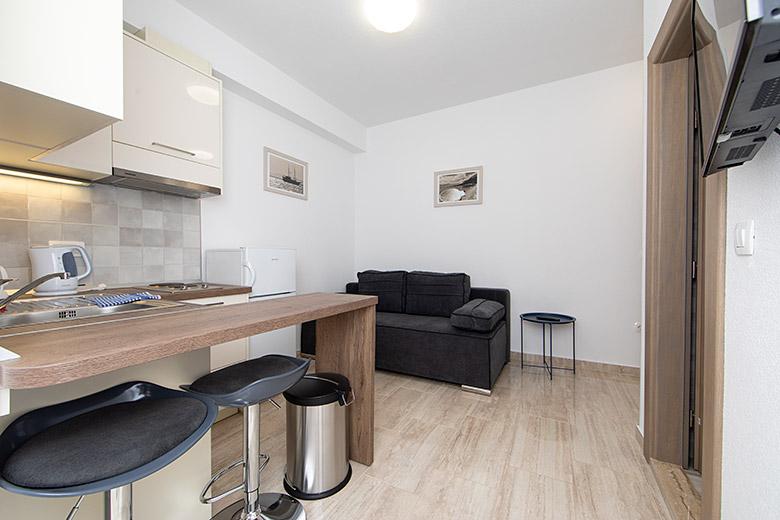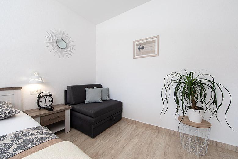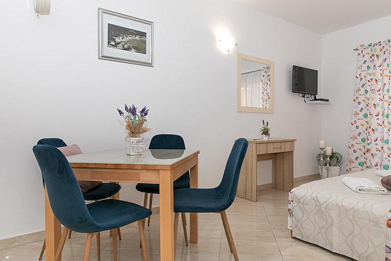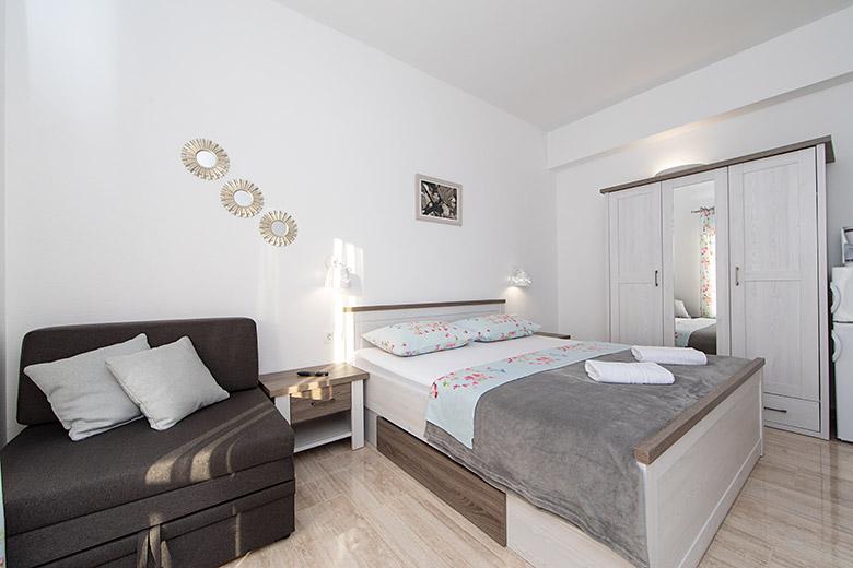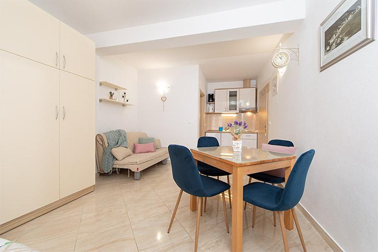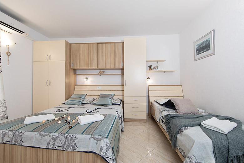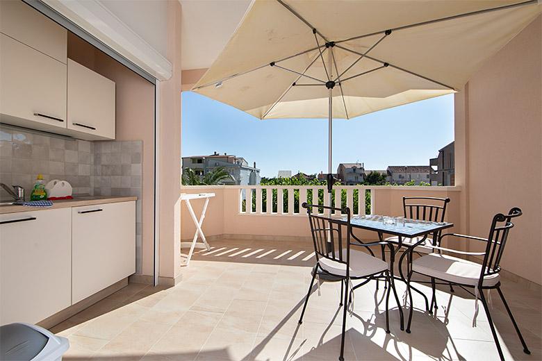 Turistična taksa je vključena v ceno.Lastnica je zelo dostopna in vljudna Apartma je izjemno čist in dišeč, postelje udobne. Velika terasa z majhno kuhinjo, ki vsebuje vse, kar potrebujete za kuhanje V stanovanju je sušilnik perila, fen, kuhalnik vode, kavni aparat, na hodniku pa omara za dodatne potrebščine. (toaletni papir, vrečke za smeti, detergent za pranje perila, likalnik, likalna deska,...) Stanovanje je zelo blizu vsega, pekarne, tržnice, restavracija, center, plaža 50 m.. Pred apartmajem je zagotovljeno brezplačno parkiranje Toplo ga priporočam vsem