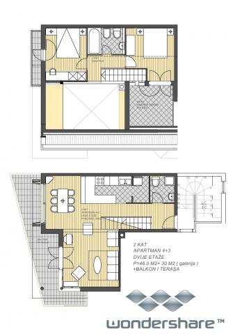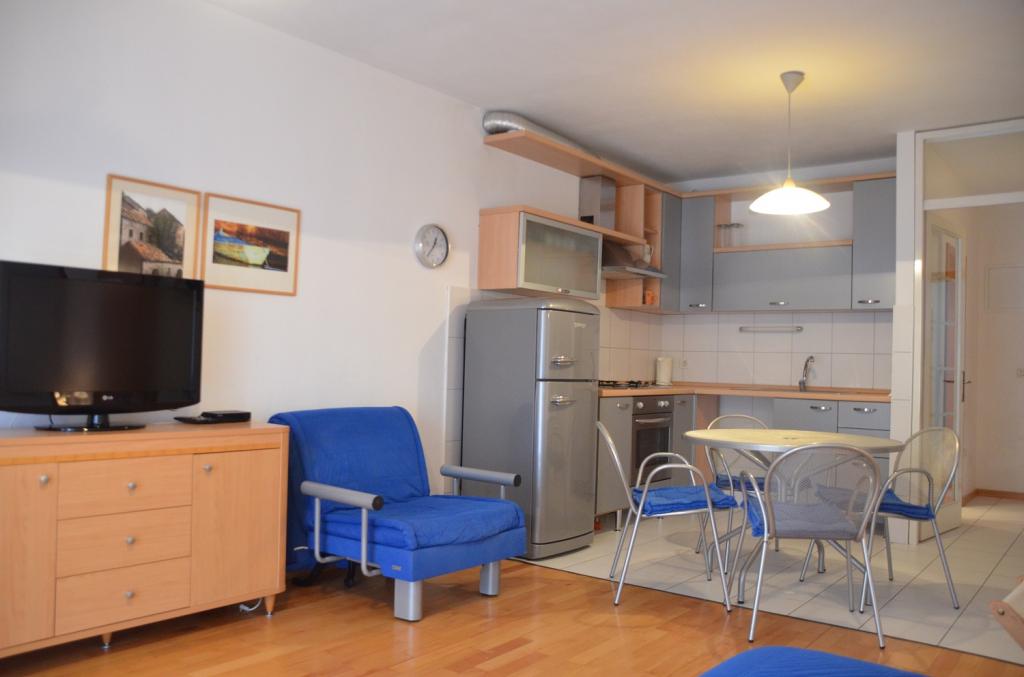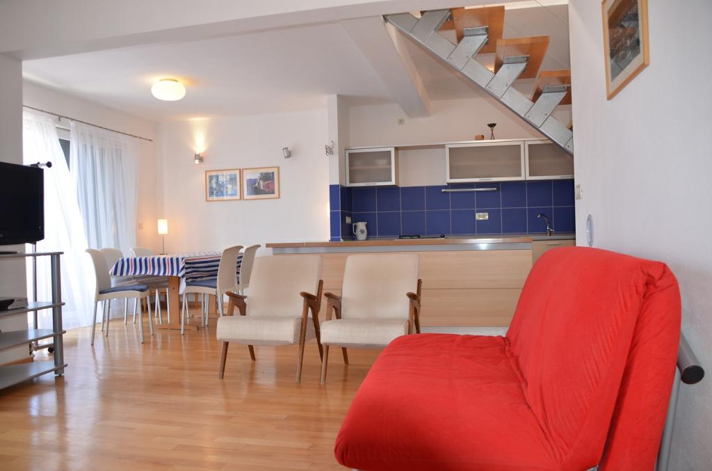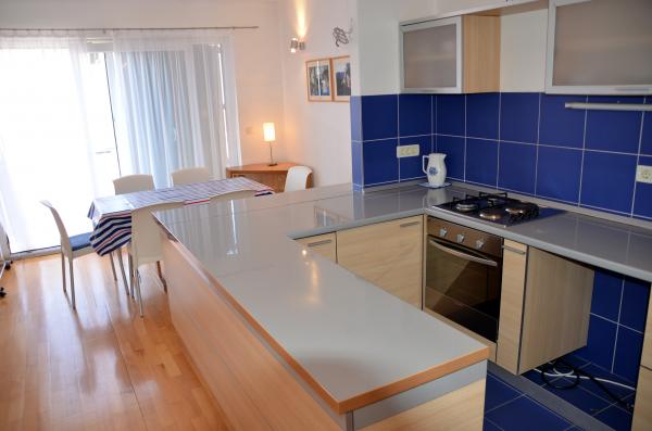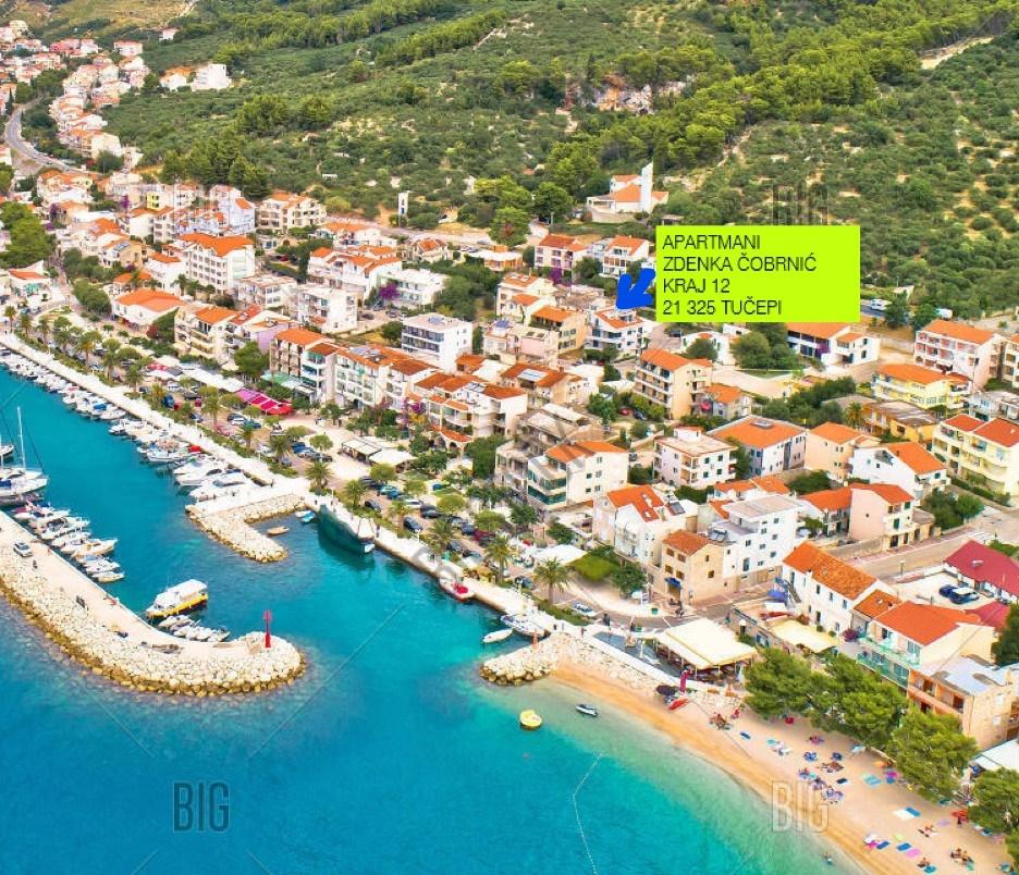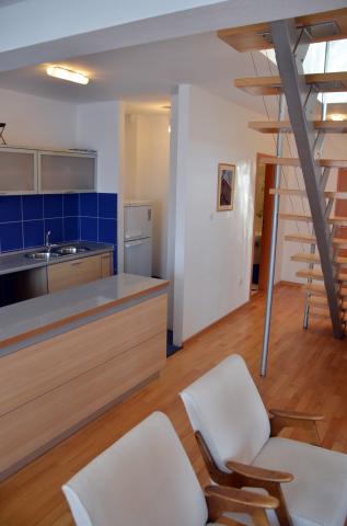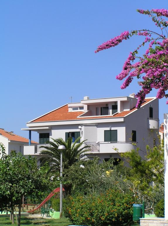 Moderno opremljeni apartmaji v stavbi, ki se nahaja v centru vasi, v mirnem okolju v bližini lokalne marine, rive, plaže, hotela Villa Marija in hotela Laurentum. Plaža je oddaljena cca 100-150 m. Riva, obala, marina so od objekta oddaljeni cca 100 m. V bližini objekta je otroško igrišče. V bližini objekta sta trgovini Konzum in Sudenac (cca. 100-150 m stran).