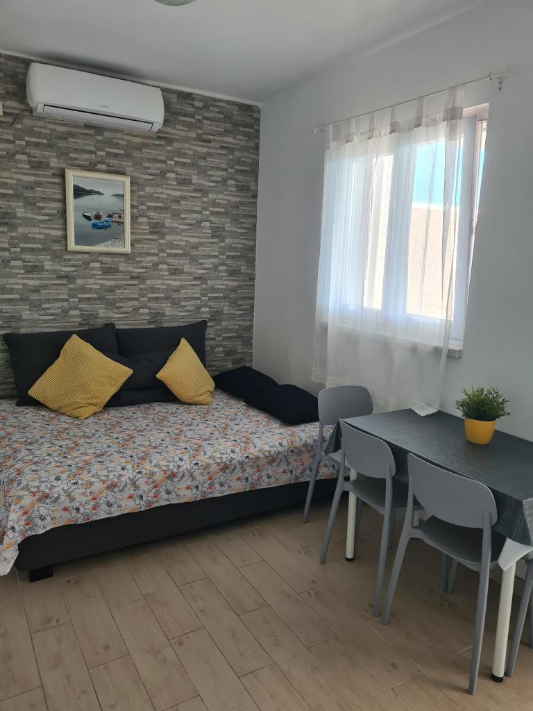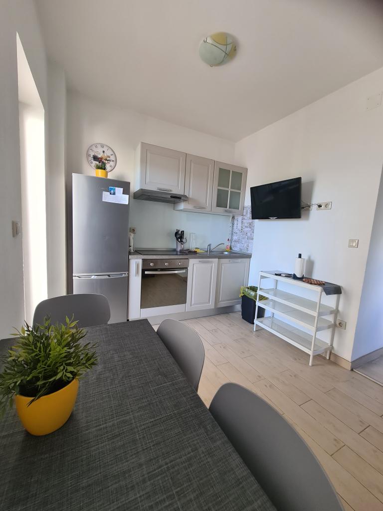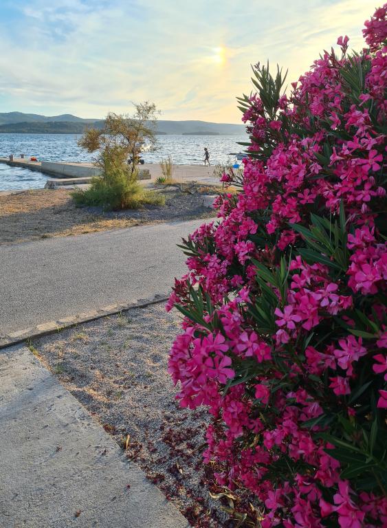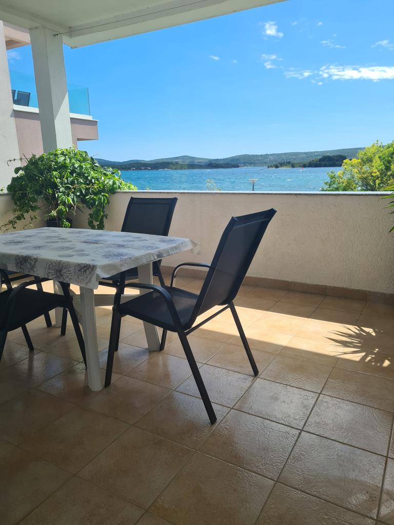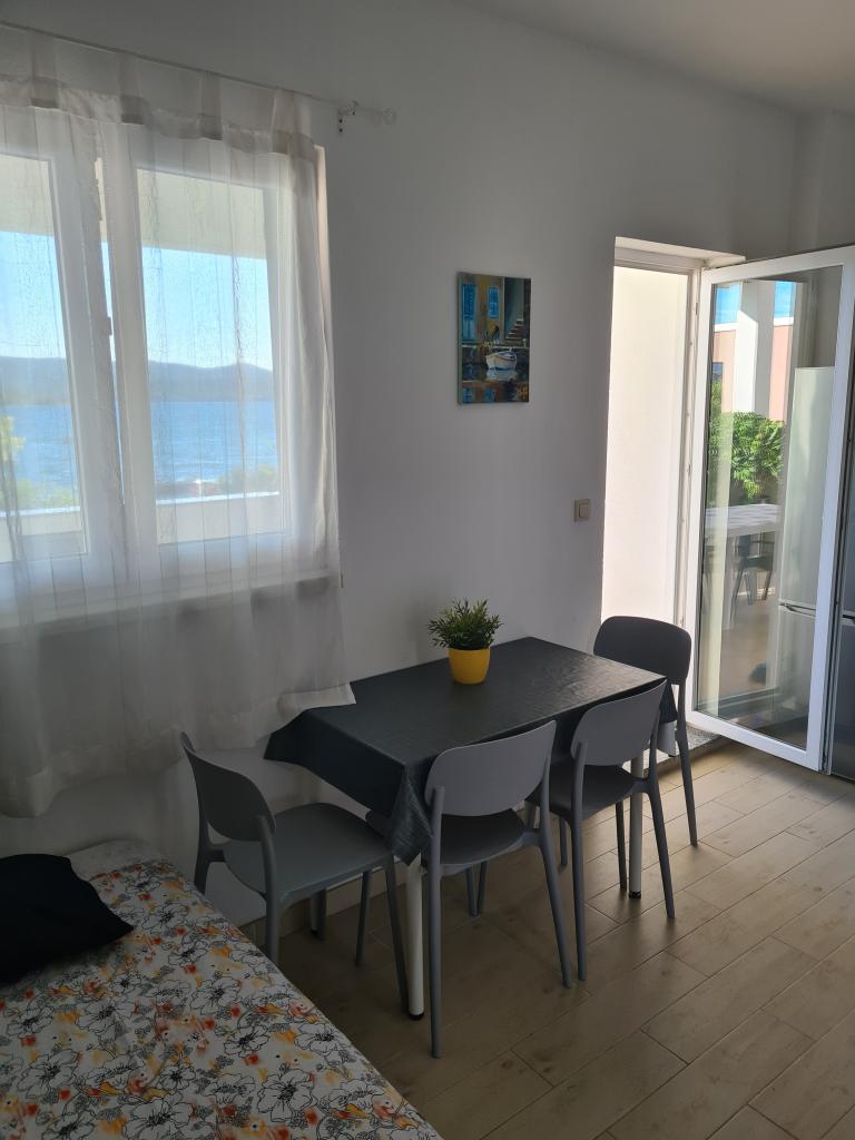 Apartma, prva vrsta do morja, v prvem nadstropju hiše. Zaseben vhod. Terasa s pogledom na morje. Primerno za družine z otroki in starejše osebe. Pet minut hoje do centra mesta.