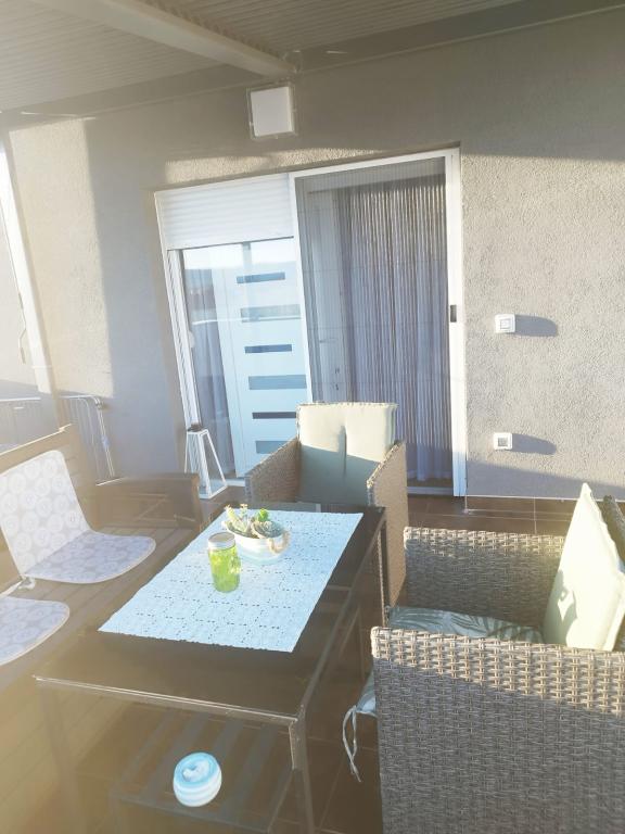 Zelo lep nov čist popolno opremljen apartma res priporočamo za 4 člansko družino. zelo prijazni lastniki blizu lepa plaža , pekarna, trgovina vse kar rabite za lep dopust. Priporočamo