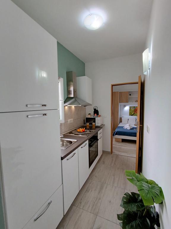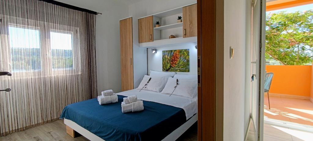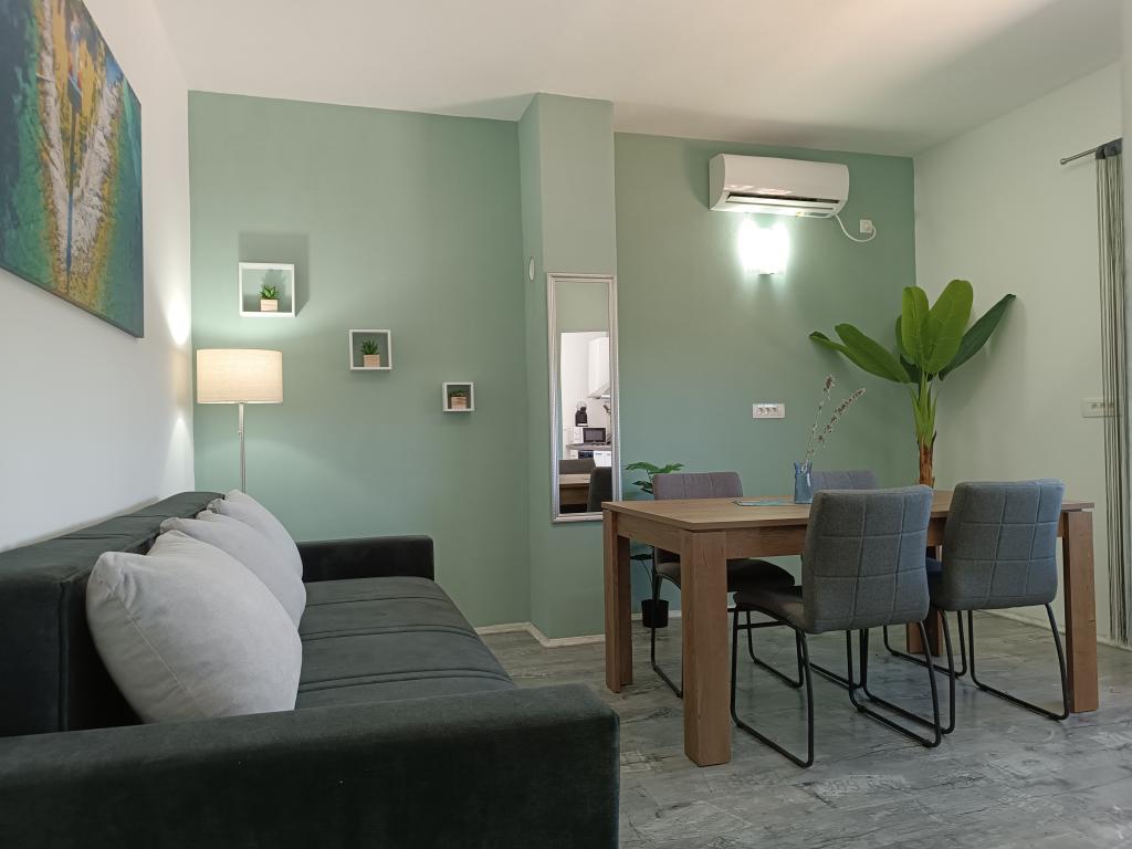 Kaj ponujamo ob namestitvi: Brezplačen optični internet (WiFi) – uživajte v hitri in zanesljivi povezavi ves čas bivanja. Max TV – širok izbor kanalov za sprostitev po dnevu na plaži. Dobrodošlica – komplet domačih slanih inčunov kot pristno mediteransko darilo. Osnovne potrebščine – čiste brisače, toaletni papir, detergent za pomivanje posode in tekoče milo za vaše udobje. Brezplačno parkiranje – zavarovano parkirno mesto za vaš avto. Dvorišče z žarom in veliko gugalnico – idealno za sprostitev in druženje na prostem. Aparat za kavo – nekaj kapsul ali vrečk kave za uživanje takoj ob prihodu. Pralni stroj na voljo na zahtevo – praktična možnost za daljša bivanja.