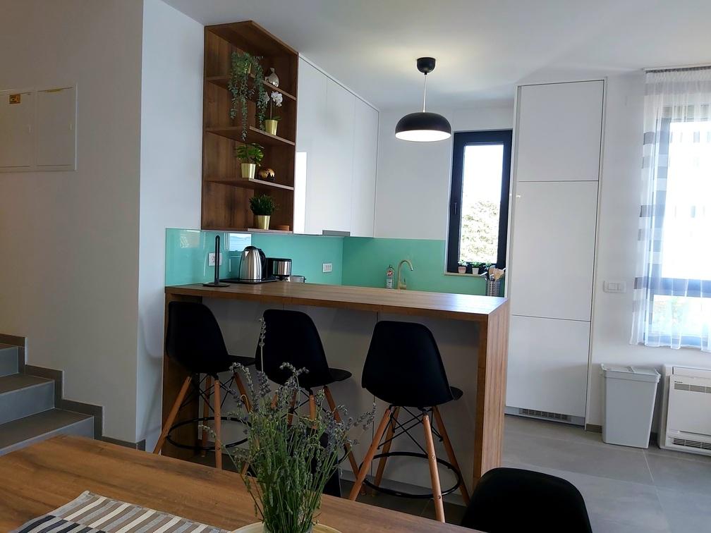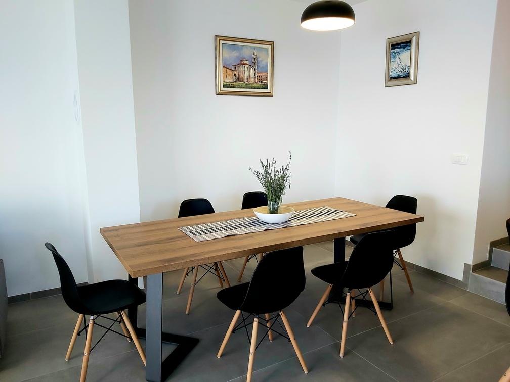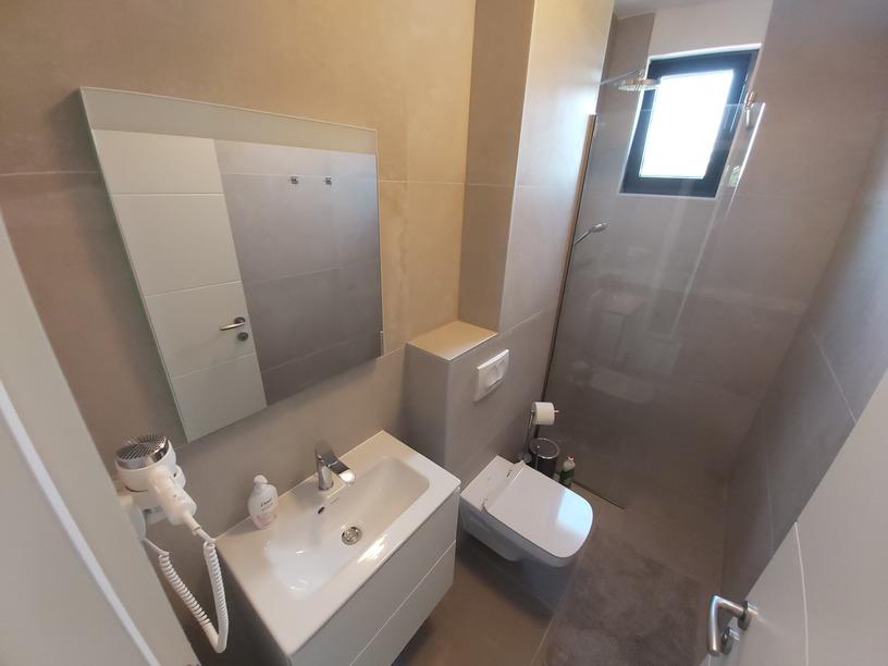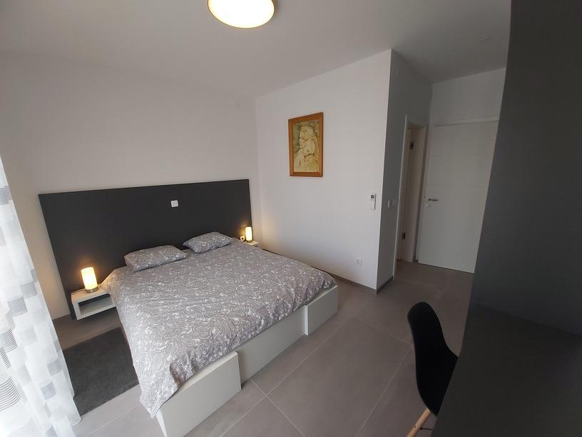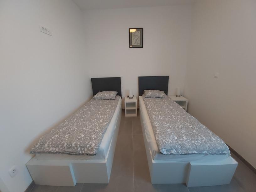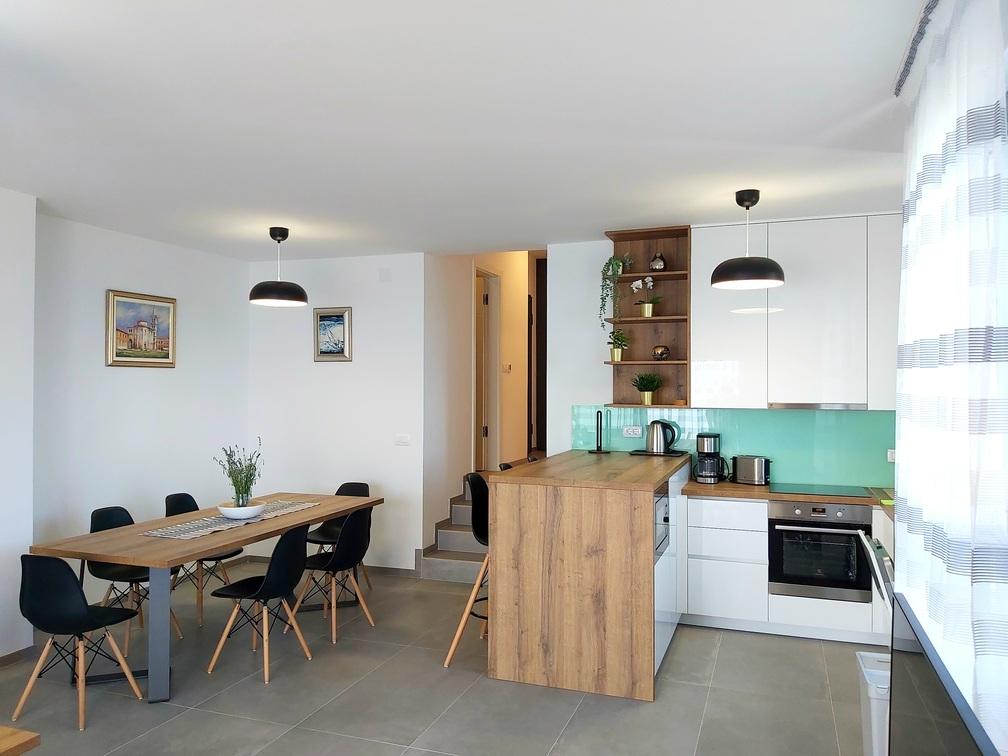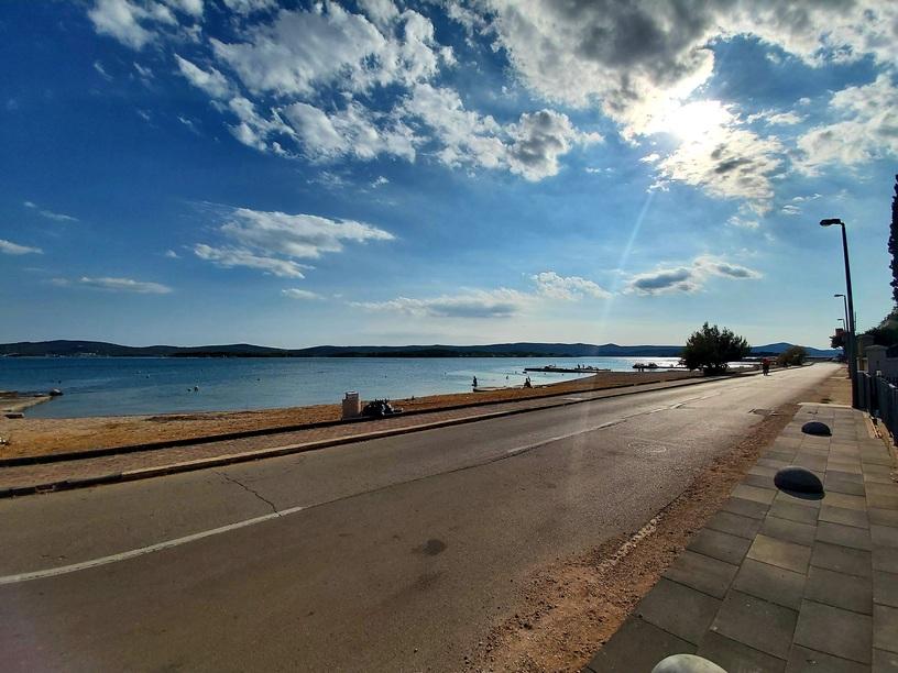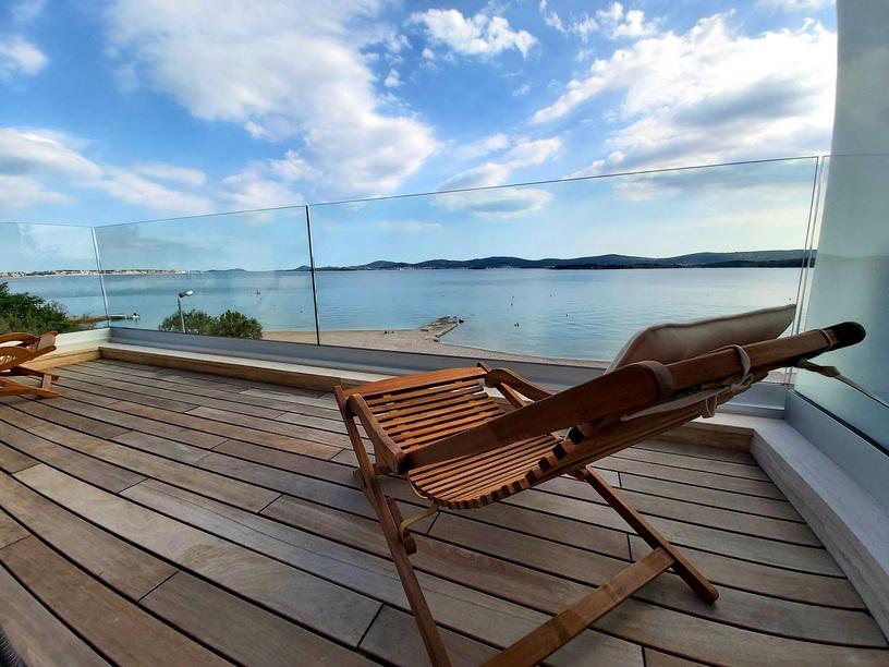 Sodoben, sončen apartma nudi mirno bivalno vzdušje s hitrim in enostavnim dostopom do Turnja, Biograda na Moru in Zadra. Občudujte ostro, sodobno urejanje bivalnega prostora odprtega tipa in uživajte v mirnem okolju z očarljive terase. Stanovanje se nahaja v drugem nadstropju, s skupno površino 81,30 m2. Sestavljen je iz moderne kuhinjske kuhinje, ki je v celoti opremljena z aparati in aparati, jedilnice, dnevne sobe, hodnika, dveh kopalnic s tuši in treh spalnic z zakonskimi posteljami, vgrajenih garderobnih omar in sefa. S terase 17,20 m2 se odpira pogled na Zadrski kanal in plažo, ki se nahaja tik pod apartmajem. Severna soba ima balkon 5,40 m2. Ob stanovanju je popolnoma ograjeno parkirno mesto pokrito s pergolo.