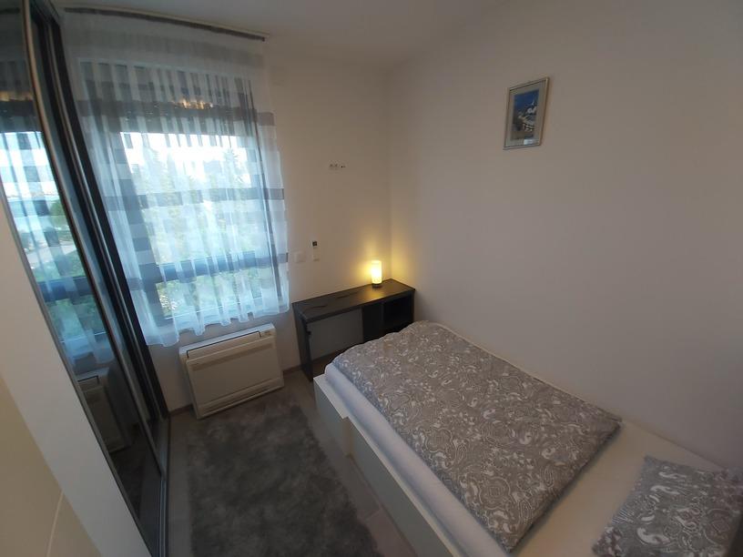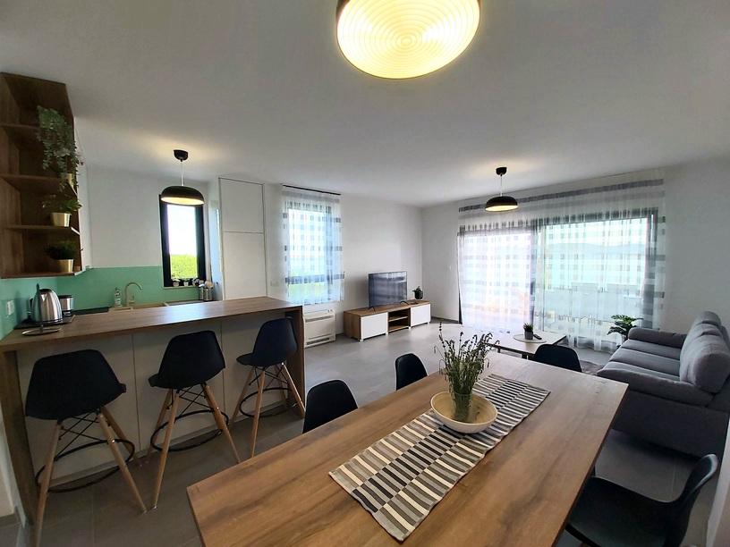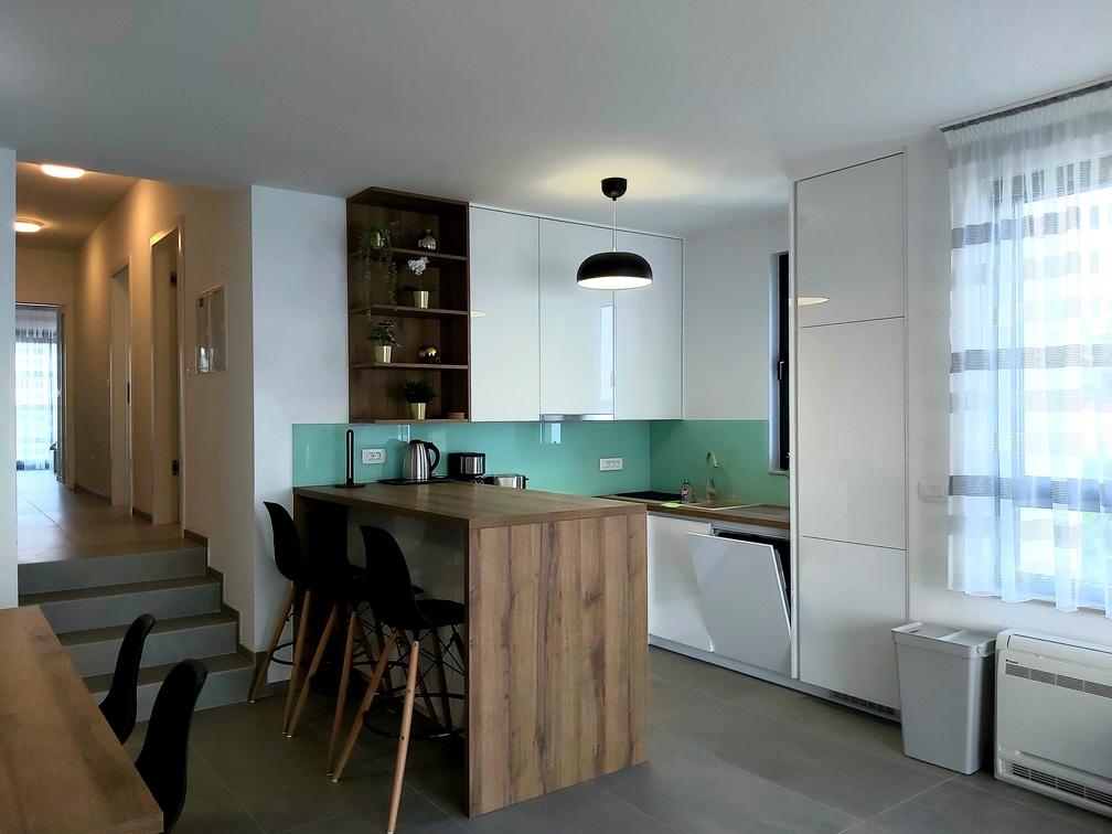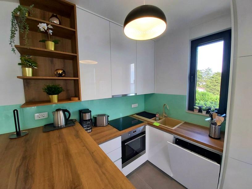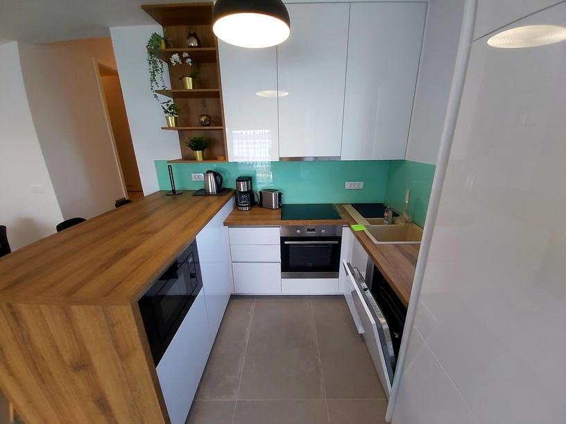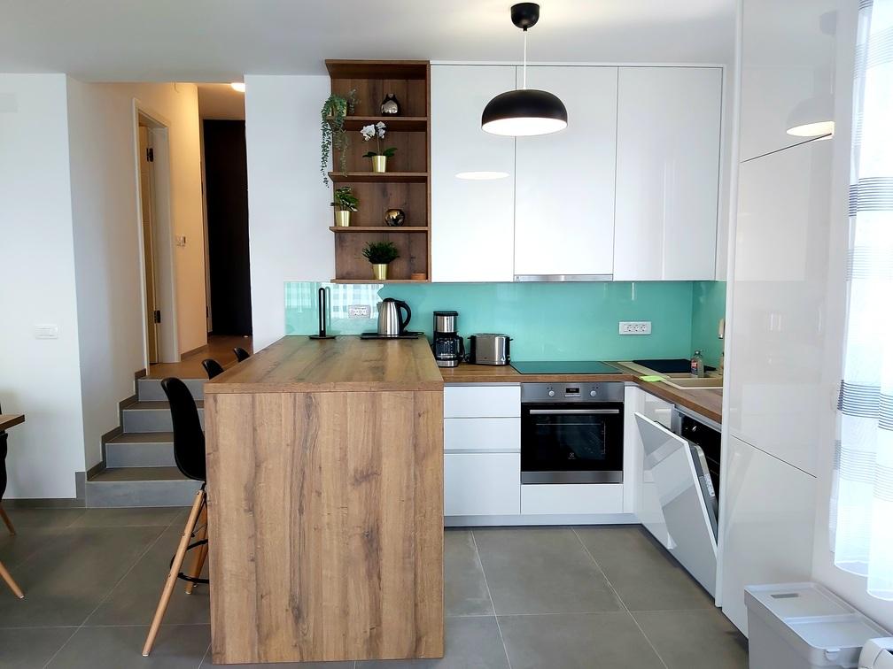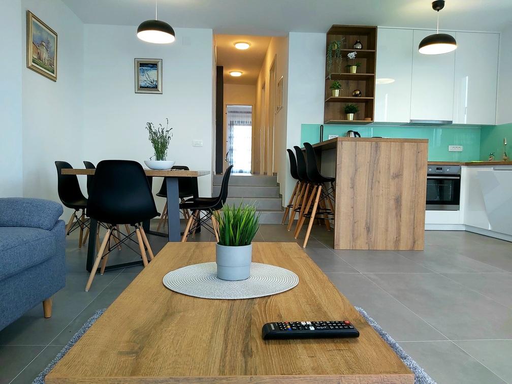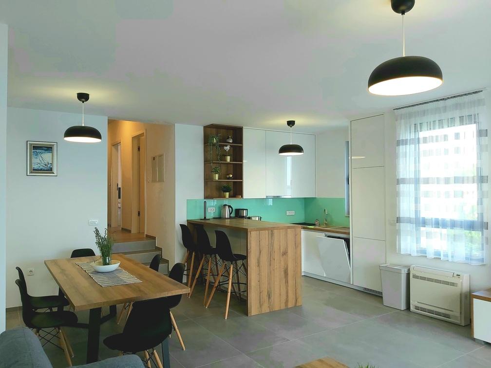 Sodoben, sončen apartma nudi mirno bivalno vzdušje s hitrim in enostavnim dostopom do Turnja, Biograda na Moru in Zadra. Občudujte ostro, sodobno urejanje bivalnega prostora odprtega tipa in uživajte v mirnem okolju z očarljive terase. Stanovanje se nahaja v drugem nadstropju, s skupno površino 81,30 m2. Sestavljen je iz moderne kuhinjske kuhinje, ki je v celoti opremljena z aparati in aparati, jedilnice, dnevne sobe, hodnika, dveh kopalnic s tuši in treh spalnic z zakonskimi posteljami, vgrajenih garderobnih omar in sefa. S terase 17,20 m2 se odpira pogled na Zadrski kanal in plažo, ki se nahaja tik pod apartmajem. Severna soba ima balkon 5,40 m2. Ob stanovanju je popolnoma ograjeno parkirno mesto pokrito s pergolo.