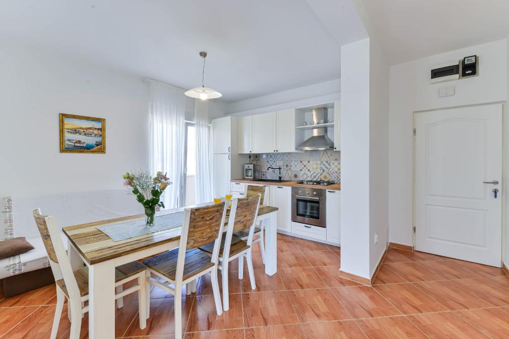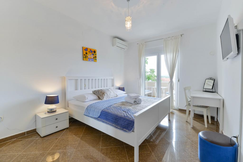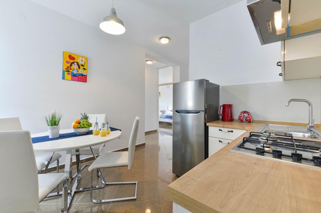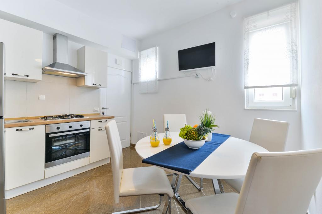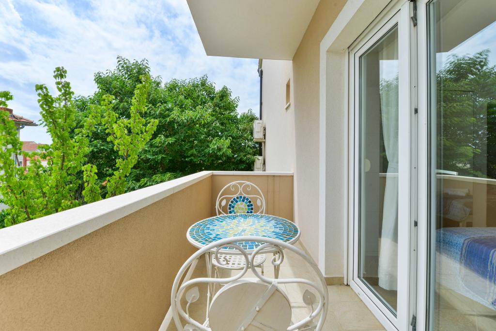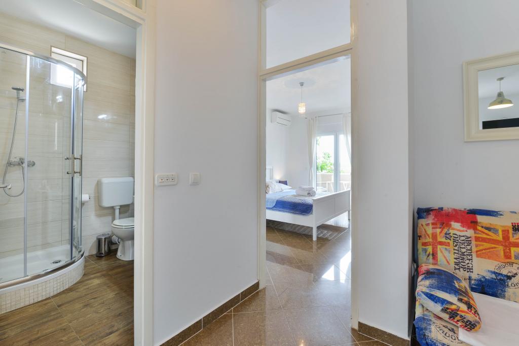 Trije novi, moderno opremljeni apartmaji za do 6 oseb. Apartmaji so sestavljeni iz dveh ali tri spalnice, kopalnica s tušem, popolnoma opremljeno kuhinjo, jedilnico in teraso, iz katere je A1 stanovanje s pogledom na morje. Vsi apartmaji so opremljeni s pralnim strojem, pomivalnim strojem (v dveh apartmajih: A1, A3), satelitsko TV, brezplačen brezžični fiem in imajo parkirišče v neposredni bližini samega objekta. Intrade Apartmaji se nahajajo 200 m od centra mesta.
