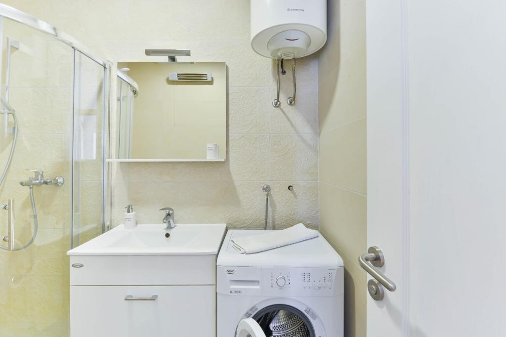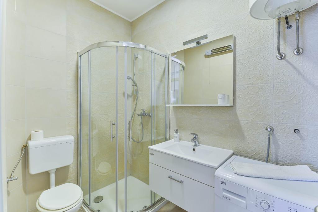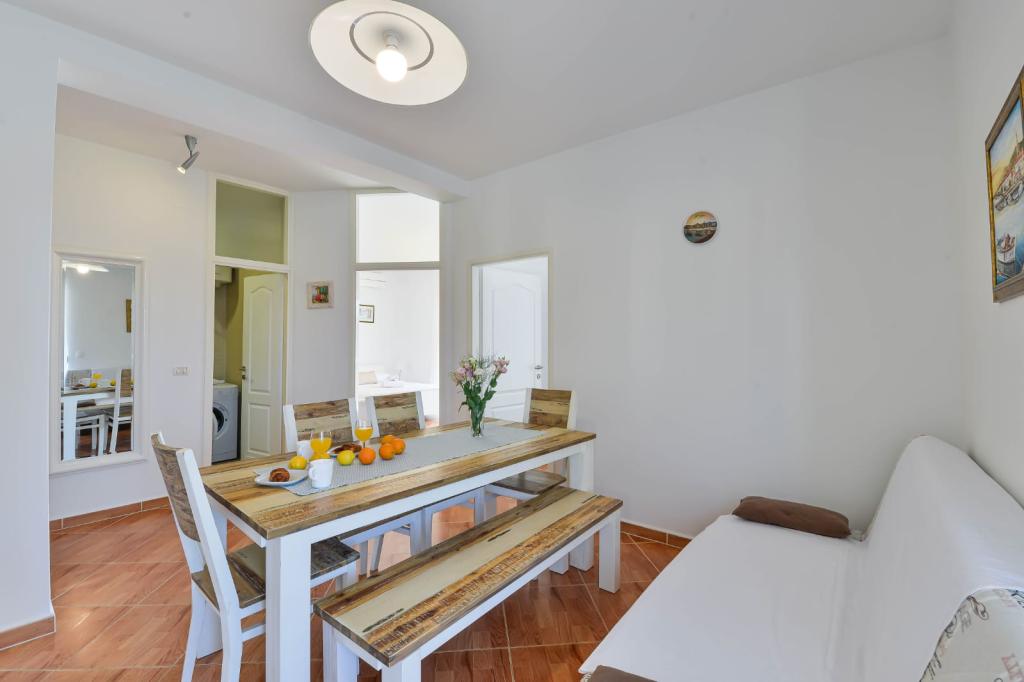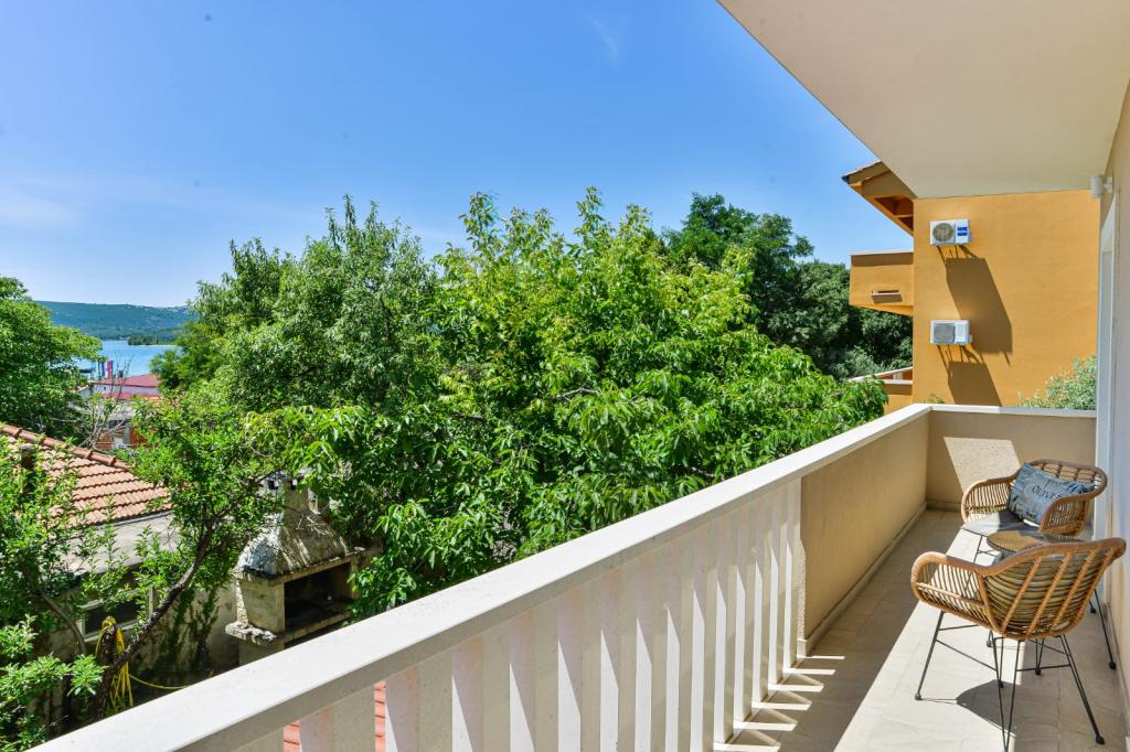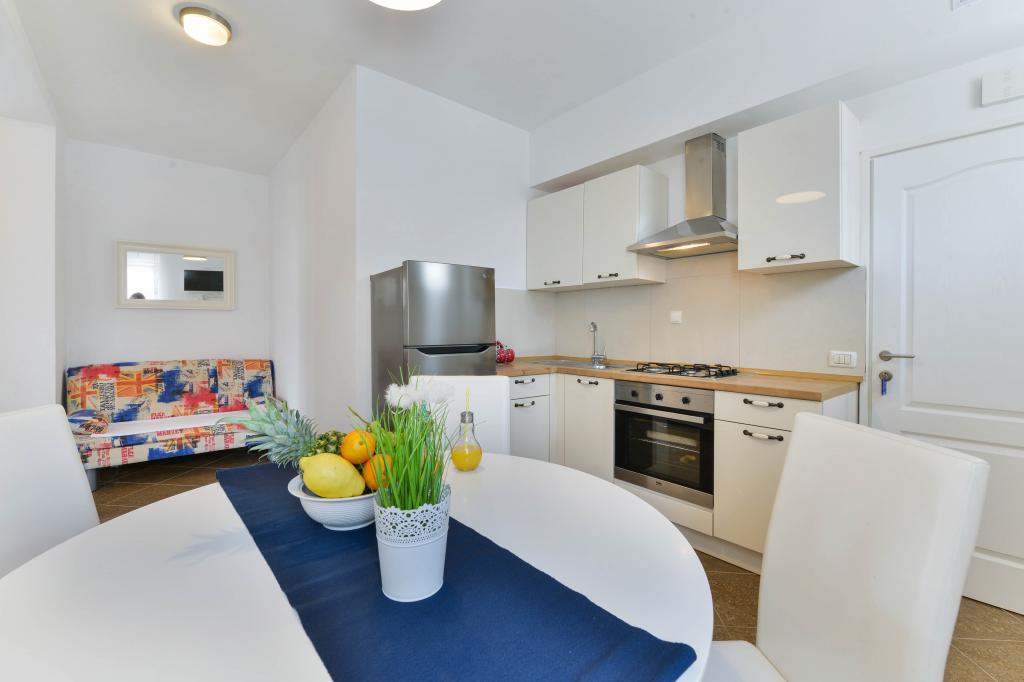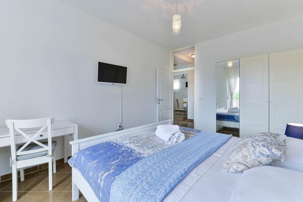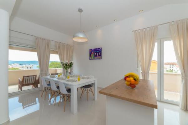 Trije novi, moderno opremljeni apartmaji za do 6 oseb. Apartmaji so sestavljeni iz dveh ali tri spalnice, kopalnica s tušem, popolnoma opremljeno kuhinjo, jedilnico in teraso, iz katere je A1 stanovanje s pogledom na morje. Vsi apartmaji so opremljeni s pralnim strojem, pomivalnim strojem (v dveh apartmajih: A1, A3), satelitsko TV, brezplačen brezžični fiem in imajo parkirišče v neposredni bližini samega objekta. Intrade Apartmaji se nahajajo 200 m od centra mesta.