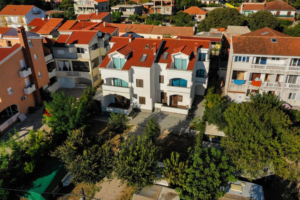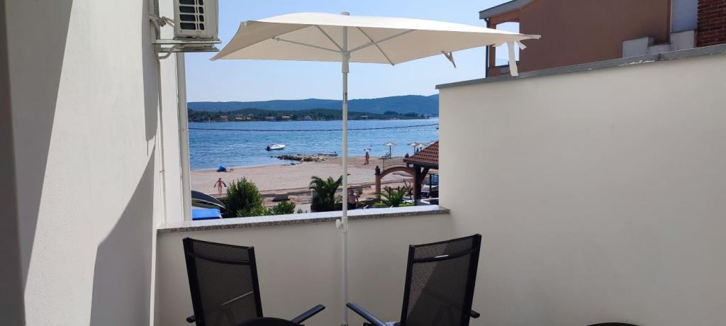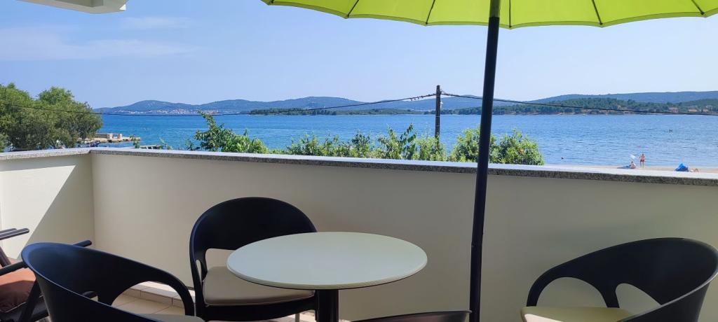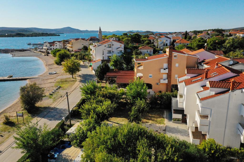 Apartmaji Maestral se nahajajo v kraju Turanj, prva vrstica do morja. Pred hišo je plaža, v hiši pa 9 apartmajev. Apartmaji so razporejeni na 3 nadstropja in so primerni za nastanitev 3 ali 4 osebe. Vsi imajo balkon in pogled na morje. V dvorišču je brezplačno parkirišče za naše goste. Opremljene so s televizijo, klimatsko napravo in brezžičnim internetom. Turanj je idealen kraj za miren družinski dopust. Bližina Biograda, Zadra in nacionalnih parkov Kornati, Krka, Severni Velebit in Plitvice dajejo tej lokaciji dodatno vrednost. Zelo lahko se odpravite na enodnevni izlet in spoznate Zadarsko-rimske spomenike, Forum, katedralo Sv. Stošije ali obisk nekaterih nacionalnih parkov. Še posebej je pomembno omeniti otoke Babac in Komornik pred Tour, ki so idealno potapljaško mesto.