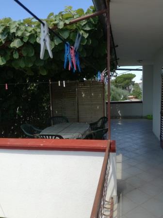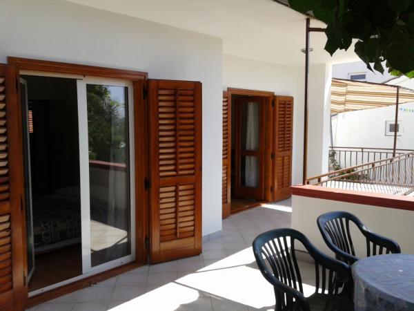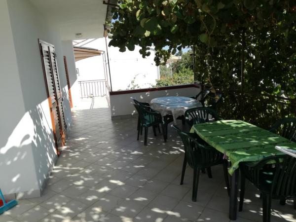 Apartmaji se nahajajo v drugi vrsti od morja do konca ulice, stran od hrupa in gneče. Plaža je prodnata in se nahaja 70 m od hiše. Pred plažo se boje, da Barje čoln. Na dvorišču pred gradnjo parkirnih mest. Na vrtu je tudi žar, gugalnice in tobogan za djecu.Apartmani se nahaja v prvem nadstropju in pred njimi je velika terasa, ki je prekrita z naravno senco (kivi). Oba apartmaja je sestavljen iz: spalnice (2 1), WC, hodnik, kuhinjo, dnevno sobo, kjer je kavč za 2 osebi. Apartmaji imajo klimatsko napravo in satelitsko televizijo.