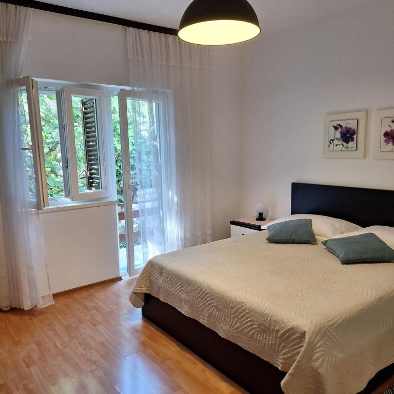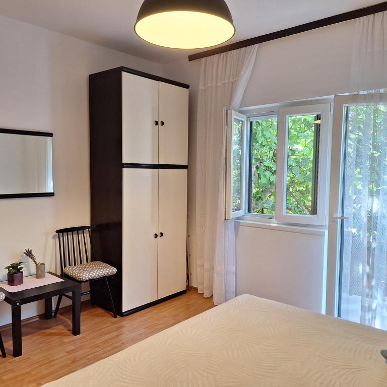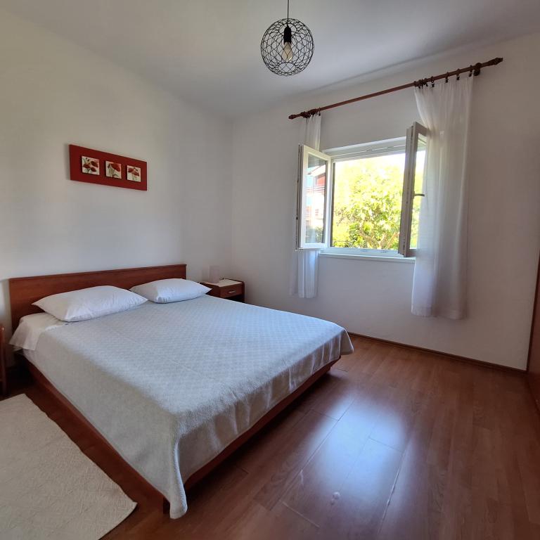 Ponujamo vam najem celotne hiše v izmeri 100 m² z zasebnim dvoriščem v velikosti 600 m² - idealen kraj za sproščen in miren oddih! Prednosti: popolna zasebnost, le 2 minuti hoje do plaže, prostorno dvorišče polno sence in zelenja, uživanje na terasi ali na dvorišču z žarom, zavarovano parkirišče za vaš avto. Tukaj boste našli popoln kotiček za sprostitev in uživanje v naravi, stran od mestnega vrveža. Hiša je sestavljena iz 2 spalnic, velike dnevne sobe, kuhinje z jedilnico in kopalnice. Oddaljenosti: Zadar - 23 km Biograd - 4 km Šibenik - 50 km Bližina nacionalnih parkov: Krka, Kornati, Paklenica.