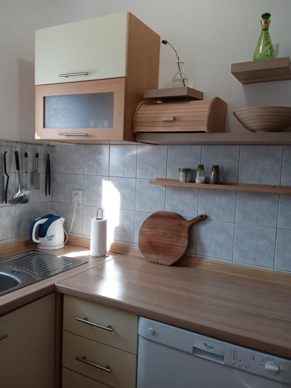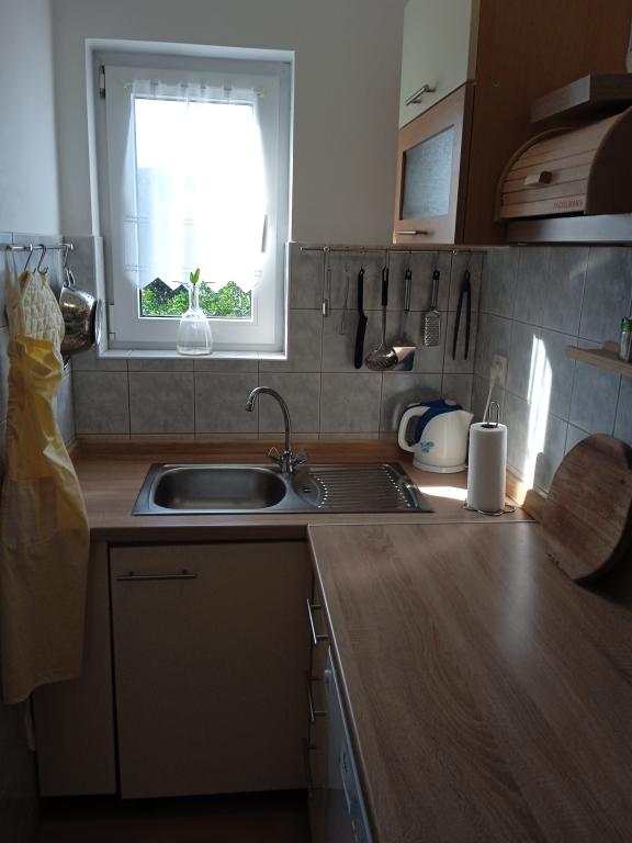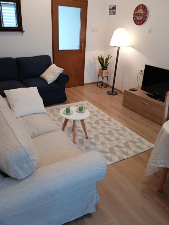 Stanovanje se nahaja v nadstropju hiše. Ima dve spalnici z zakonsko posteljo. Vsaka soba ima balkon. Tudi v stanovanju v dnevno sobo, kuhinjo in drugega balkona. V pritličju je kuhinja in terasa in črna kuhinja s kaminom, ki se uporablja skupaj z gostitelji. Na dvorišču je parkirišče. Stanovanje ima ločen vhod. Free wi-fi.