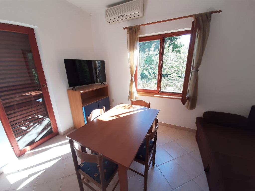 Apartma 4 1 v pritličju hiše z dvoriščem, 50m od morja. Sestavljen je iz 2 spalnici z zakonsko posteljo in dnevno sobo z raztegljivim kavčem. Vključuje klimatsko napravo, TV, WIFI.