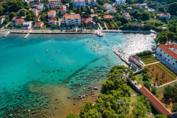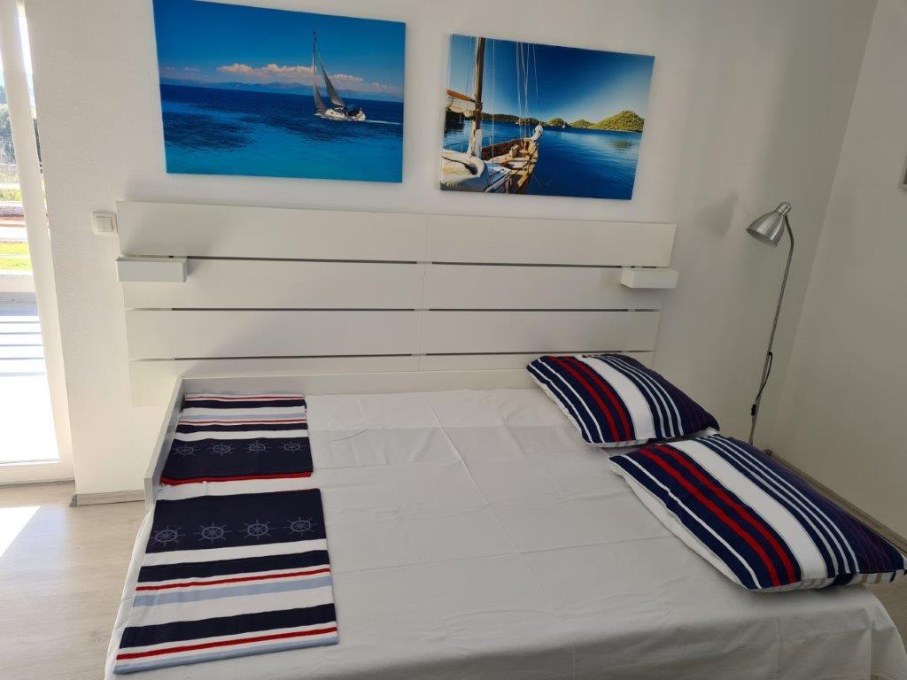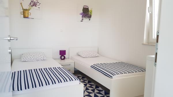 Novi sodobno opremljeni apartmaji v Ugljanu na otoku Ugljan. Mirno okolje tradicionalnih mediteranskih kamnitih hiš, le 3 minute hoje od trgovin, plaž in restavracij. Hitri wi-fi internet v apartmaju. Apartmaji se nahajajo v 1. nadstropju nove hiše, varovano parkirišče. Blizu mesta Zadar (20 minut s trajektom ali ladjo), odlične povezave s trajektom ali hitrim čolnom (več kot 20 linij na dan). Apartmaji so popolnoma fizično ločeni (ločeni vhodi, ločene terase)!