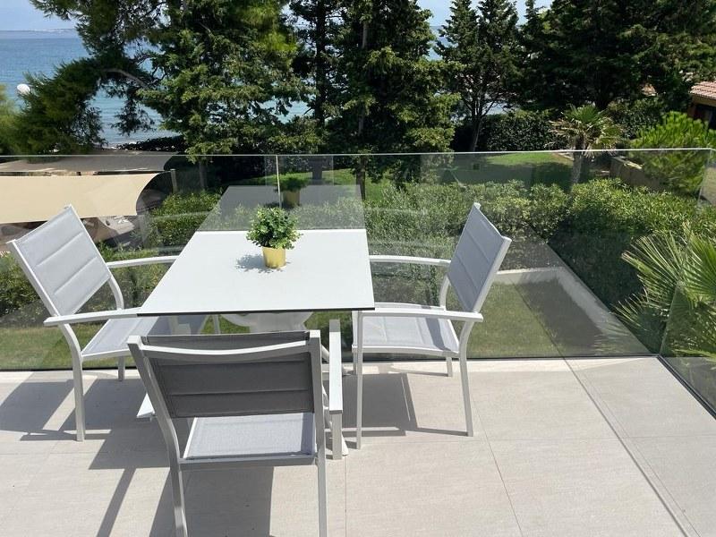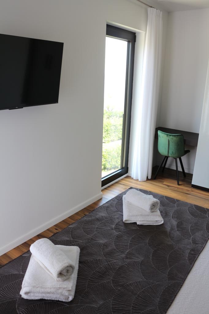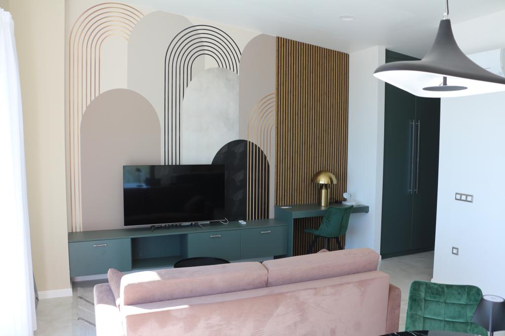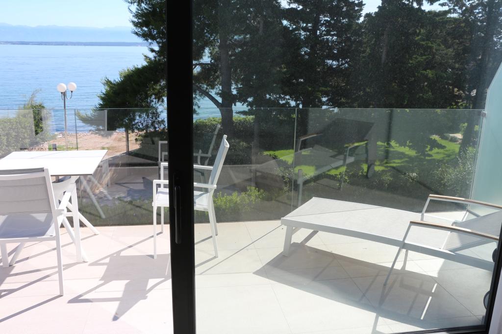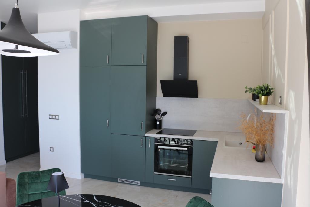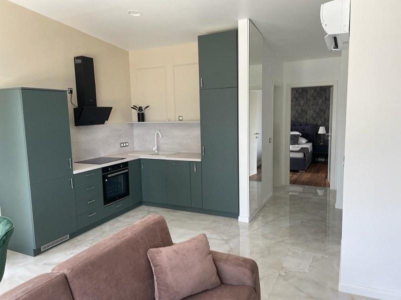 Popolnoma nov in moderen apartma, prva vrsta do morja, 50m2 s prostornim balkonom za sončenje in obedovanje. Varovano parkirišče na dvorišču objekta z električno premično ograjo. Apartmaji so zasnovani z internetno televizijo 55" v dnevni sobi in 43" v spalnici, storitvami pretakanja (kot je Netflix). Opremljene kuhinje s hladilnikom, zamrzovalnikom, indukcijsko kuhalno ploščo in pečico ter pomivalnim strojem. Vključeno, sušilec za lase, brisače, posteljnina, posoda, posoda, toaletni papir. Blizu centra s 3 trgovinami z živili in 4 restavracijami v samem centru mesta. V bližini sta tudi dve piceriji. V bližini sta dva bara na plaži, "Ritam" in "Bichikleta". V sezoni je v baru "Ritam" zanimiv zabavni program z glasbenimi izvajalci.