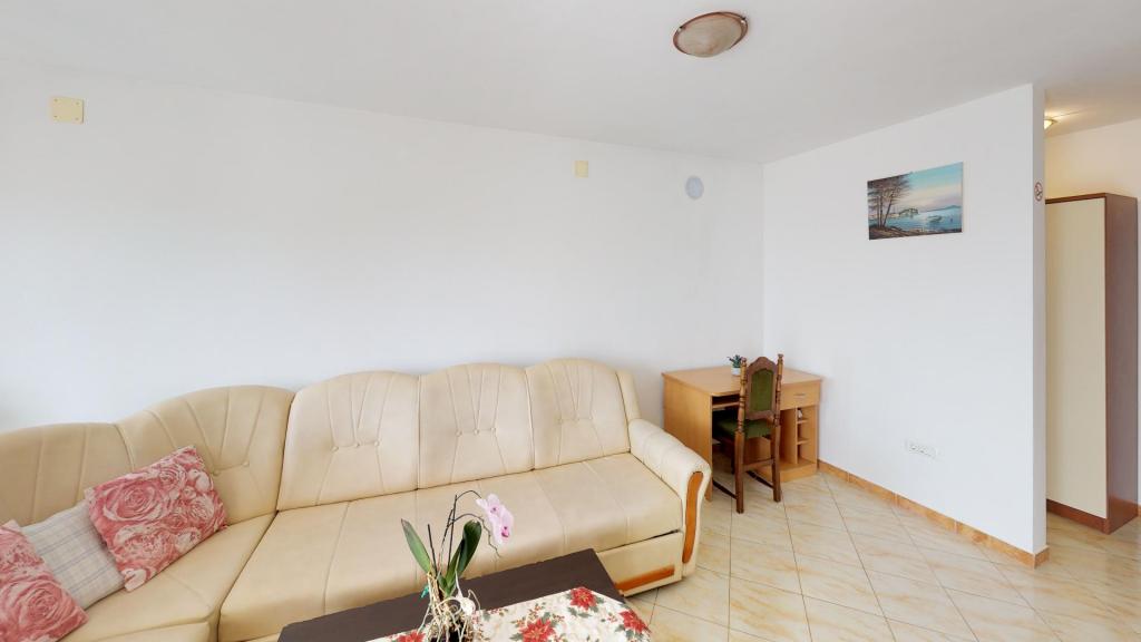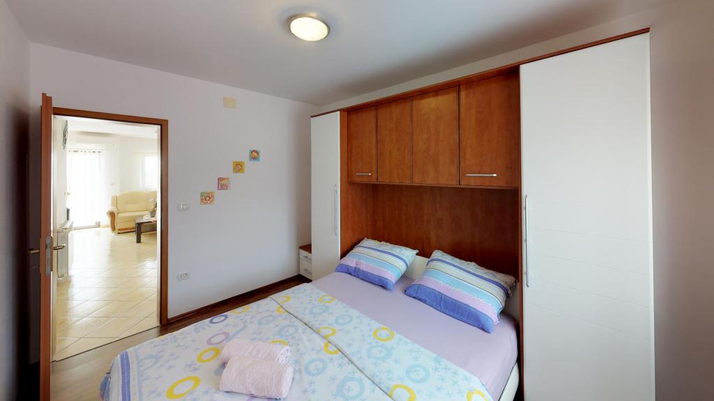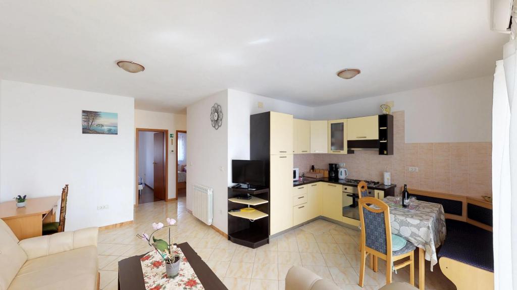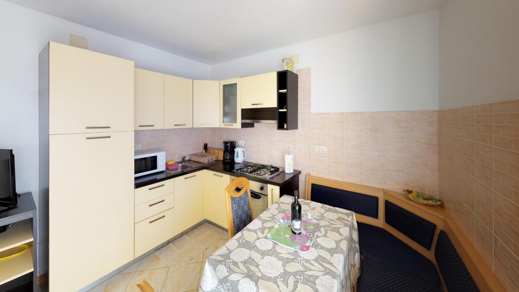 Na novo obnovljen apartma z dvema spalnicama, velika dnevna soba, kopalnica in dve velike terase. Apartma se nahaja v pritličju in z razgledom na morje in gozd, le 4km od centra Umaga v majhni vasici Vilanija. Pridite in se sprostite v mirnem okolju, stran od mestnega hrupa.