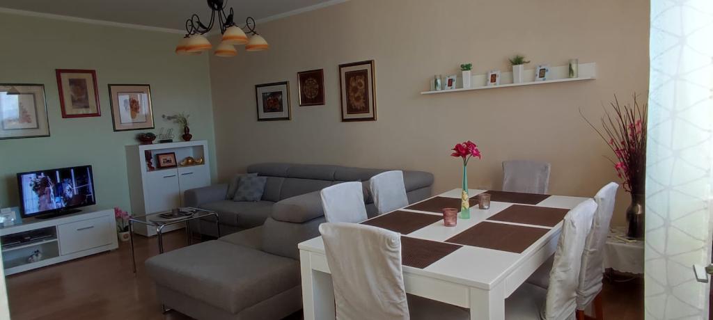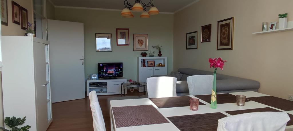 Dobrodošli v apartmaju "Florem", ki se nahaja v bližini centra ValMod, na ulici R. Boškovića 20, v stavbi z dvigalom. Naš klimatiziran apartma v velikosti 60 m2 obsega novo prenovljeno kuhinjo, opremljeno z vsemi potrebnimi aparati in posodo, shrambo, prostorno dnevno sobo, kopalnico s kadjo in pralnim strojem ter spalnico z zakonsko posteljo in pogradom. postelja. Kotno sedežno garnituro v dnevni sobi lahko raztegnete tudi v ležišče. Pred stavbo je brezplačno parkirišče in otroško igrišče obdano z zelenjem. V neposredni bližini je več trgovin, banka, bencinska črpalka, kavarna, cerkev... Sprehodite se lahko do centra mesta ali promenade ob Dravi, kjer lahko v poletnih mesecih uživate v bazenih. Po izhodu se sprostite ob televiziji, brezplačnem WiFi-ju in nekaj knjigah, igračah in družabnih igrah ali ob pogledu na sončni zahod. Z balkona se odpira pogled na strehe starega mestnega jedra, pa tudi na zelenje Dravskega gozda, Ivanščice in Ravne Gore. Želimo vam prijetno bivanje.