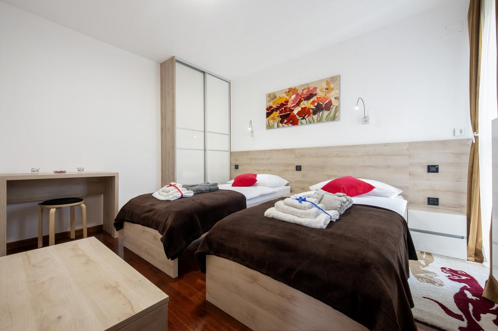 Luksuzni apartmaji Ratkajec so zaradi ponudbe kot nalašč za družine, poslovne partnerje, športnike ali posameznike. Ti sodobni apartmaji se nahajajo v Varaždinu, približno 1,7 km od centra mesta. Ob objektu je ograjeno parkirišče, ki je pod video nadzorom. Apartma je klimatiziran in opremljen s centralnim ogrevanjem ter pomivalnim in pralnim strojem, sprejme do 6 oseb. Apartma ima dve spalnici, ena z zakonsko posteljo, druga z 2 enojnima posteljama + dodatno ležišče v dnevni sobi. V ceno apartmaja je vključen wellness s hidromasažno kadjo, savno, ležalniki in fitnes opremo. Vključeni so tudi drugi pripomočki, kot so boksarska vreča, pikado in namizni nogomet. V bližini apartmaja se nahajajo trgovine, kavarne, restavracije z raznoliko gastronomsko ponudbo tradicionalnih jedi in pijač ter številne kulturne znamenitosti.