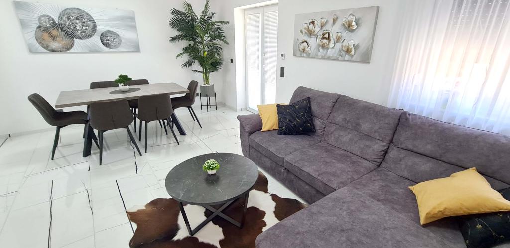 Apartmani Magić Sprostitev na podeželju V majhni vasici Imbriovec, nedaleč od baročnega mesta Varaždin, v intimnem naravnem okolju, se nahaja moderno urejeno posestvo družine Magić. Apartmaji Magić so pravi kraj za sproščujoče družinske počitnice, pobeg od vsakodnevne naglice s pridihom neokrnjene narave, pa tudi za ljubitelje aktivnih počitnic. Moderno urejen in bogato opremljen objekt sestavljata 2 apartmaja in en studio apartma, z namestitveno kapaciteto za skupno 11 oseb. Veliko dvorišče vam ponuja preprost, intimen in sproščujoč oddih. Ta zasebna oaza, bogata z zelenjem in okrašena s cvetjem, ima prostorno pokrito teraso z odprtim žarom. Za najmlajše je urejen otroški kotiček z gugalnicami in toboganom, kjer se otroci lahko neovirano igrajo in zabavajo.