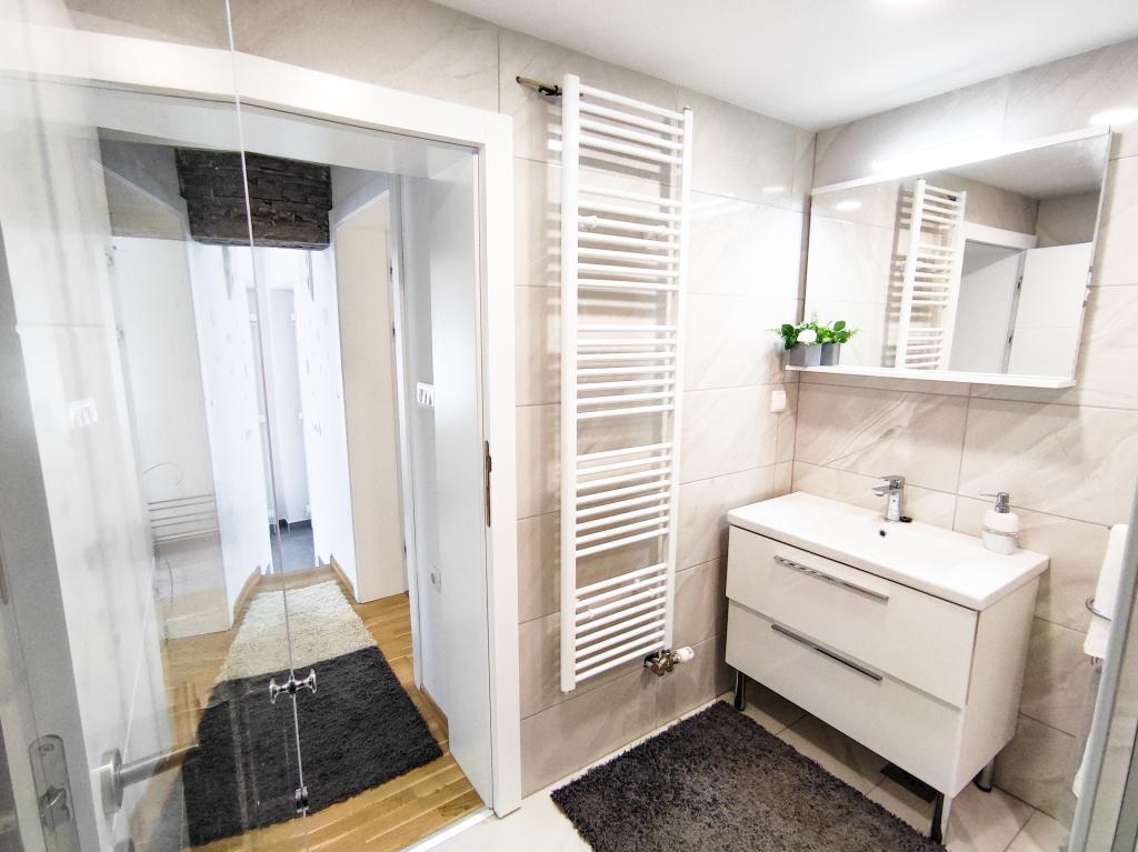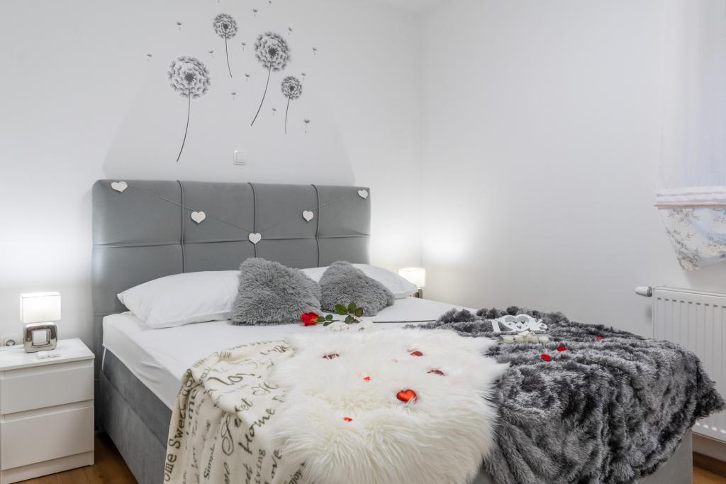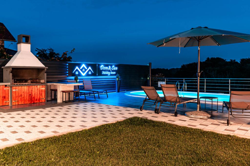 Počitniška hiša Dom&San z bazenom in lokacijo v neposredni bližini baročnega mesta Varaždin ter številnimi aktivnostmi je idealna za pobeg od realnosti. Sprostite se v notranji savni ali jacuzziju in uživajte v počitnicah. Zahvaljujoč bazenu se tukaj prijetno ohladite tudi v najbolj vročih dneh v letu. Bazen ponuja dobrodošlo osvežitev, pokrita terasa pa vabi na počitek v senci ob vonju žara in osvežilne pijače. Vaši otroci bodo navdušeni nad trampolinom, toboganom, plezalom in prostornim dvoriščem, zato bodo zagotovo uživali v igri v naravi na svežem zraku. Hiša je sestavljena iz dveh spalnic, kopalnice, klimatizirane prostorne dnevne sobe s kuhinjo in jedilnico ter sobe za sprostitev z jacuzzijem in savno. Svetle in moderne sobe so izjemno dobro opremljene, po zadnjih standardih v svetu interierja. Notranjost ustvarja sproščeno in prijetno vzdušje, da bo vaš dopust čim boljši.