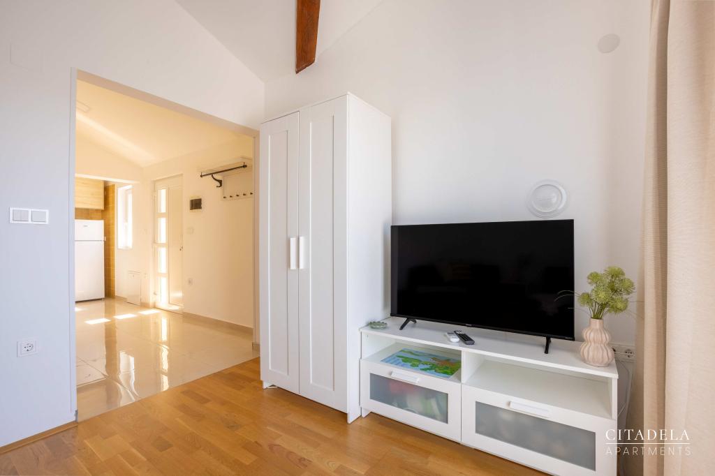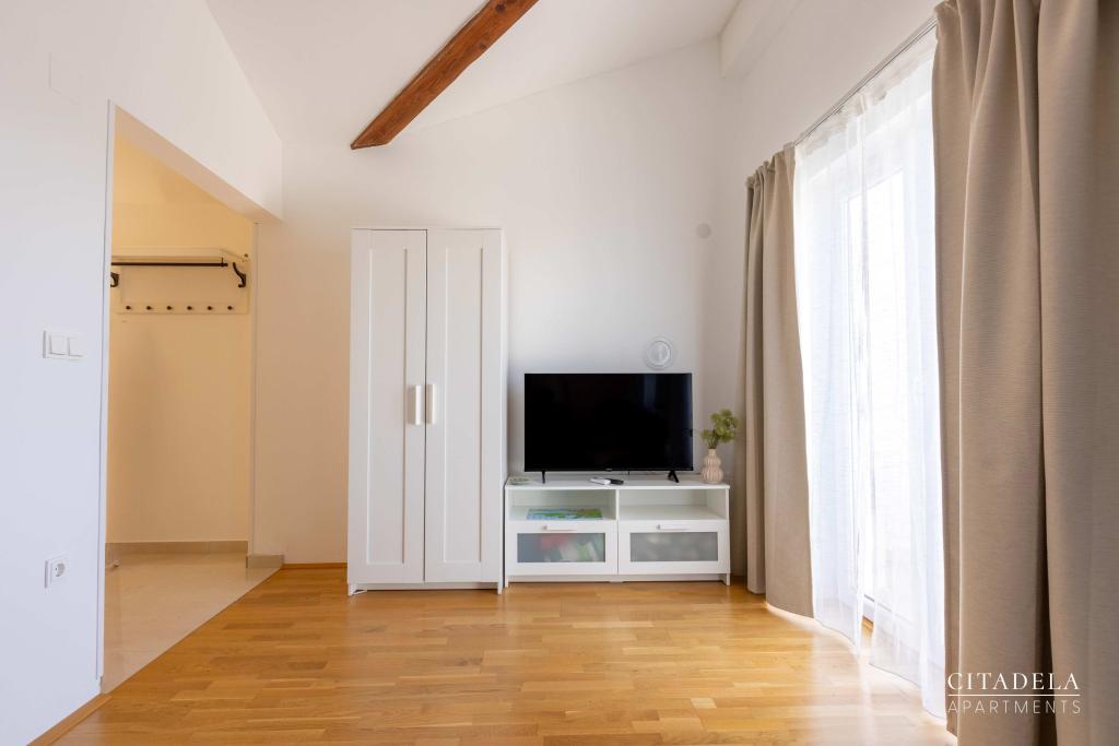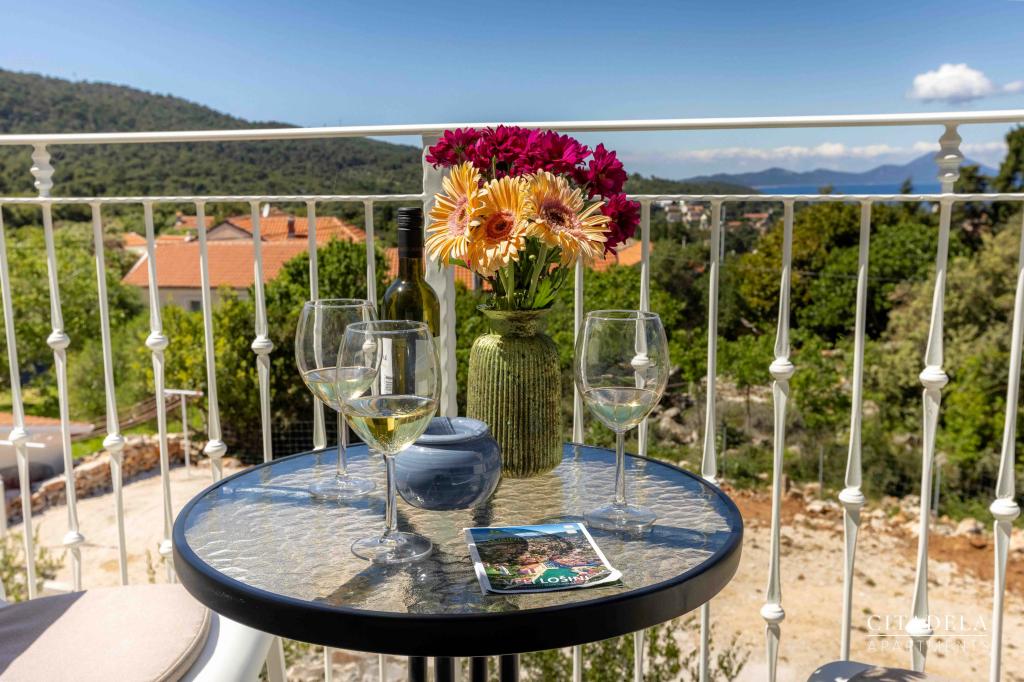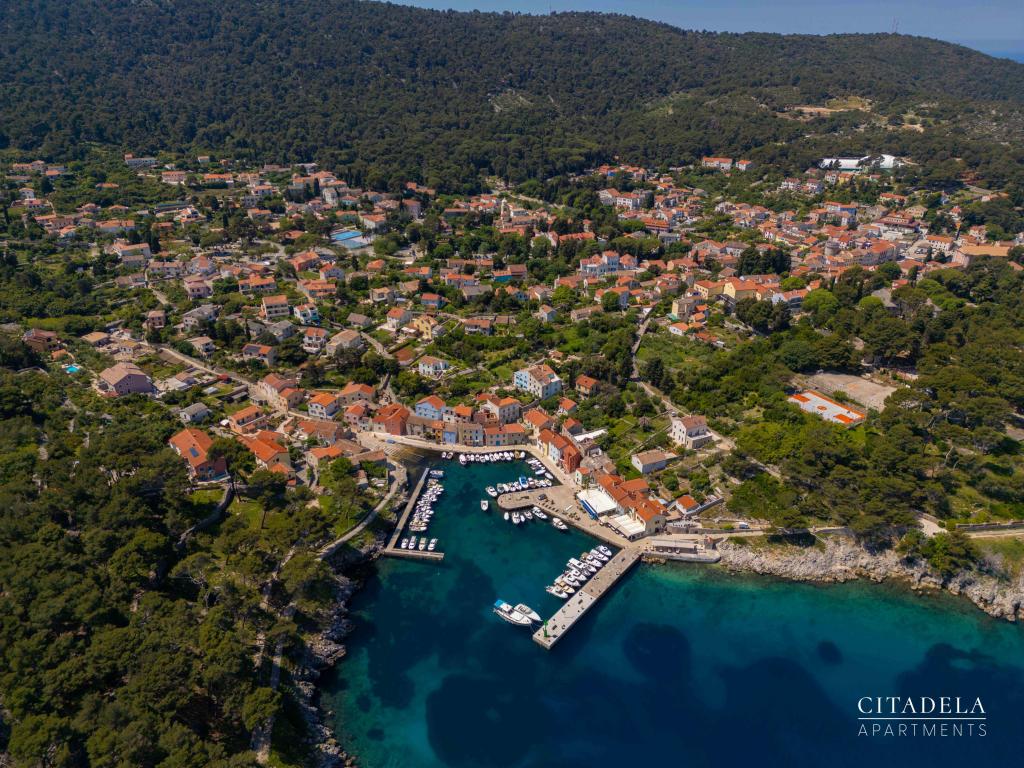 Apartmaji CITADELA VELI LOŠINJ so nov objekt. Odprt je bil 1. junija 2024. !!!!!! Od sezone 2025 je ponudba razširjena na ZAJTRK. !!!!!!!! Nahaja se v neposredni bližini cerkve sv. Ane v Velem Lošinju, ki velja za najstarejšo cerkev na otoku Lošinju, okoli cerkve pa se je v 13. stoletju naselilo prvih 12 hrvaških družin, na otoku Lošinju sploh. Ena od teh hiš se nahaja v sklopu CITADELE VELI LOŠINJ. Zaradi lepote pokrajine, bujne vegetacije in izredno ugodnih klimatskih razmer je leta 1892 avstro-ogrsko ministrstvo za zdravje razglasilo Veli Lošinj za klimatsko zdravilišče. Poleg ugodnosti podnebja je na Lošinju mogoče uživati tudi v različnih športih in vodnih aktivnostih. V bližini so fantastične naravne plaže, ki so oddaljene deset minut hoje. (Javorna, Kriška, Rovenska) Restavracije v zalivu Rovenska, Muzej Apoksiomena v Malem Lošinju. Vodni park Čikat. Tematska razgledna točka Providence......