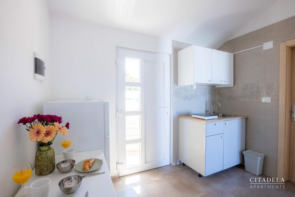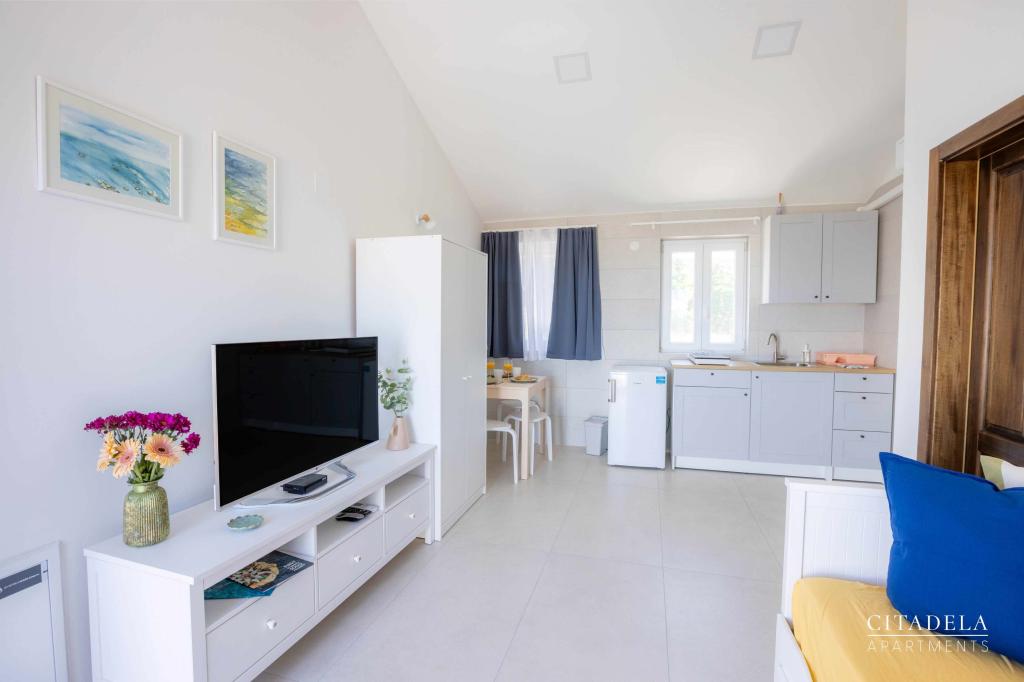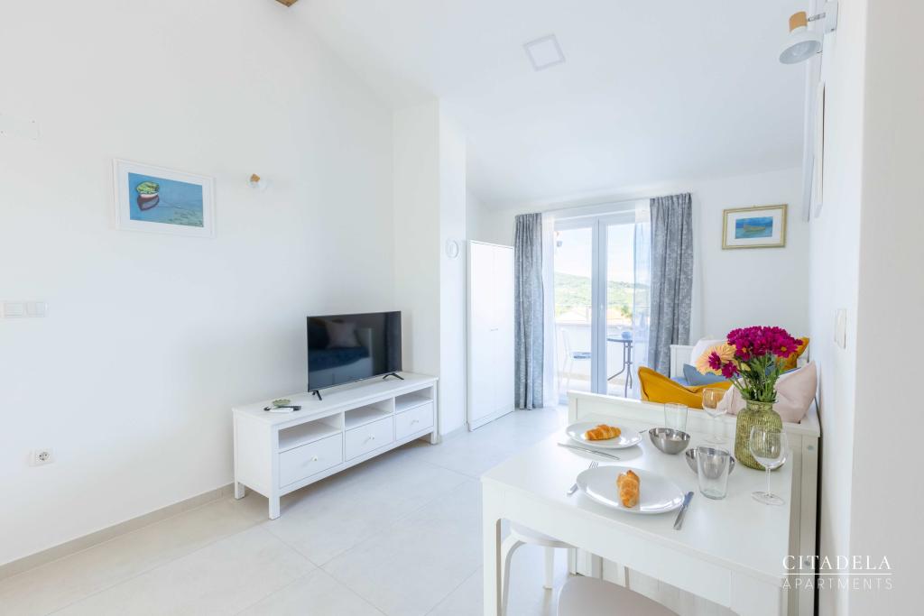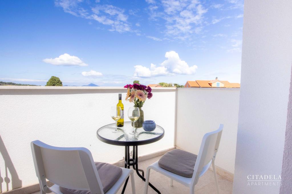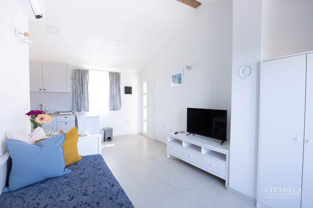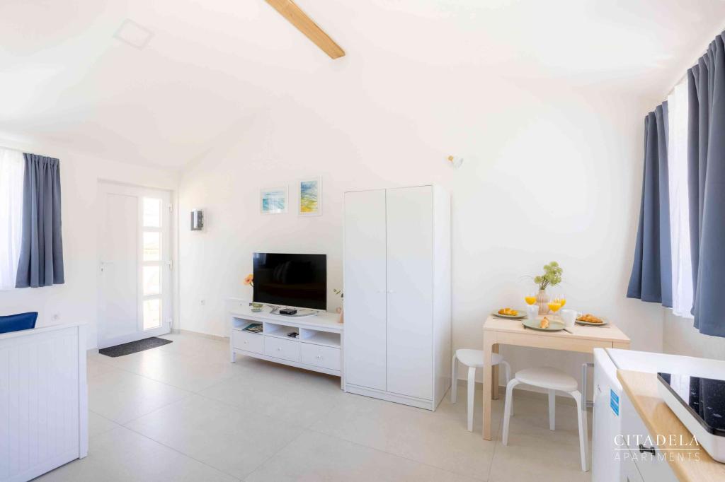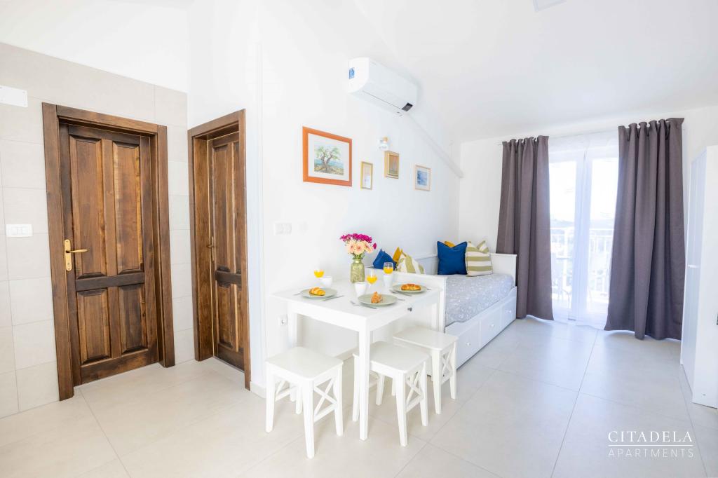Citadela Veli Lošinj je sestavljena iz dveh studio apartmajev (2+0) in šestih apartmajev (2+1). Vsak apartma ima svoj vhod, svojo teraso, brezplačno parkirišče, Wi-Fi, SAT TV in opremljeno kuhinjo. Ob prihodu je obvezna topla dobrodošlica z lahkim okrepčilom. Kot gostitelji vas bomo vodili do vseh vsebin in zanimivosti otoka Lošinja ter vam zagotovili kvaliteten in brezskrben dopust na otoku Lošinju. !!!!!!!!!!!!!!!!!!!!!! OD SEZONE 2025 SMO NAŠO PONUDBO RAZŠIRILI NA STORITEV PRIPRAVE ZAJTRKOV !!!!!!!!!!!!!!!!!!!!!!!!!!!!!!!!!!!!!!!!!!!!!! Zajtrk je po naročilu, vsak gost si izbere zajtrk za naslednji dan. Zajtrk se doplača v nastanitvi. Gost izbere vrsto in ceno zajtrka.