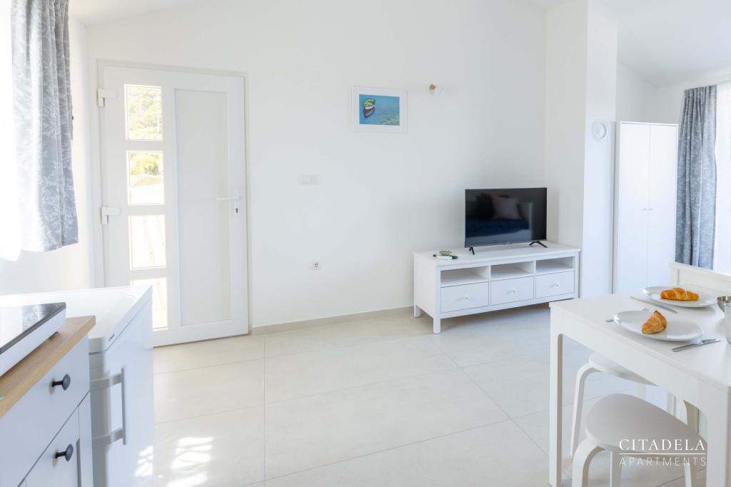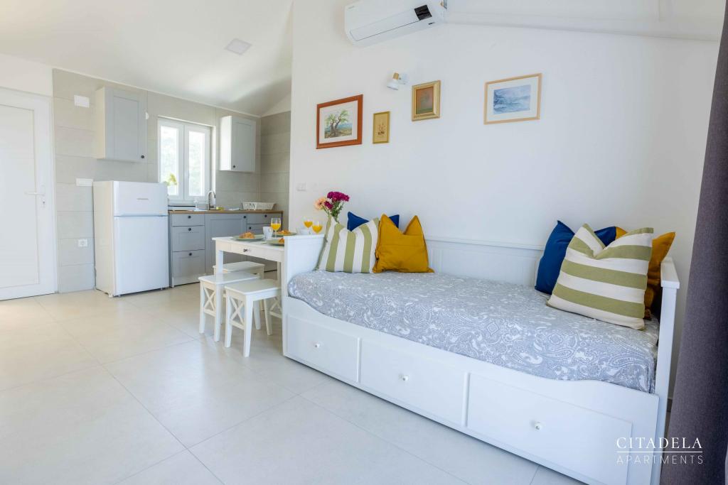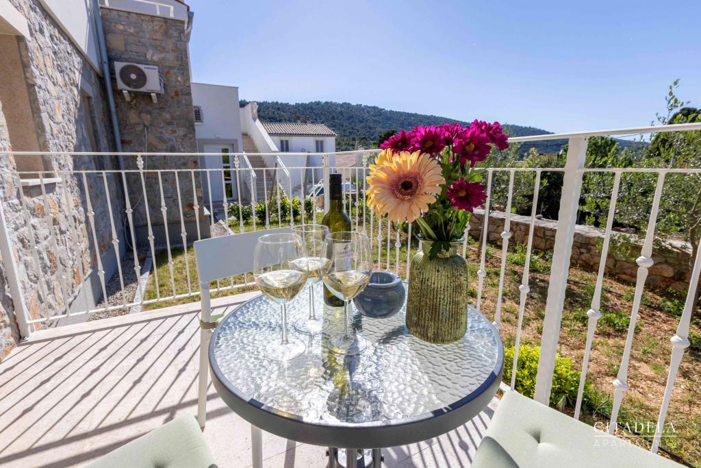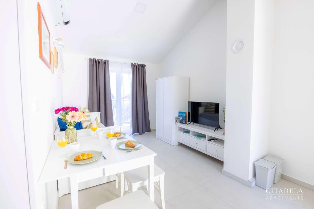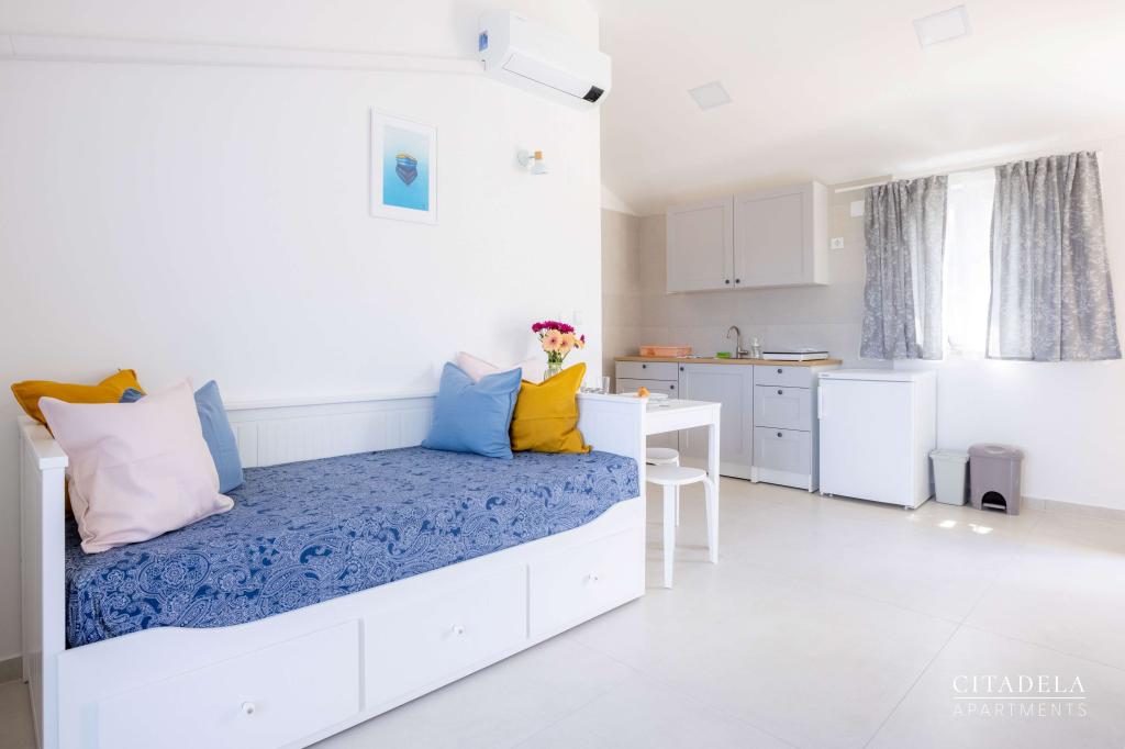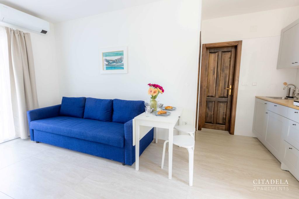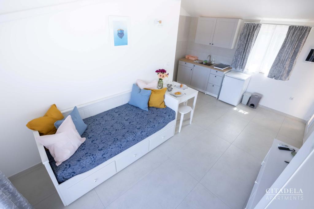 Citadela Veli Lošinj je sestavljena iz dveh studio apartmajev (2+0) in šestih apartmajev (2+1). Vsak apartma ima svoj vhod, svojo teraso, brezplačno parkirišče, Wi-Fi, SAT TV in opremljeno kuhinjo. Ob prihodu je obvezna topla dobrodošlica z lahkim okrepčilom. Kot gostitelji vas bomo vodili do vseh vsebin in zanimivosti otoka Lošinja ter vam zagotovili kvaliteten in brezskrben dopust na otoku Lošinju. !!!!!!!!!!!!!!!!!!!!!! OD SEZONE 2025 SMO NAŠO PONUDBO RAZŠIRILI NA STORITEV PRIPRAVE ZAJTRKOV !!!!!!!!!!!!!!!!!!!!!!!!!!!!!!!!!!!!!!!!!!!!!! Zajtrk je po naročilu, vsak gost si izbere zajtrk za naslednji dan. Zajtrk se doplača v nastanitvi. Gost izbere vrsto in ceno zajtrka.