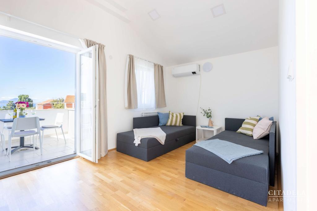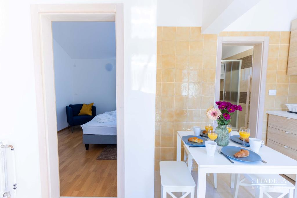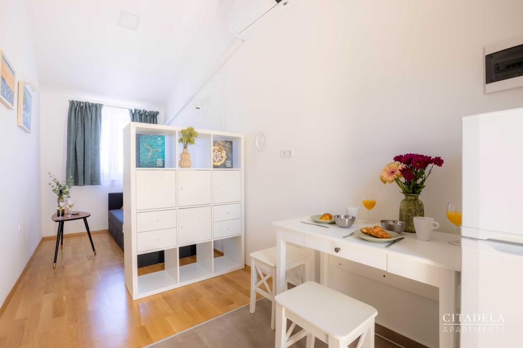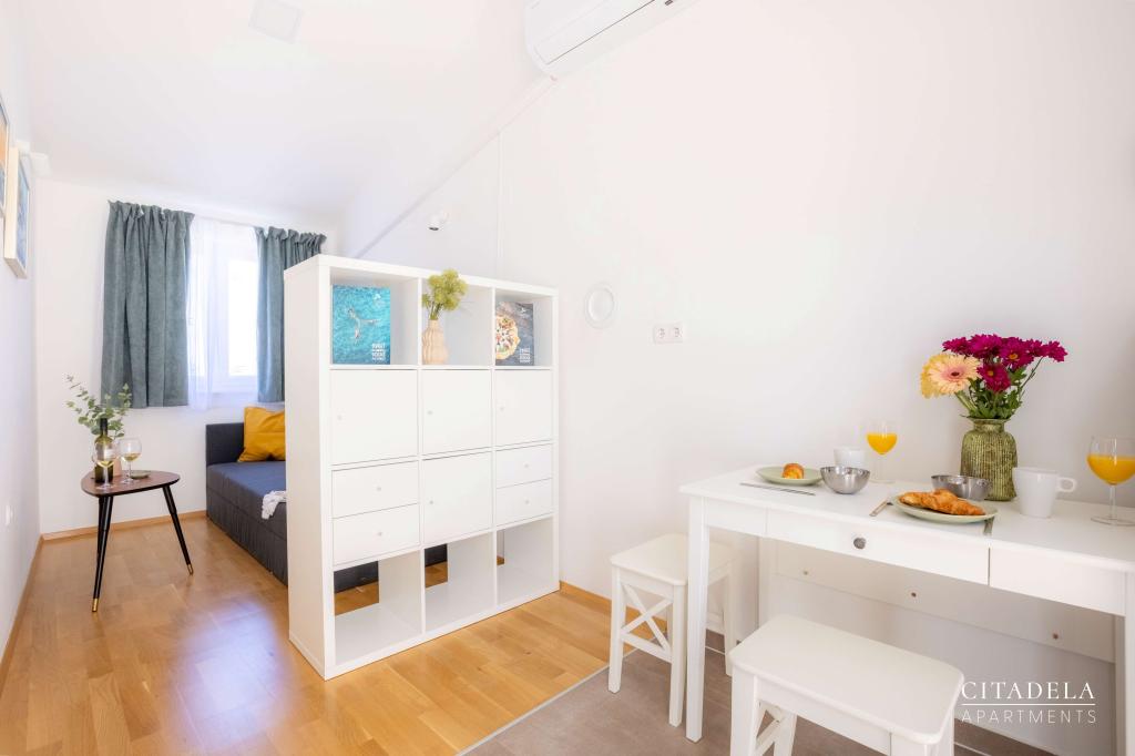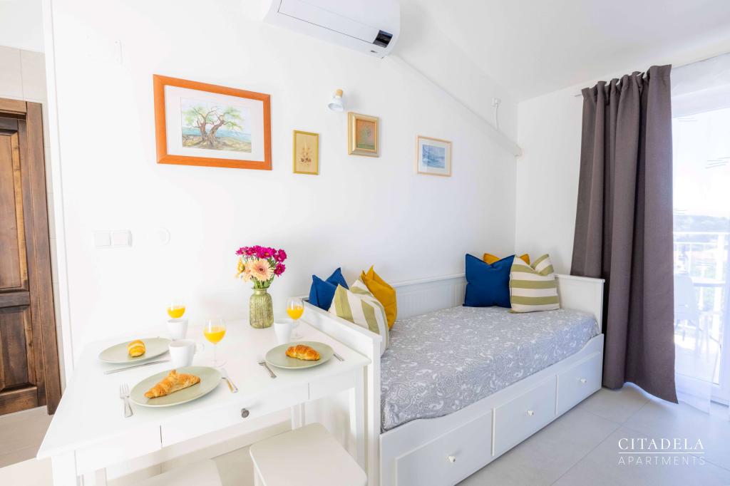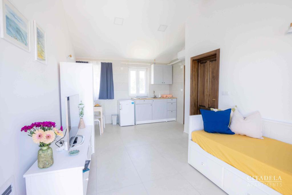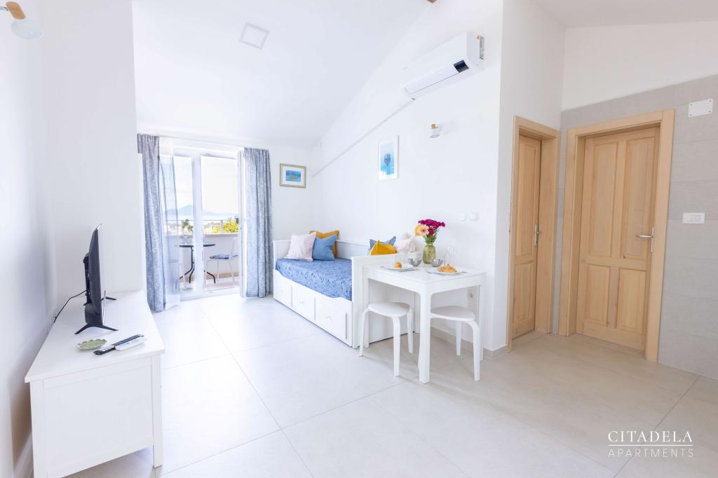 Citadela Veli Lošinj je sestavljena iz dveh studio apartmajev (2+0) in šestih apartmajev (2+1). Vsak apartma ima svoj vhod, svojo teraso, brezplačno parkirišče, Wi-Fi, SAT TV in opremljeno kuhinjo. Ob prihodu je obvezna topla dobrodošlica z lahkim okrepčilom. Kot gostitelji vas bomo vodili do vseh vsebin in zanimivosti otoka Lošinja ter vam zagotovili kvaliteten in brezskrben dopust na otoku Lošinju. !!!!!!!!!!!!!!!!!!!!!! OD SEZONE 2025 SMO NAŠO PONUDBO RAZŠIRILI NA STORITEV PRIPRAVE ZAJTRKOV !!!!!!!!!!!!!!!!!!!!!!!!!!!!!!!!!!!!!!!!!!!!!! Zajtrk je po naročilu, vsak gost si izbere zajtrk za naslednji dan. Zajtrk se doplača v nastanitvi. Gost izbere vrsto in ceno zajtrka.