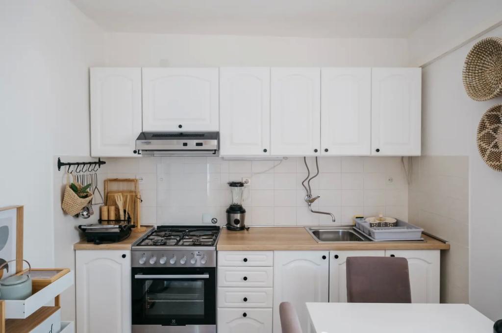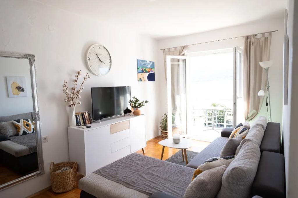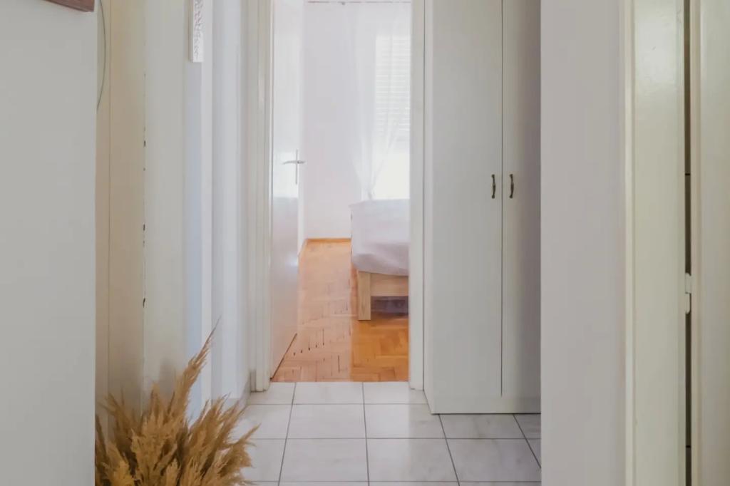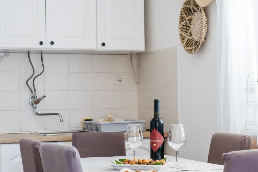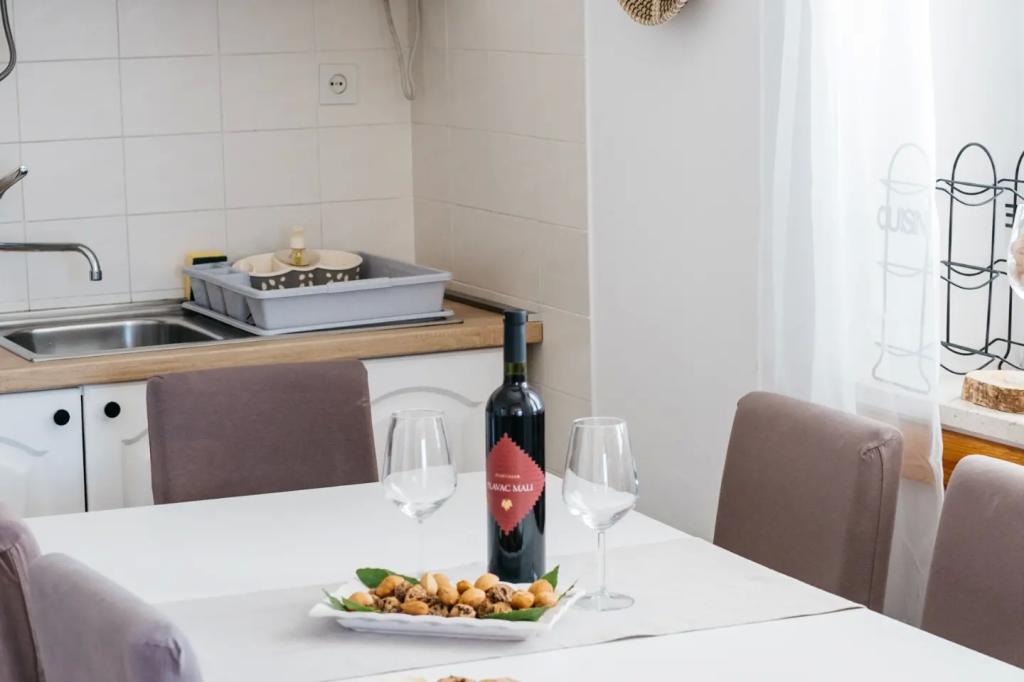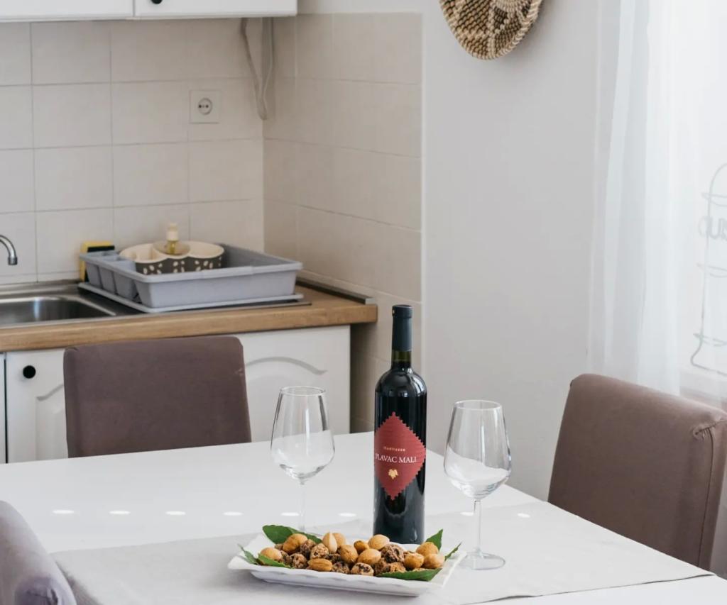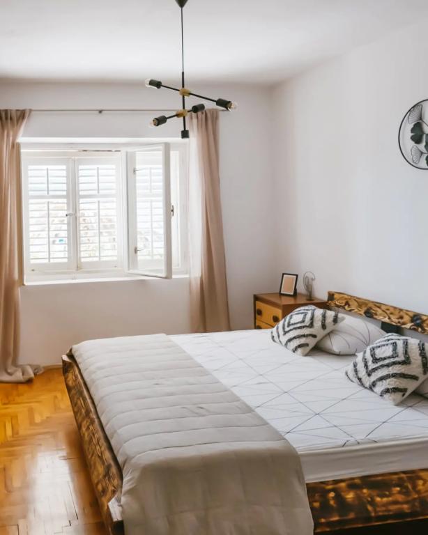 Stanovanje se nahaja v nadstropju hiše, ki se nahaja v neposredni bližini morja. Hiša je daleč od centra mesta le nekaj minut hoje, kjer je trgovina in bankomat. Apartmaji ima kuhinjo, štiri spalnice in dve kopalnici. Idealno za velike družine ali skupine prijateljev. Pred hišo je terasa z veliko leseno mizo, žar in gugalnica. Na voljo je tudi balkon s pogledom na morje ob odhodu dve sobi. Tik pred hišo sta dva (prodnata), plaža in privez za čoln. V ceno je vključen davek, uporabi interneta in parkirišče. Upamo, da bodo vaši gostitelji!