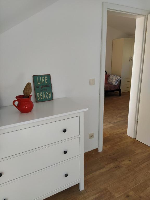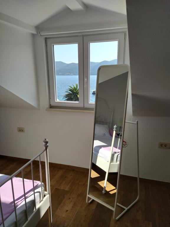 Opremljenost: Zasebni balkon s pogledom na morje Brezplačen Wi-Fi TV z ravnim zaslonom Klimatska naprava Brezplačno zasebno parkirišče Zunanja sedežna garnitura Popolnoma opremljena kuhinja (pečica, hladilnik) Kopalnica s prho, brisačami in posteljnino