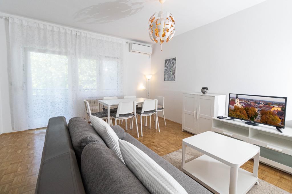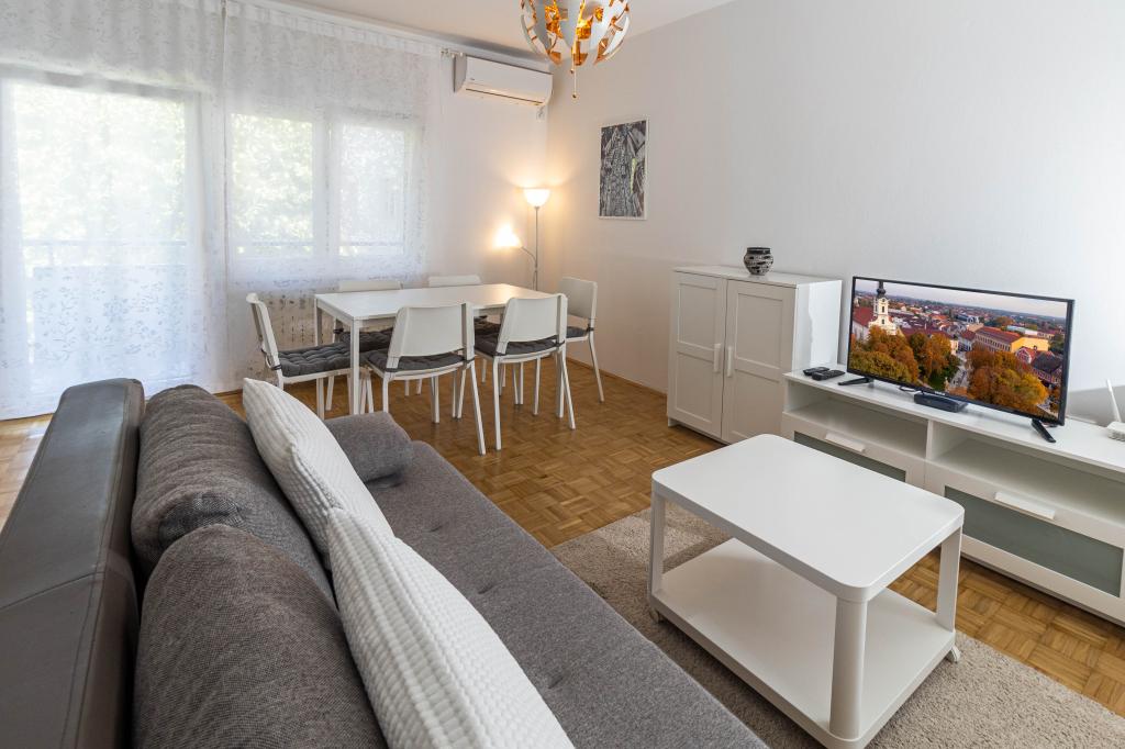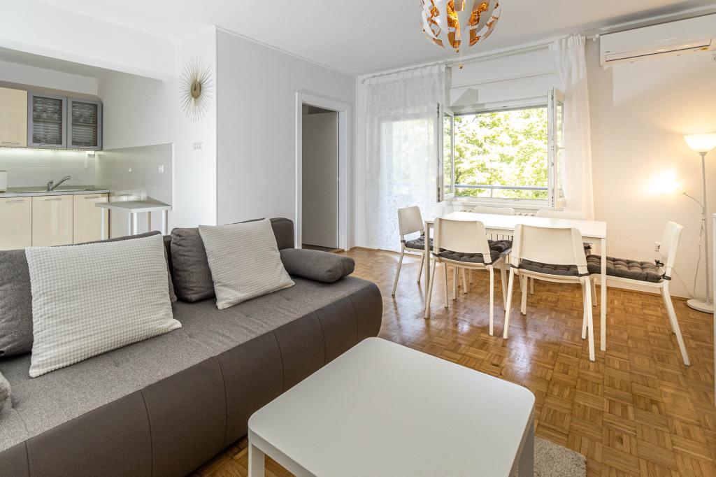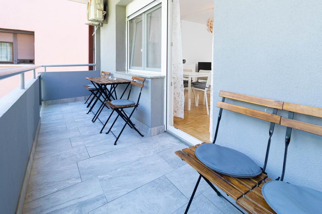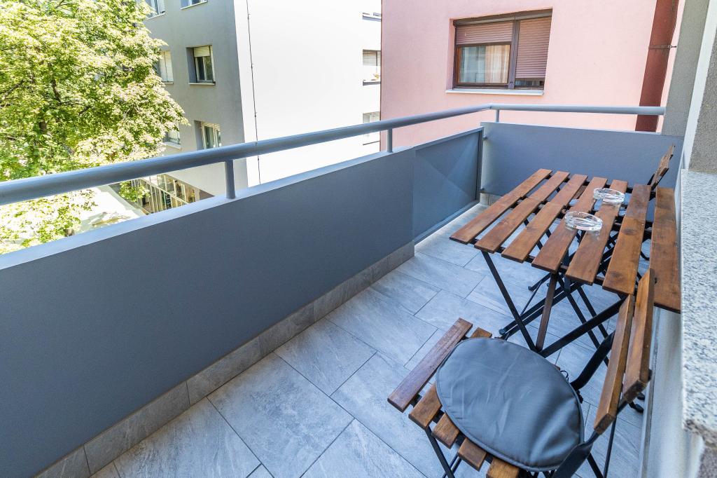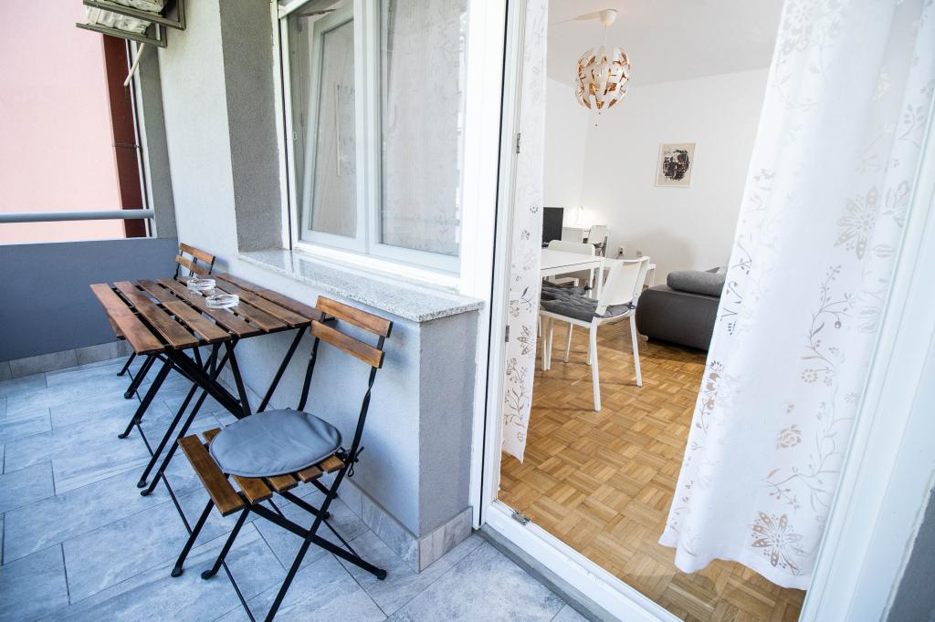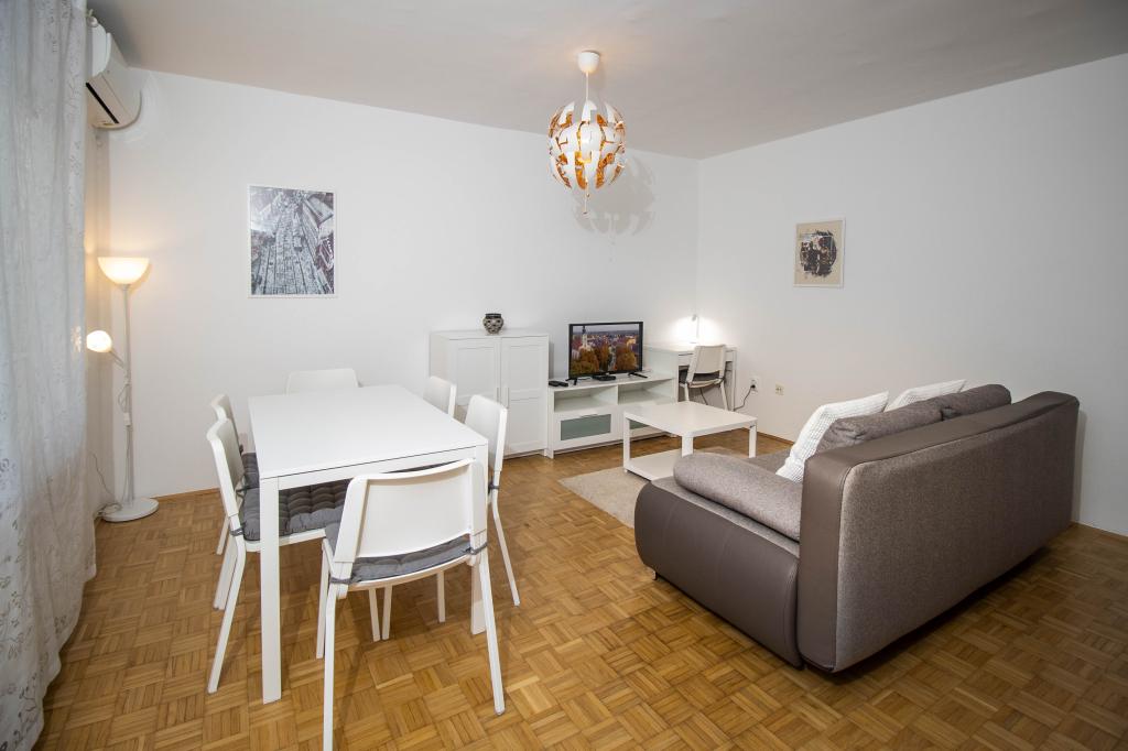 Odlična lokacija v centru mesta! Popolnoma na novo prenovljen apartma (58m2) za udobno namestitev štirih do šestih oseb. Velika dnevna soba (kavč, ki se lahko raztegne v dodatno ležišče za dve osebi), balkon, dve spalnici (v vsaki je postelja za dve osebi), kuhinja, kopalnica s walk-in tuš kabino in hodnik. Popolnoma opremljena kuhinja, pralni/sušilni stroj, klimatiziran prostor, wi-fi (optična internetna povezava), 120 TV programov, lep balkon...
