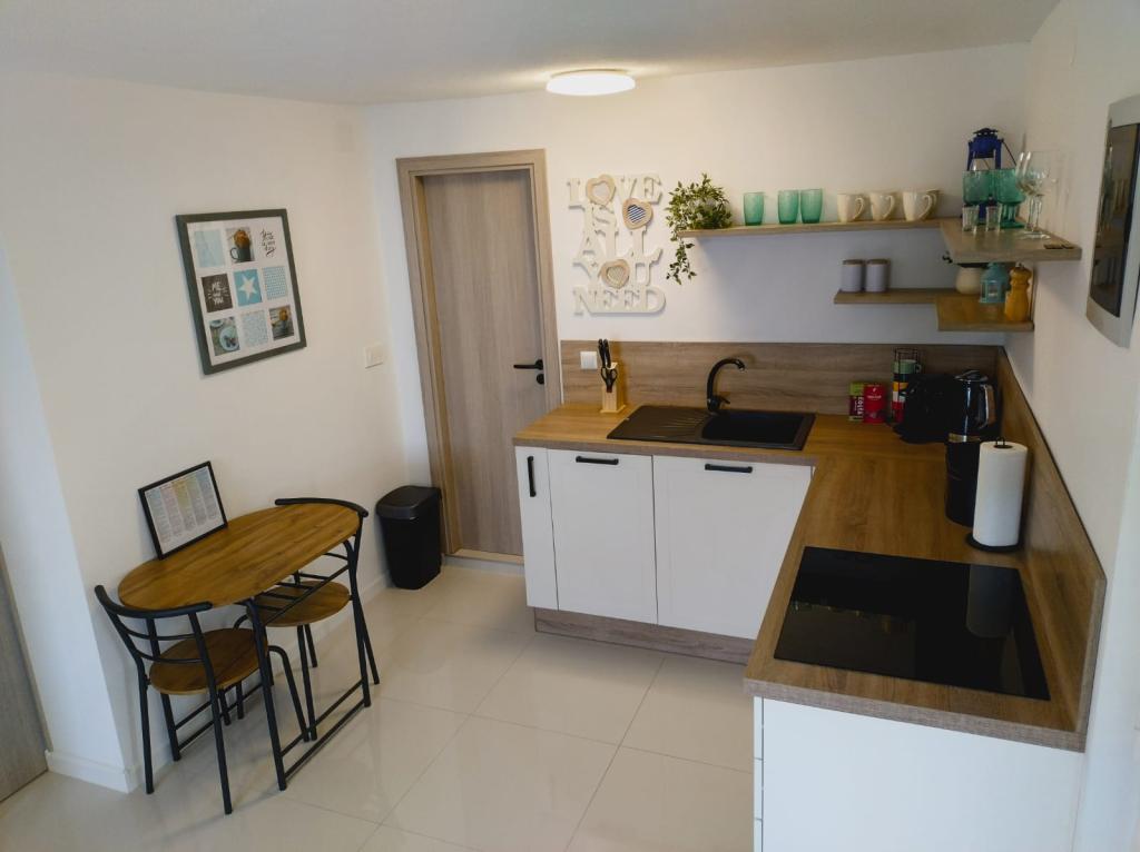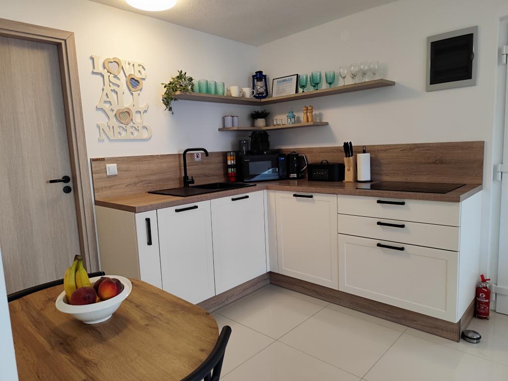 Z bivanjem v tem apartmaju smo zelo zadovoljni! Vse je izjemno čisto in urejeno, lastnika sta izjemno prijazna, ustrežljiva in pripravljena pomagati v vsakem trenutku. Izkazala sta izjemno pozornost do detajlov, ob prihodu pa naju je pričakalo pravo presenečenje - v hladilniku so naju čakale ohlajene pijače in koktajli. Nekaj minut hoje do plaže in nato vas čaka prava ohladitev v morju. Vrh