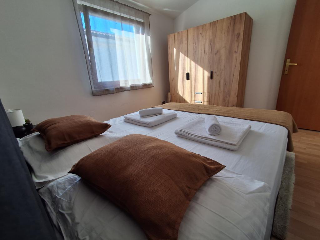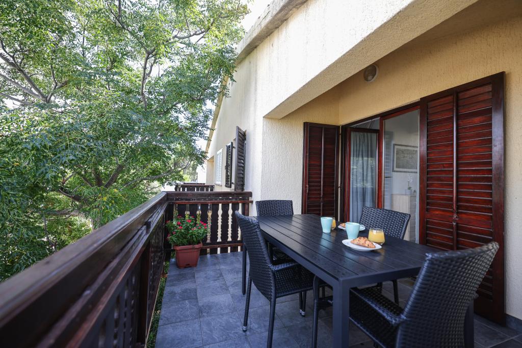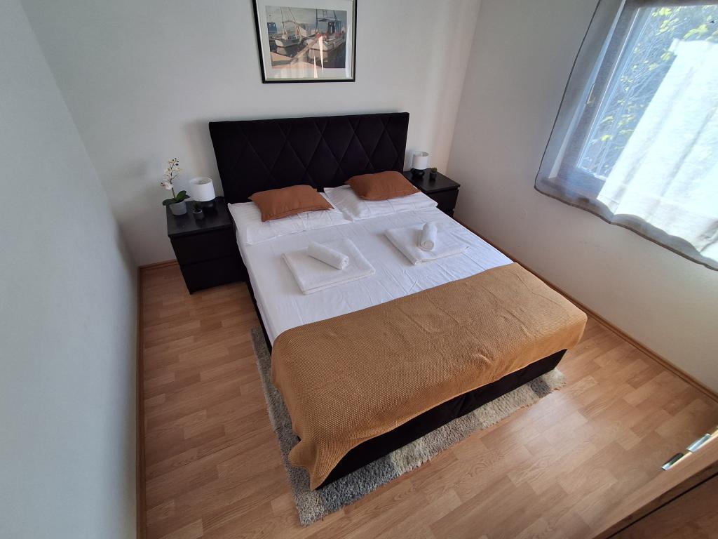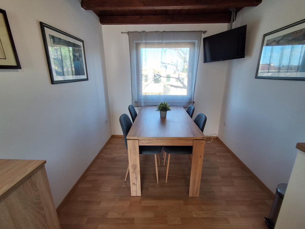 Lepo in moderno urejen apartma za štiri osebe na otoku Viru je idealen za družinske počitnice. Nahaja se nekaj minut od plaže, ki je primerna za otroke, centra, kjer je sprehajališče ob obali, pošte, cerkve, avtobusne postaje, ki je v neposredni bližini in trgovine. Stanovanje je veliko 50 m2 in ima ločen vhod. V ceno je vključeno parkirno mesto, klima v celotnem stanovanju, žar, letni tuš, ki se nahaja na dvorišču. Sestavljen je iz dveh spalnic, kopalnice s tušem, kuhinje z jedilnico in terase. Nahaja se v mirnem delu otoka Vira, vendar je vse na dosegu roke, kot nalašč za idealen dopust.