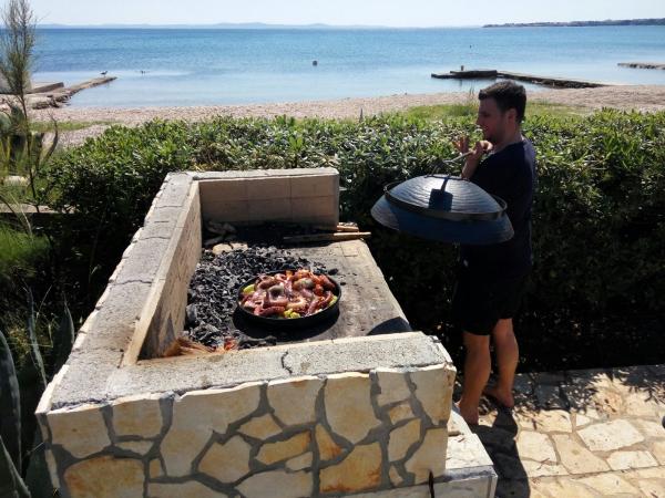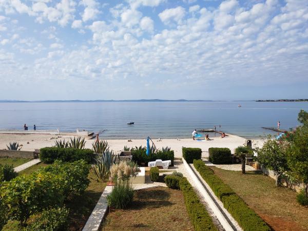 V apartmaju smo letovali 2019 z dvema malima otrokoma. Apartma je direktno na plaži. Takšnih lokacij je malo. Prekrasen pogled iz terase. Med apartmajem in plažo ni nobene ceste. Zelo primerno za otroke. Praktično jih imaš vedno na očeh, (tudi iz terase) tudi če nisi vedno z njimi na plaži. Ko stopiš iz vrta si na plaži. Po par korakih v morju. Blazine in šlaufe smo tako imeli nonstop na plaži. Hladilnik je na dosegu roke… par korakov do apartmaja… In nobenega pakiranja in tovorjenja za na plažo …. in potem pospravljanja in tovorjenja nazaj v apartma !!!! Zvečer sem vso kramo samo prestavil preko ograje na vrt apartmaja. Če pa sem to slučajno pozabili, pa je to namesto nas naredil prijazni lastnik. Na vrtu tik ob plaži tuš, kamin za peko.. s senčnikom…. Po dnevno sveže ribe, zelenjavo, sadje sem hodil k lokalnim ribičem. Seveda ti za njih pove lastnik. Apartma je na novo odlično opremljen. Je pa to studio+1 apartma. Na terasi apartmaja odlična senčna tenda z motorjem in na daljinca. Na vsakem koraku se vidi (tudi sin dela v turizmu), da se znajo it turizma. Lastnika sta zelo prijazna, ustrežljiva in nevsiljiva. Vse je urejeno, doterano, čisto… Za vsako malenkost je poskrbljeno… Do centra mesta vodi sprehajališče. V mestu je veliko dogajanja in skoraj vsak večer koncert. V bližini je več trgovin, pekarn.. Do njih sem se vozil s kolesom, ki ti ga seveda posodi lastnik. Skratka za nas, odlično, pet. Kot rečeno, takih lokacij je malo. Seveda se ob prvi priložnosti vrnemo, če se le uskladimo s terminom.