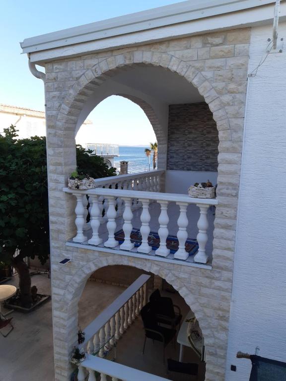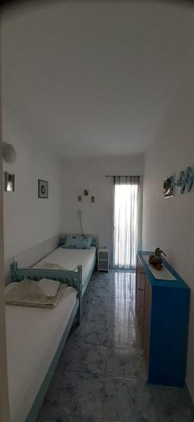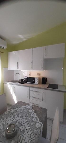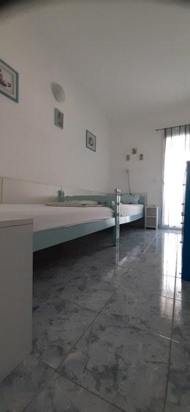 Popolnoma opremljen apartma, TV, klima, wi-fi, indukcijska kuhalna plošča, mikrovalovna pečica, hladilnik. Apartma se nahaja v prvem nadstropju in je sestavljen iz kuhinje, kopalnice in dveh sob, ena z zakonsko posteljo in druga z dvema posteljama, iz katerih je terasa s pogledom na morje. Morje in plaža sta oddaljena 20 metrov. Veselimo se vašega obiska in smo vam vedno na voljo za vprašanja glede rezervacij.