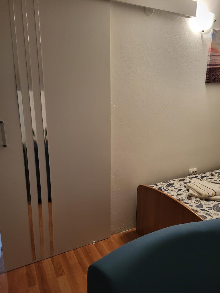 Stanovanje se nahaja v mansardi manjše hiše. Je najmanjši in najožji, kar smo jih kdaj imeli. Poleg tega je v njej neznosno vroče zaradi vročega betonskega stropa, ki je v spalnicah tako nizek, da se kar naprej udarjaš z glavo. Ne morete ustvariti prepiha, ker je v sobi samo eno majhno okno in vas zaradi tega nenehno duši in vam primanjkuje kisika. Klima je slaba in jo lastnik prižiga in ugaša, ko mu paše, ker je klima prižgana v pritličju hiše, kjer so lastniki ves čas. Tople vode je malo in voda ni pitna. Sobe so majhne in utesnjene, do omare se moraš splaziti čez posteljo, postelje pa so neudobne. Nikakor nismo mogli spati, ko smo se zbudili, pa nas je vse bolelo. Dnevnega varstva ni. Vrata pri odpiranju udarjajo ena ob drugo. Kuhinja je majhna, tesna, ima zložljivo mizo, kjer lahko jesta samo dva. Štedilnik je plinski, pečice ni. Balkon je čez dan zelo vroč, tako da se ga lahko uporablja le zvečer, takrat pa je veliko komarjev. Čez balkon je sosedova hiša, tako da tudi od lastnika nimaš nobene zasebnosti. Lokacija je zelo slaba, v bližini ni niti ene restavracije, trgovine, sladoleda ali pekarne, do centra je treba iti z avtom, ker je več kot pol ure peš po ulici brez pločnikov in razsvetljave. , kar ni priporočljivo. Lastnikov žar je v lopi, brez katere ne morete, Wi-Fi je slab in počasen, prav tako signal na mobilnih telefonih. Vse skupaj ne zadovolji.