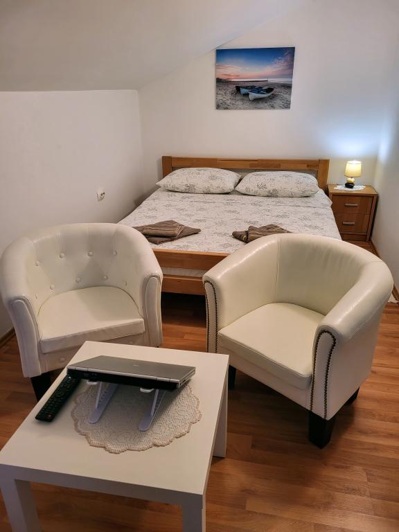Apartma je zelo blizu plaže in kavarne na plaži. Plaža je res odlična tako za otroke kot za odrasle. Gospod Josip in gospa Milica sta prava gostitelja. Ko te kaj moti, so vedno pripravljeni pomagati. Apartma je čist, z dvema ločenima sobama in veliko lepo teraso, kjer imate svojo zasebnost od kogar koli. Z eno besedo, apartma za poželeti. Še enkrat hvala, ker ste tako pomagali svojim gostom.