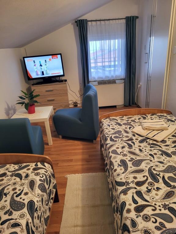 Absolutno zadovoljstvo. Lastnika prenočišča gospod Josip in gospa Milica sta zelo gostoljubna in torta dobrodošlice ter večerja sta bili popolnoma čudoviti in nepričakovani. Sobe so čiste in opremljene z vsem, kar potrebujete. Terasa je prostorna in jo senčijo zavese, ki jih je sešila gospa Milica. Okna imajo komarnike in klimatska naprava deluje. Na voljo je ohlajena voda, voda iz pipe pa je seveda pitna. V 14-dnevnem bivanju smo večkrat dobili čiste brisače in rjuhe. Ena najboljših namestitev, kar smo jih kdaj doživeli. To dokazujejo druge pozitivne ocene. Josifu in Milice želimo veliko zdravja in naj še vrsto let upravljata s tovrstnimi objekti. Ivona in Jan K.
