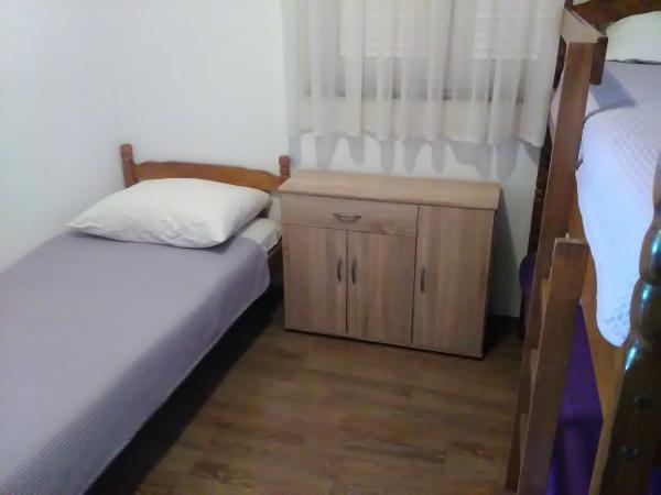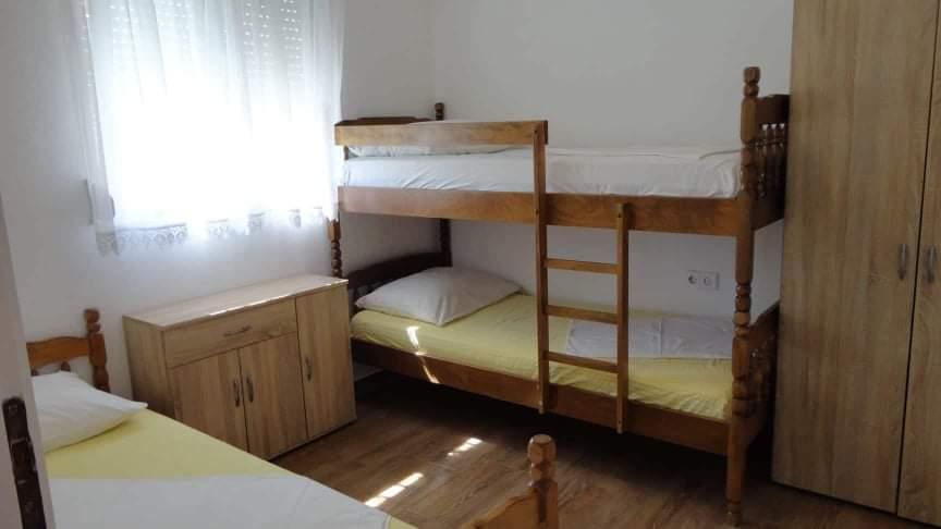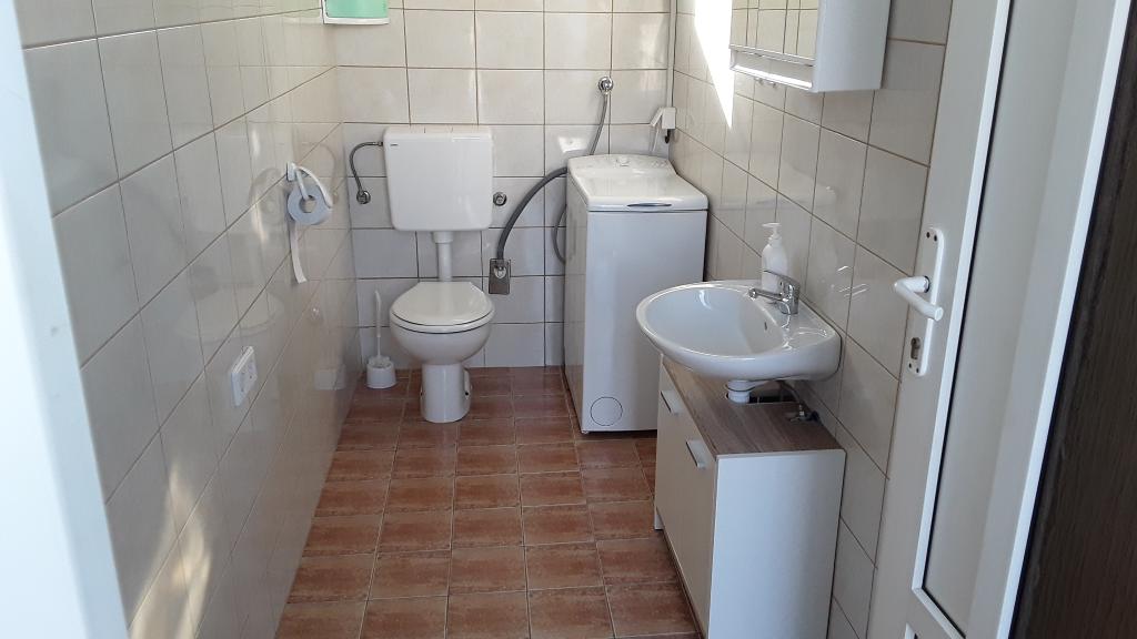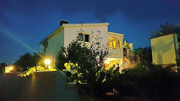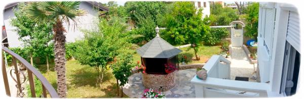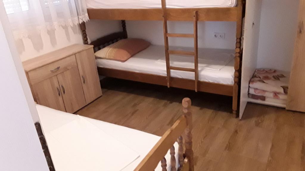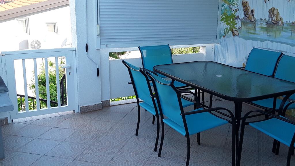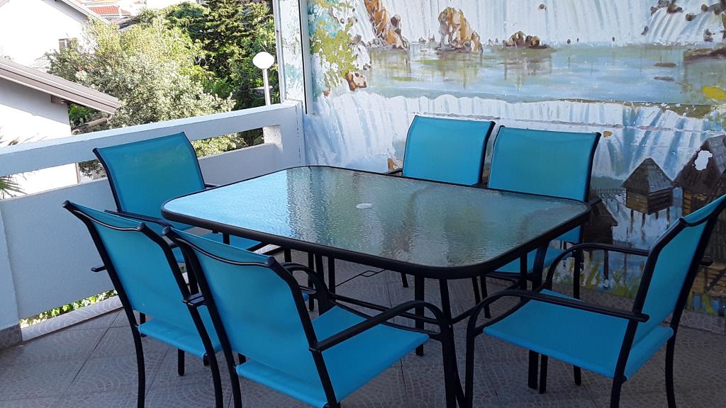 Stanovanje se nahaja v nadstropju hiše je sestavljen iz 3 spalnice, dnevna soba s kuhinjo, kopalnica z WC in drugega ločen WC. Stanovanje ima veliko pokrito teraso z žarom, ki je ograjen za varnost otrok, velik vrt, kjer se otroci ne morejo igrati, plaža je le tri minute hoje do mesta, kjer restavracije. Brezplačno pijačo dobrodošlice. Za vse informacije smo vam na uslugo. V izven sezone z veseljem sprejeli majhno število ljudi.