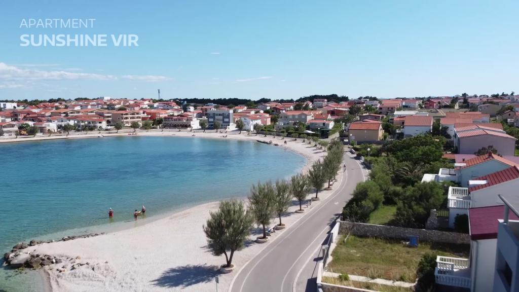 Dvosobno stanovanje 'Sunshine' na otoku Viru. Stanovanje se nahaja v mirni ulici, 90 metrov od plaže. Plaža ima peščeno dno, zato je idealna za družine z otroki. Trgovina, pekarna, kavarna so oddaljeni 50 metrov. Zagotovljeno eno parkirno mesto, Wi-Fi, klimatska naprava. Mreže proti komarjem na vseh vratih in oknih. Čas prihoda: od 14:00, čas odhoda do 9:00.