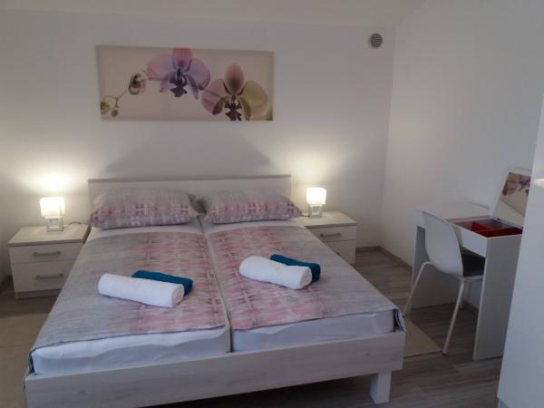 Tukaj smo bili zelo srečni. Apartma je popoln, vse je novo, čisto, odlično opremljeno, tukaj dobesedno nič ne manjka. Oba lastnika sta zelo prijetna, pozorna in ustrežljiva. To je najboljša namestitev, kar smo jih kdaj doživeli na Hrvaškem. Lahko ga samo priporočamo vsem!!!!!!