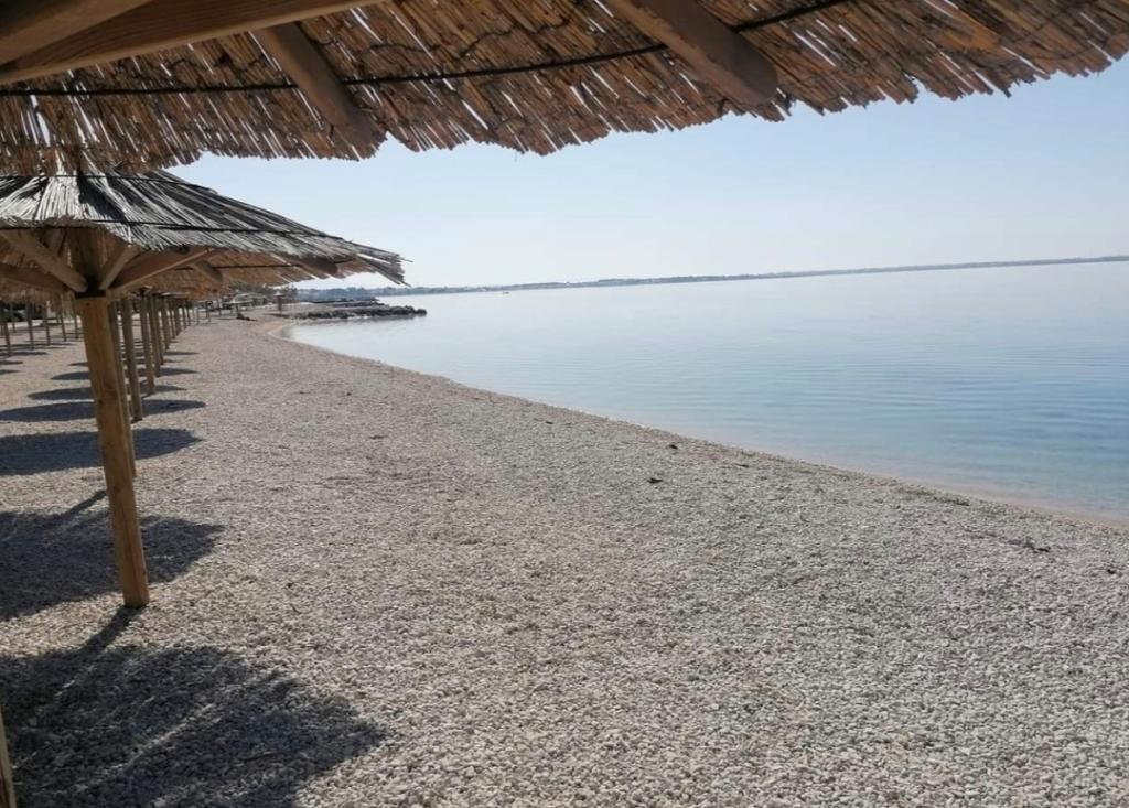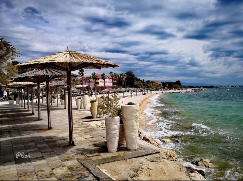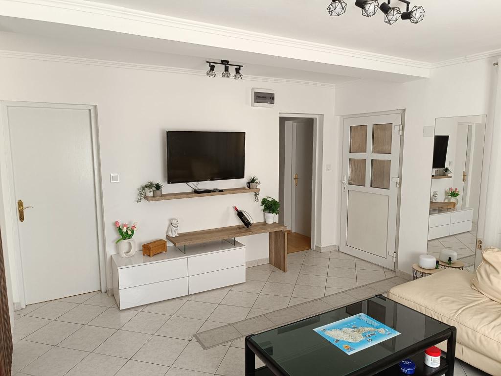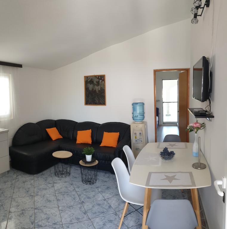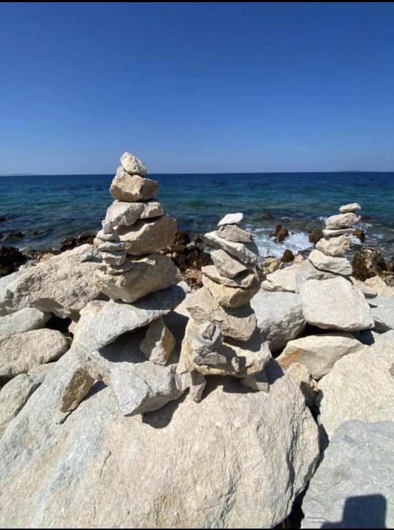 Apartma Aquamarine se nahaja približno 2,7 km od plaže Jadro. Nastanitev s pogledom na vrt ponuja nastanitvene enote z vrtom in balkonom. Nastanitev ob obali ponuja teraso, brezplačno zasebno parkirišče in brezplačen WiFi. Namestitev ima 2 spalnici, dnevno sobo, TV z ravnim zaslonom, opremljeno kuhinjo z jedilnico ter kopalnico s prho in pralnim strojem. Apartma ima žar in teraso.