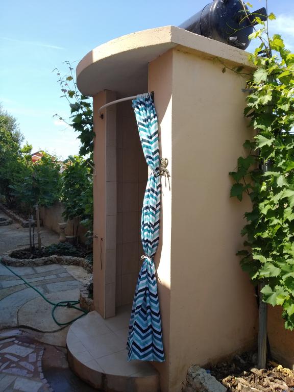 Turistična taksa je vključena v ceno.Gostom je na voljo veliko ograjeno dvorišče. Za hišo imamo zunanji tuš s toplo in hladno vodo. Vsak se lahko tušira, kadar hoče. Ob hiši, na zadostni oddaljenosti od apartmaja, se nahaja žar. Na voljo je tudi vsem gostom. Dovolj je tudi prostora za igro otrok. In kar je najpomembneje, avto parkirate na ograjenem dvorišču.