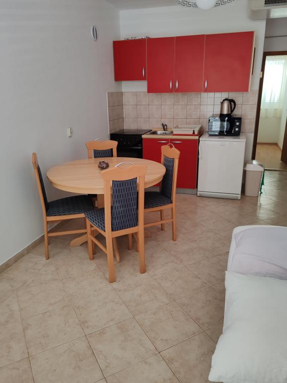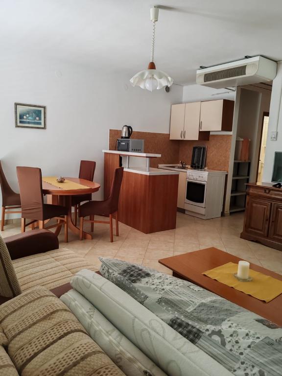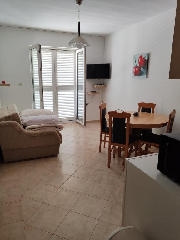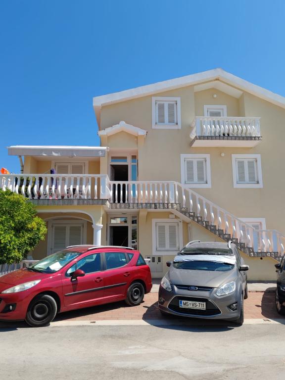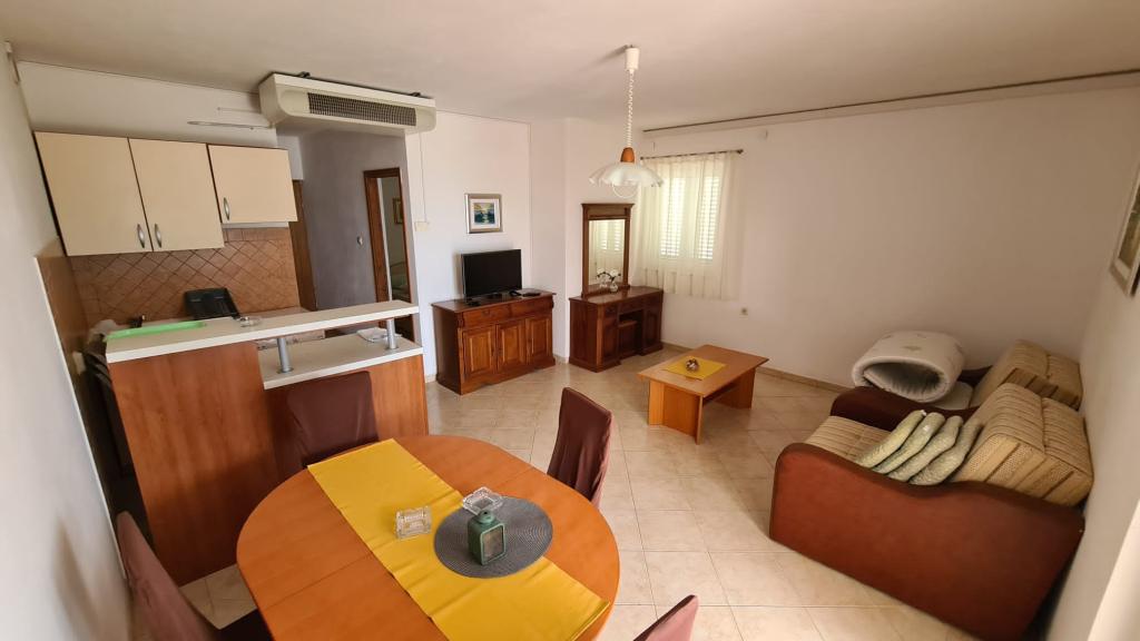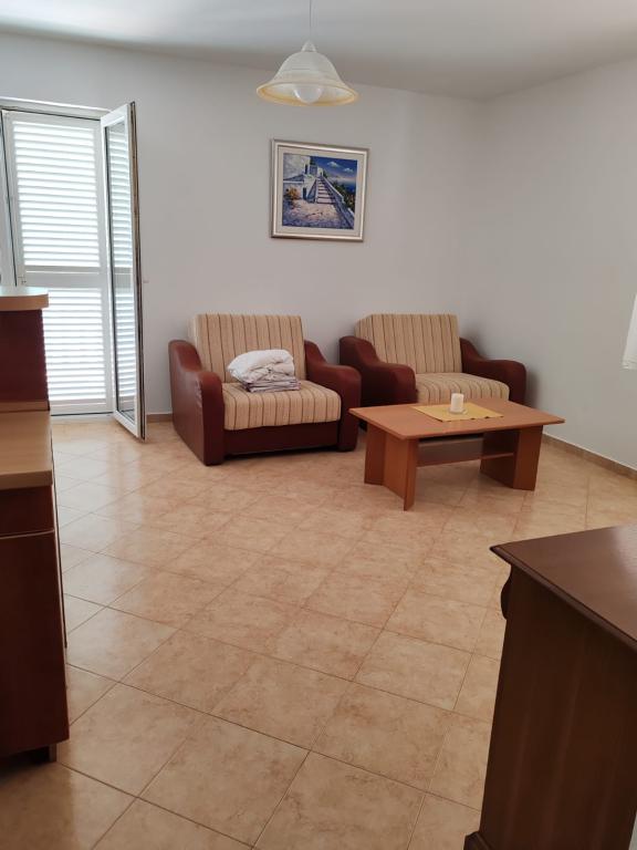Nudimo 6 dobro opremljenih apartmajev. Hiša, v kateri se nahajajo apartmaji, je prva ob morju in le 25 m vas loči od plaže. V bližini objekta je plaža s peskom v morju, idealna za družine z otroki.