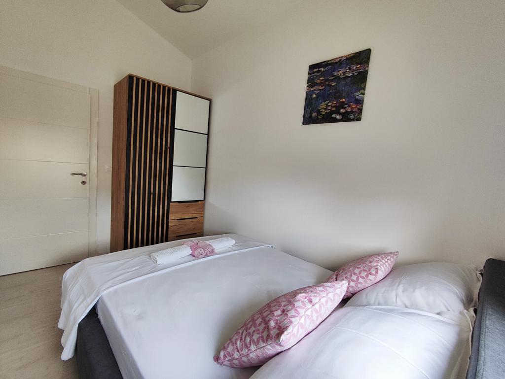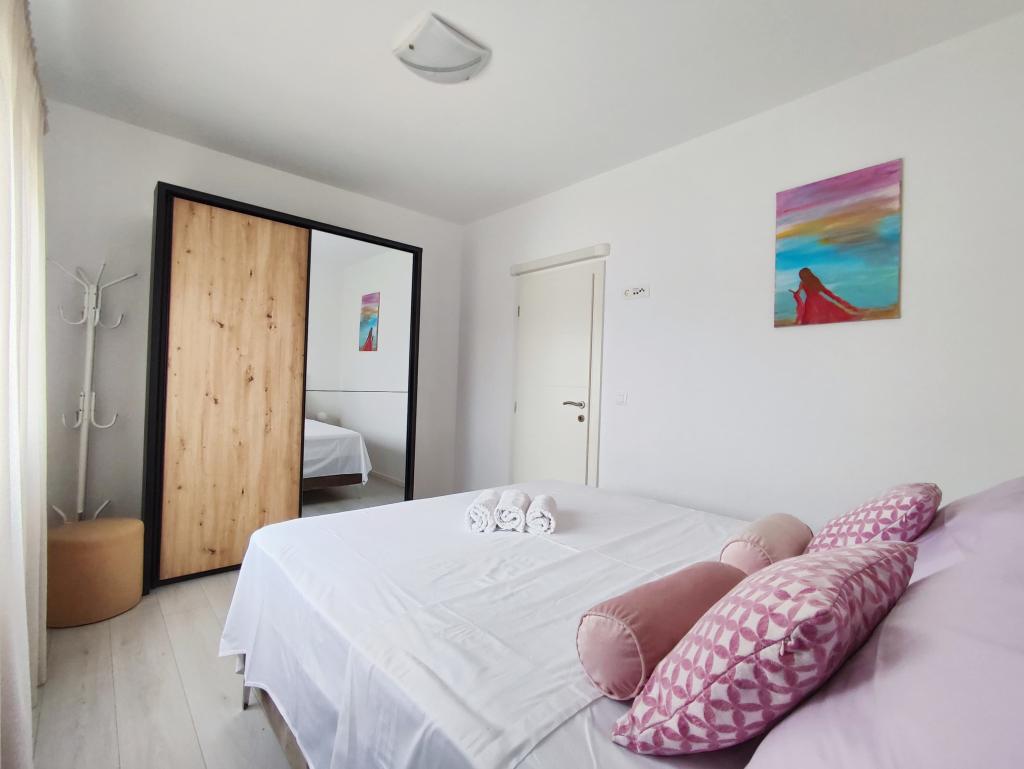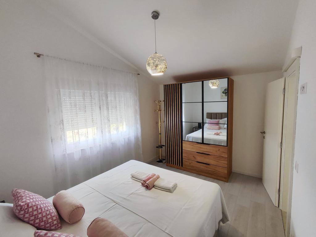 Moderno in funkcionalno urejeni apartmaji z vsemi potrebnimi pripomočki za popolne družinske počitnice, klimatske naprave, pralni stroji, WIFI... Hiša z 2 ločenima apartmajema se nahaja v zeleni oazi z vrtom, kjer se otroci lahko igrajo v naravni senci; niso na plaži, na voljo pa vam je tudi prostor za žar. Vsak apartma je sestavljen iz dveh spalnic, dnevne sobe in prostorne kopalnice. Vsak apartma ima svoje parkirišče. Nahajamo se v mirnem delu otoka Vir, 3 minute hoje do plaže V bližini je supermarket, pekarna, trgovina z živili, bankomat. Središče Vira je oddaljeno 3 km, zato boste do tja potrebovali avto. V večernih urah, ko se sonce in vročina umirita, cetar Vira ponuja veliko dobre zabave za najmlajše, pa tudi za starejše, željne dobre zabave in plesa. Če vseeno želite obiskati malo več kot Vir, je čudovito mesto NIN oddaljeno približno 10 km, eno najlepših mest ZADAR pa je oddaljeno približno 20 km. Zato rezervirajte svojo namestitev in uživajte v barvitem in lepem počitnice.