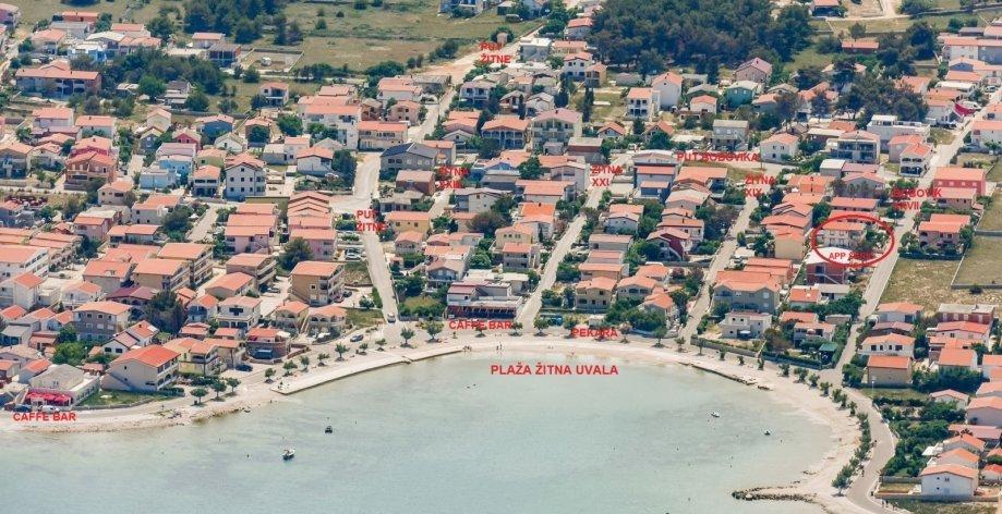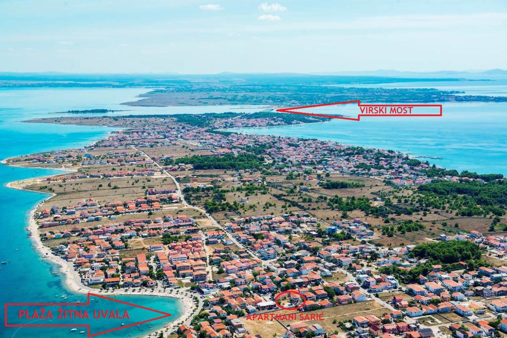 V hiši so trije apartmaji. Dva imata dve spalnici, dnevno sobo, kuhinjo, kopalnico in veliko pokrito teraso. Vsaka ima eno sobo z zakonsko posteljo, druga soba pa ima dve enojni postelji. Tretji apartma ima eno spalnico z zakonsko posteljo, kuhinjo, kopalnico in tudi veliko pokrito teraso. Vse sobe imajo posteljnino. V kuhinjah je posoda za kuhanje in serviranje hrane ter mikrovalovna pečica in grelnik za vodo. Vsak apartma ima klimatsko napravo, ki je vključena v ceno. Vsi apartmaji imajo ločen vhod. V sklopu hiše je parkirišče, ki je na voljo vsem gostom. Lahko se uporablja tudi žar. Plaža Žitna uvala je oddaljena 80m. Plaža je prodnata, morje pa peščeno. Ob plaži je urejena promenada in kolesarska steza ter več kavarn, restavracij, slaščičarn in pekarn. V krogu 100 m je več trgovin. Središče Vira je oddaljeno 1800m.