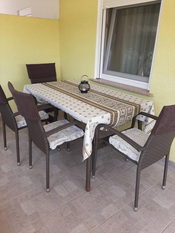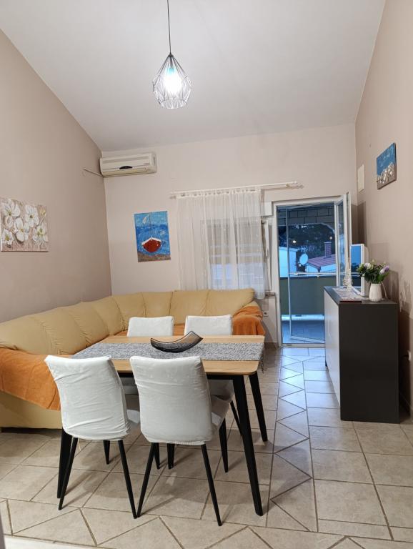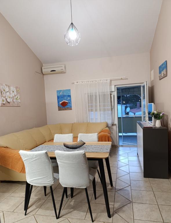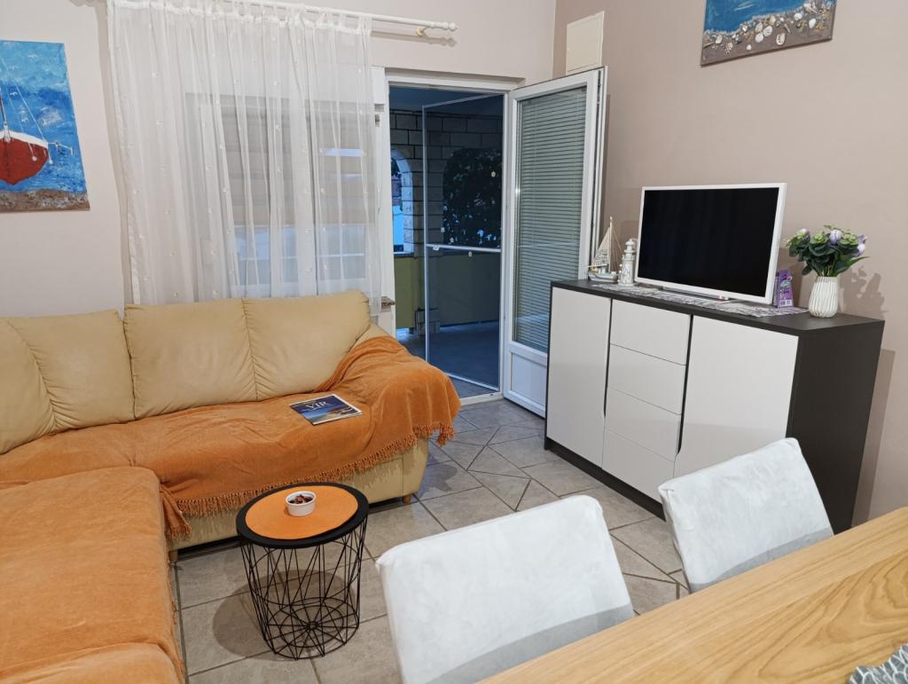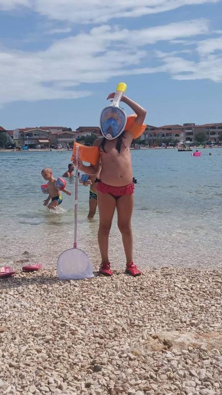 Oddam na novo prenovljeno dvosobno klimatizirano stanovanje, popolnoma opremljeno za družino do 4 oseb. Z dvema spalnicama, dnevno sobo s posteljo, TV/satelit, smart/Wifi. Kuhinja je popolnoma opremljena s posodo. Kopalnica s tušem. Zunanji notranji tuš. Stanovanje ima veliko teraso/balkon, kjer lahko uživate v prijetni senci do poznega popoldneva, brezplačno parkirno mesto za vaš avto. (na zahtevo, če je potrebno, storitev pranja perila). Žar - za uporabo gostov. Stanovanje je oddaljeno 150 m od plaže/morja, 4 minute lahkega sprehoda po ulici. Plaža je prodnata, v bližini je peščena za otroke, kjer so kavarne, restavracije, sladoled... Trgovina je oddaljena 100 m, restavracija je oddaljena 80 m, večji nakupovalni centri so oddaljeni 1000 m. Center Vira je oddaljen 1500 m. Stanovanje se nahaja v mirnem predelu, na ulici, ki ni prometna.