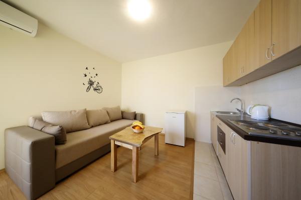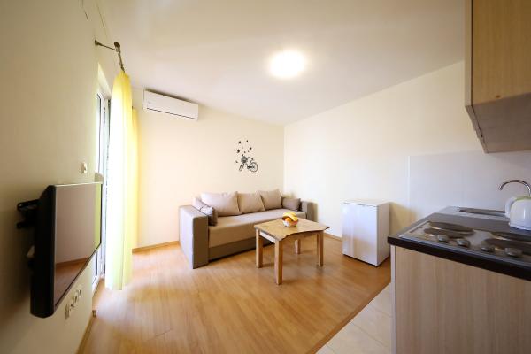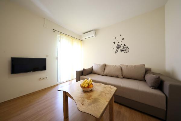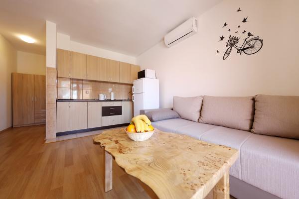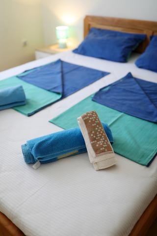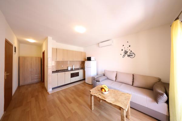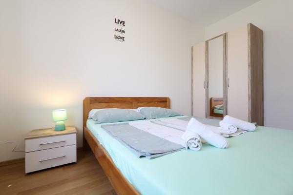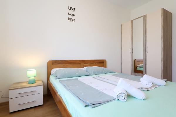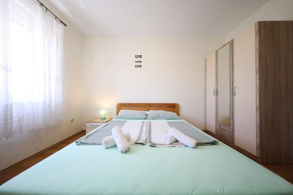 Avgusta smo bili pri Goranovih (dva odrasla + otroka (stara 9 in 2 leta)). Mega toplo (ampak naj bi bilo tako :)) Stanovanje je 100% združljivo z opisom. Čista, dobro vzdrževana, popolnoma opremljena (posoda, jedilni pribor, posteljnina, klima, hladilnik, mikrovalovna pečica itd.). Blizu "prodnate" plaže - dolga, urejena plaža z zelo nežnim spustom (idealna za otroke). V kratkem lokalu gostilna, pekarna, trgovina. Delček iz središča - ampak nismo imeli nič proti. Lastniki so super, zelo vljudni in ustrežljivi ljudje - naj bodo vsi !!!