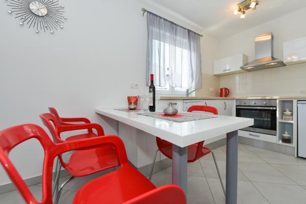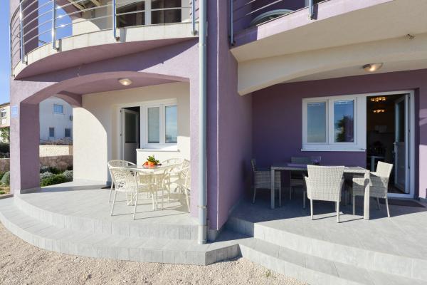 Moderno opremljeni apartmaji v mirnem delu otoka Vira, le 300 metrov od centra, 70 metrov od morja in prodnato-peščene plaže. . Apartmaji so opremljeni z vsemi aparati, kot so pralni stroj, mikrovalovna pečica itd., na terasi je jedilna miza.