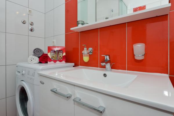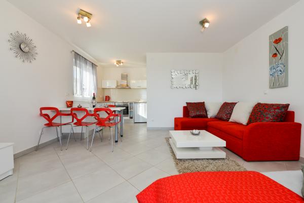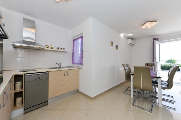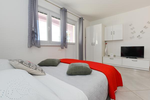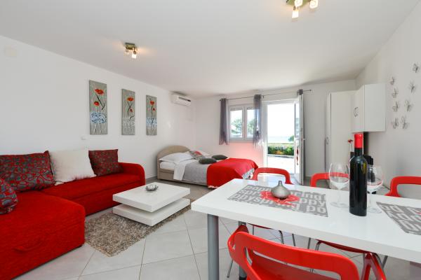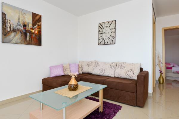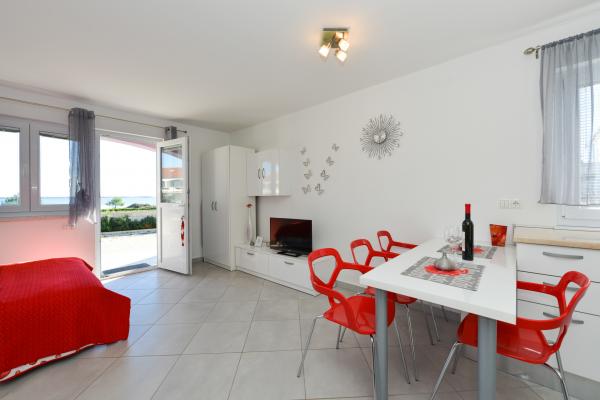 Čudovito čisto novo stanovanje s pogledom na morje. Zelo prijeten lastnik. Ob prihodu smo si privoščili ohlajeno pivo in sok. Mirna lokacija, v bližini plaže - približno 50m. Zelo malo ljudi na plaži. Prodnata plaža s peskom v morju. Voda zelo čista. Na plaži ni bilo košev, kar se je odražalo v ohlapni smeti na vhodu na plažo. Nedaleč od te plaže je jedro plaže (bilo je zelo gnečno, hrupno), v bližini pa bari, tržnica in znamenitosti (vodna kolesa, poskočni gradovi, polpodmornica, skuterji itd.) Trgovina in pekarna približno 600 m od namestitvene enote. Če kupite steklene steklenice, morate ohraniti blok, saj jih drugače ne bodo odnesli nazaj.