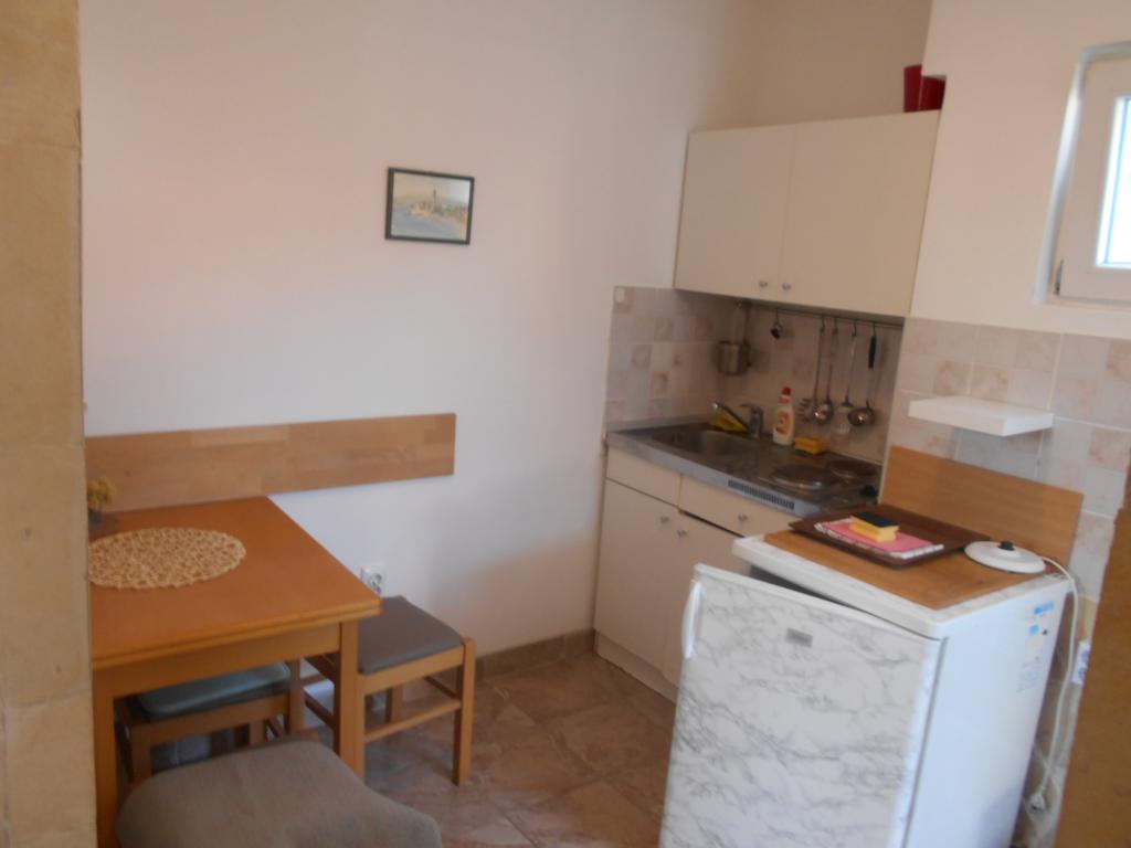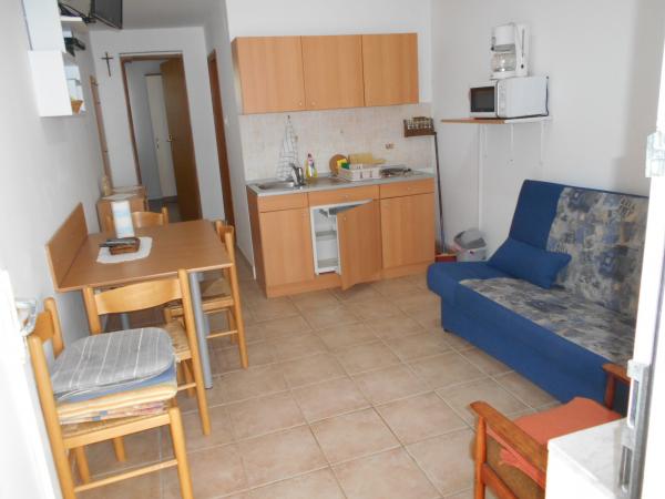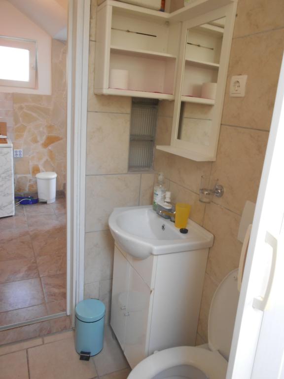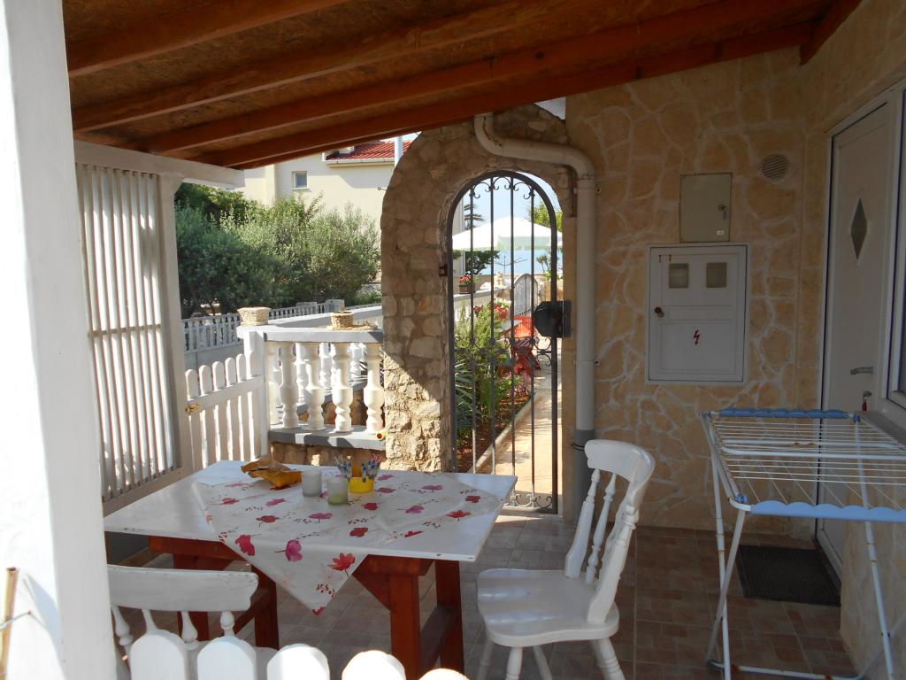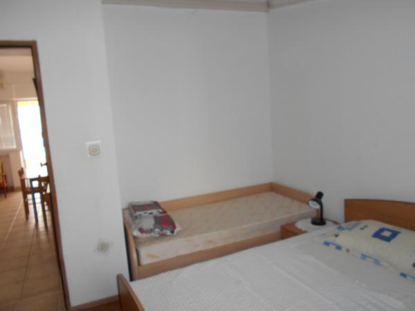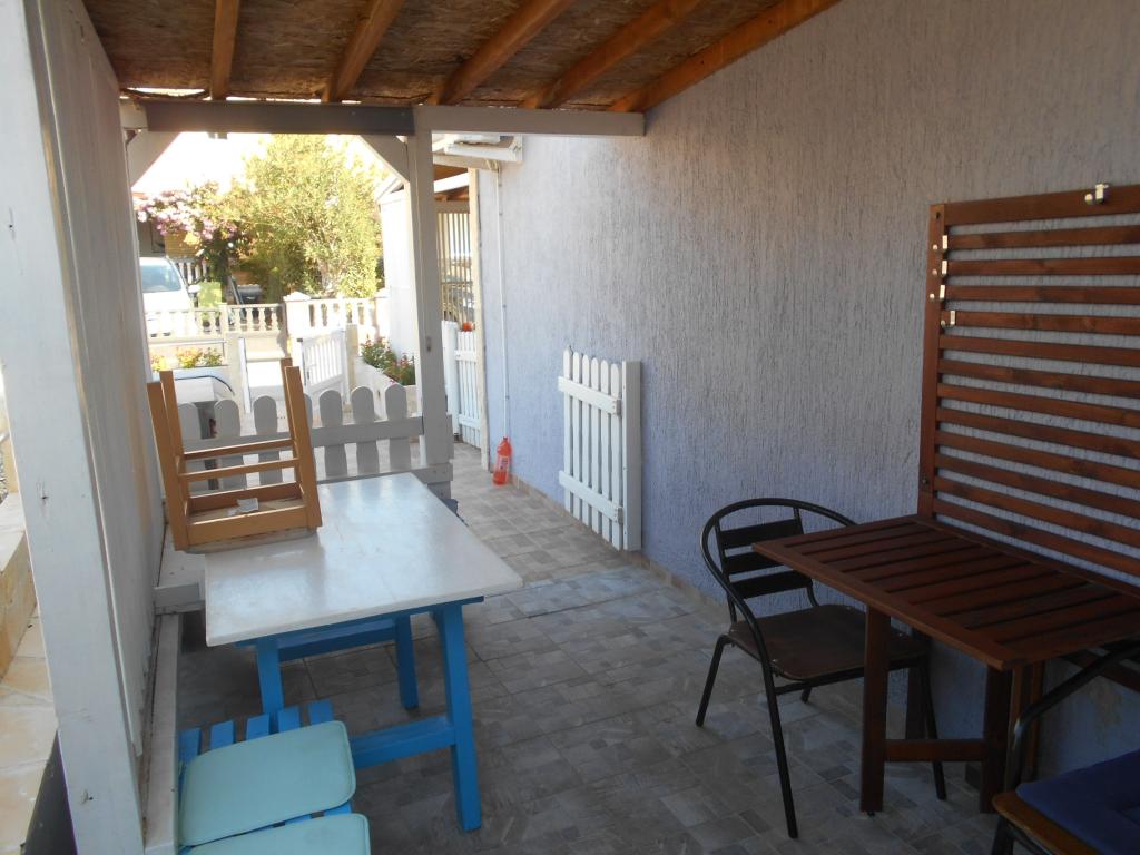 Apartma je opremljen z: dnevno sobo, spalnico, kopalnico-tuš, kuhinjo, klimo, TV, parkirišče, vrtni tuš, žar v kamniti hiši, pokrita veranda cca 12 m2. (((+ 50 metrov do plaže-morje, miren del naselja-primerno za otroke + )))